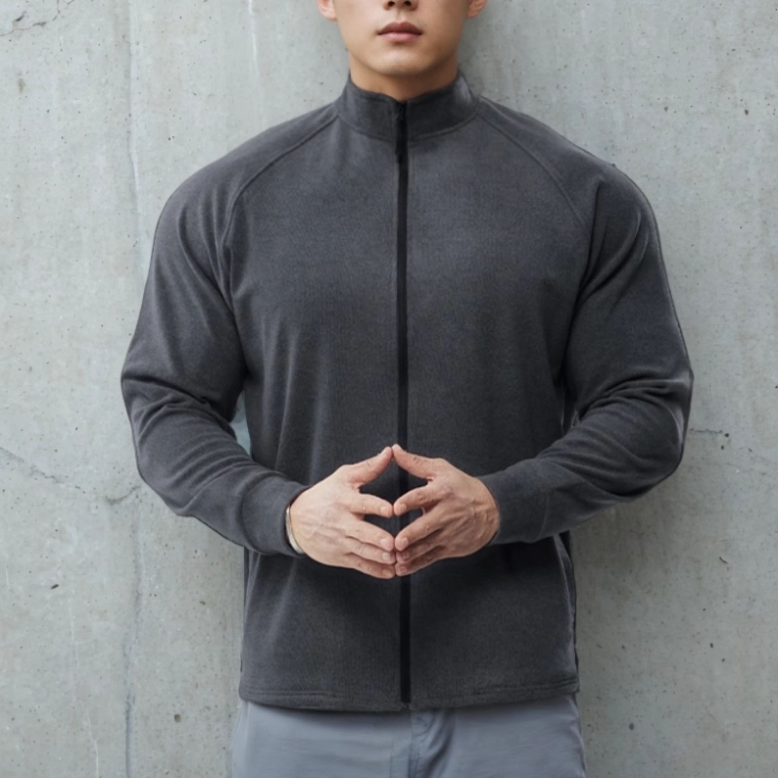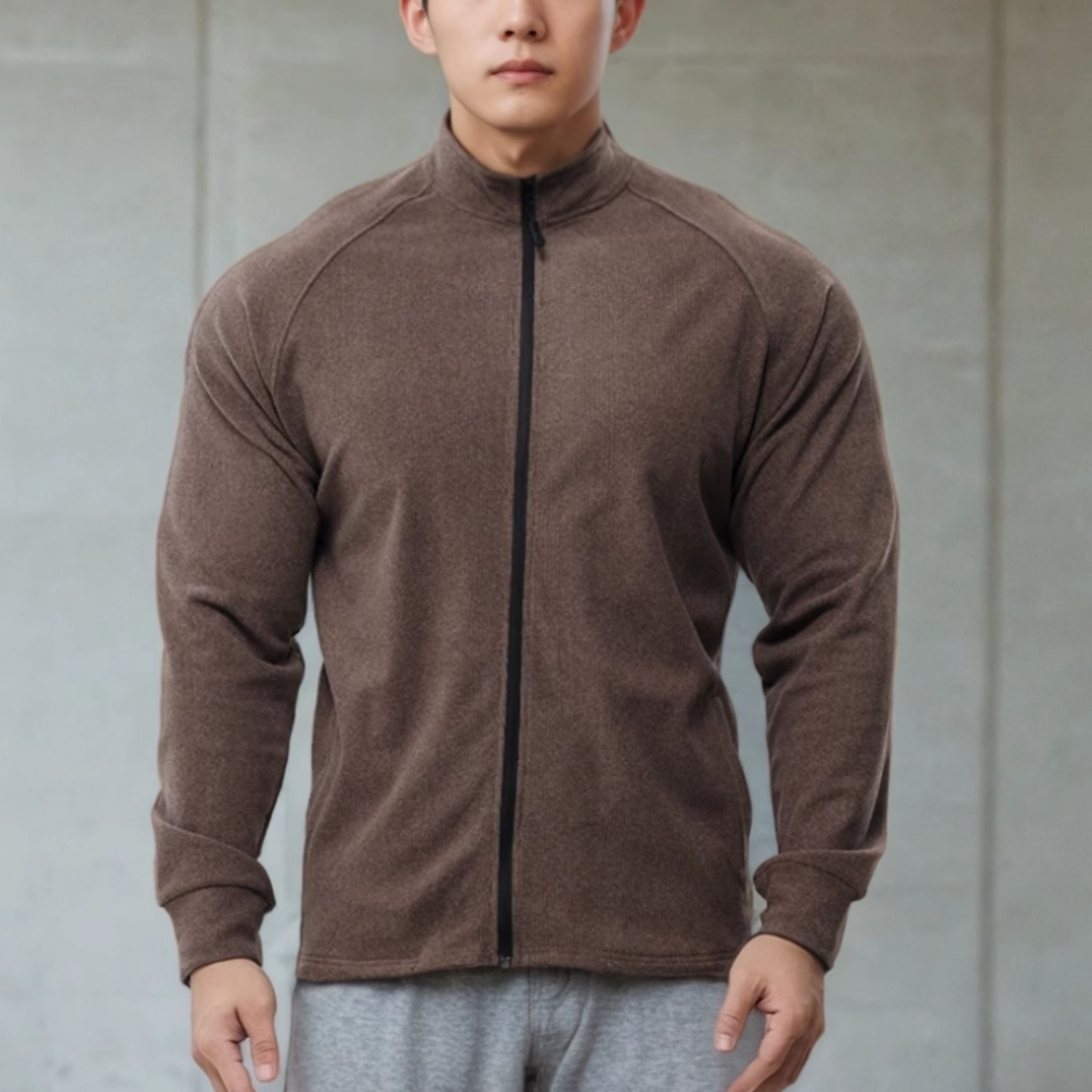 Gym Arm Autumn and Winter New Heavy-Duty Double-Sided Thermal Sports Slim-Fit Fitness Zipper/Half-High Collar Long Sleeve