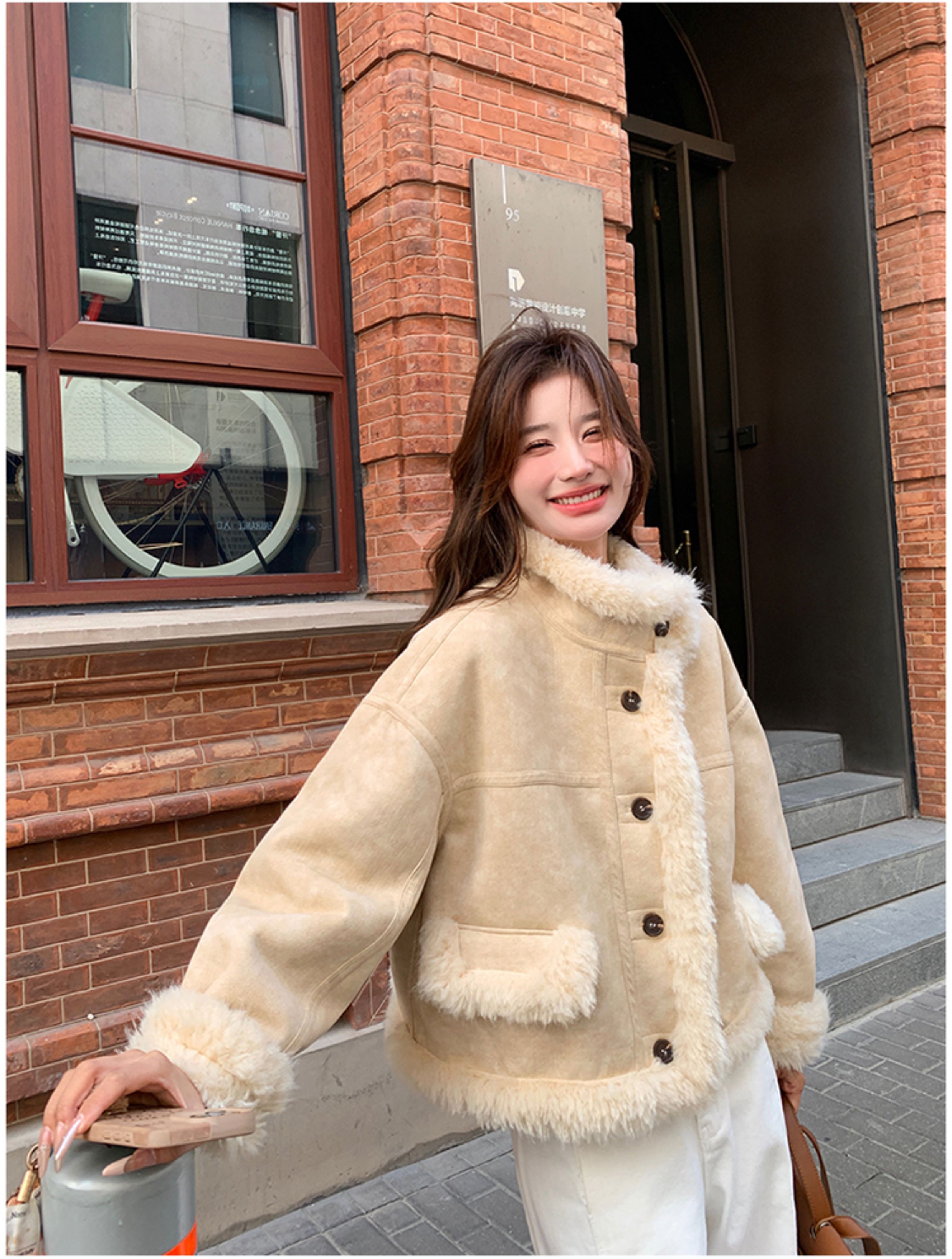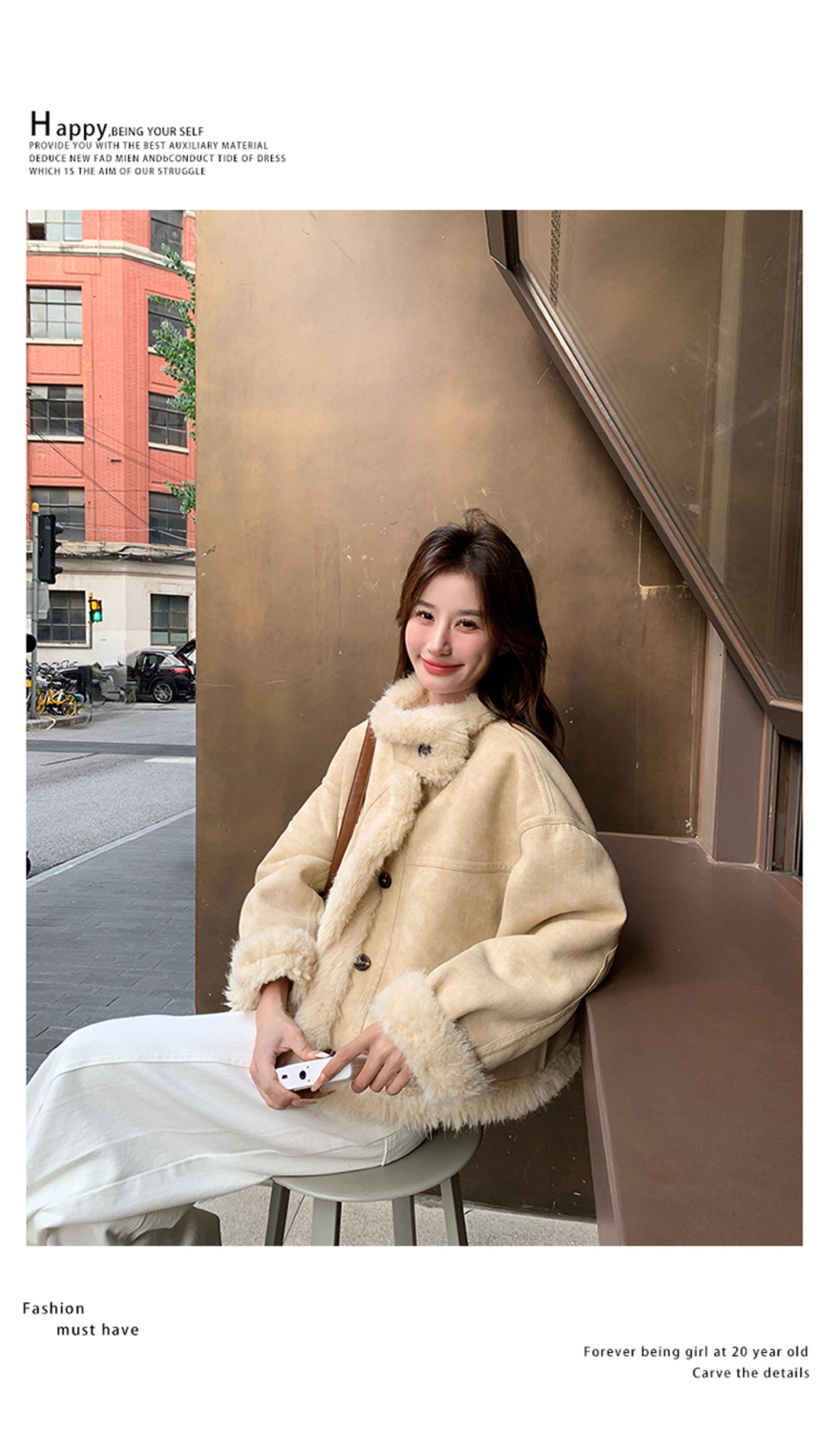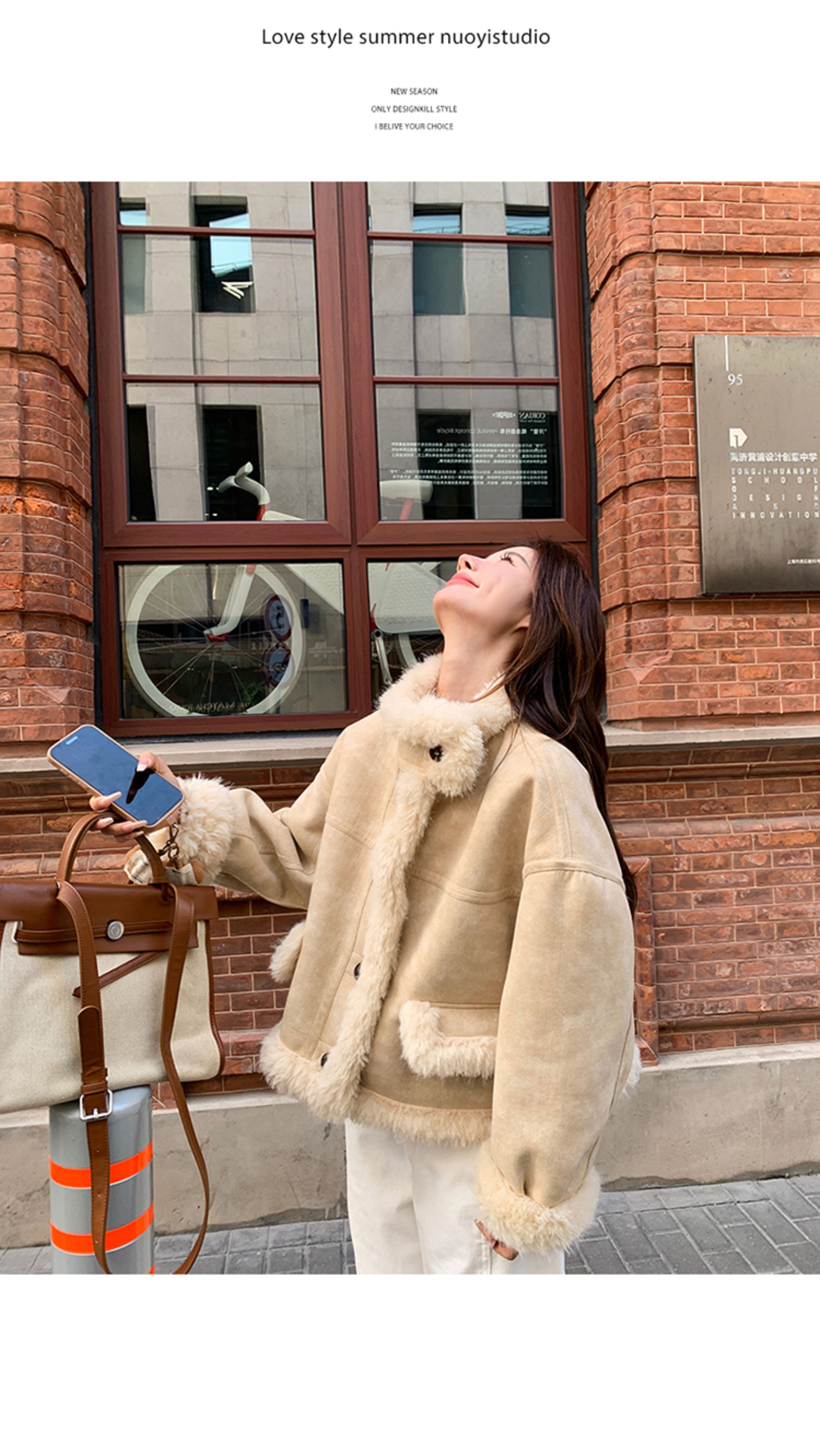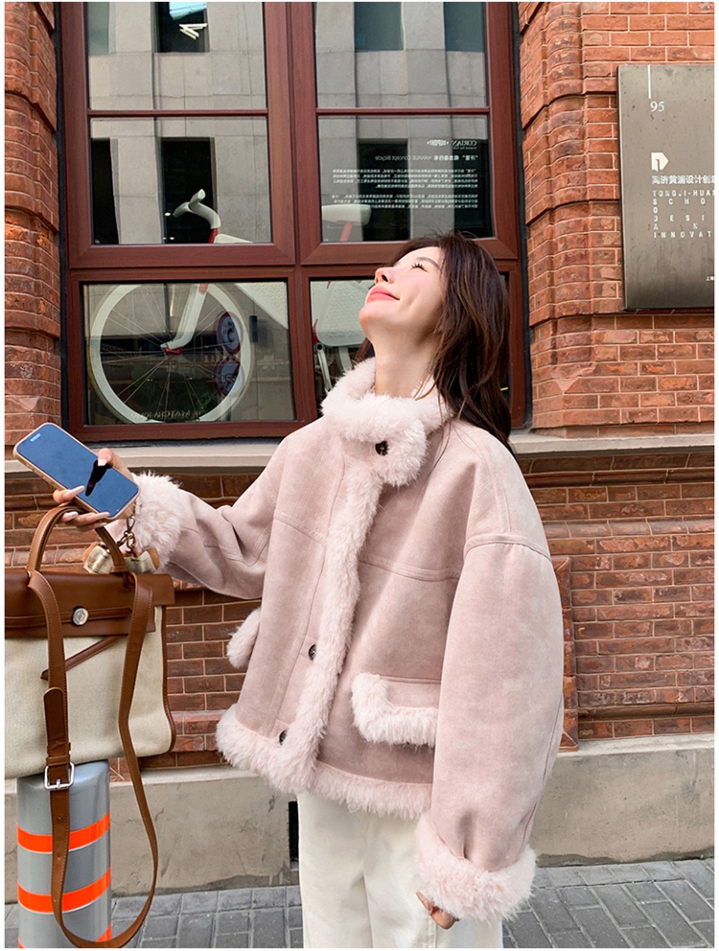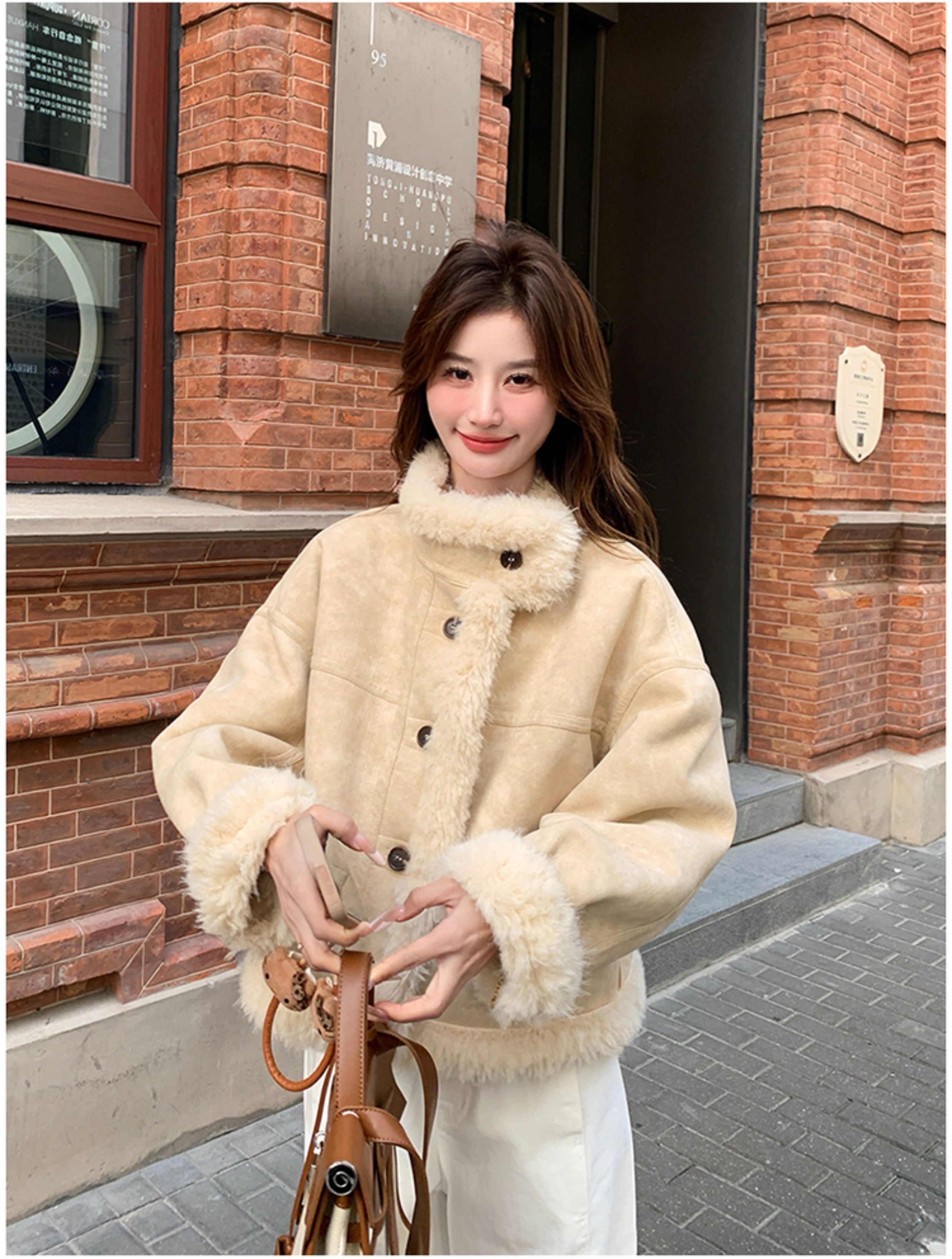 ins Internet Celebrity Hot-Selling Stand-Up Collar Suede Fur Integrated Short Coat for Petite Women, Thickened Lamb Wool, New Winter Style