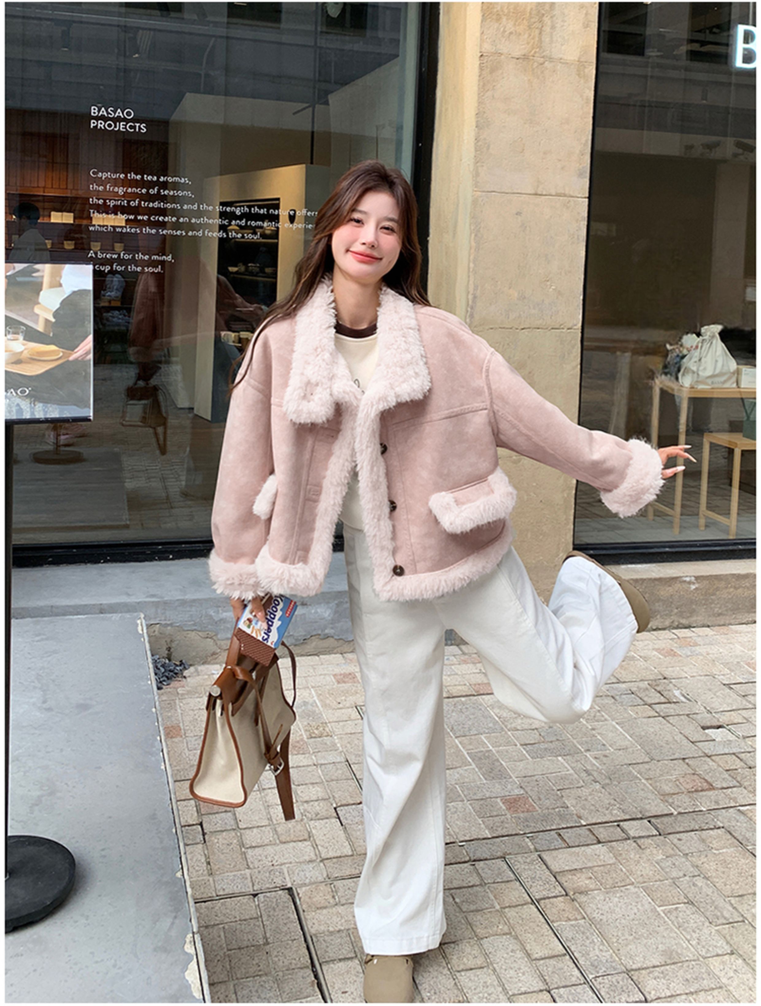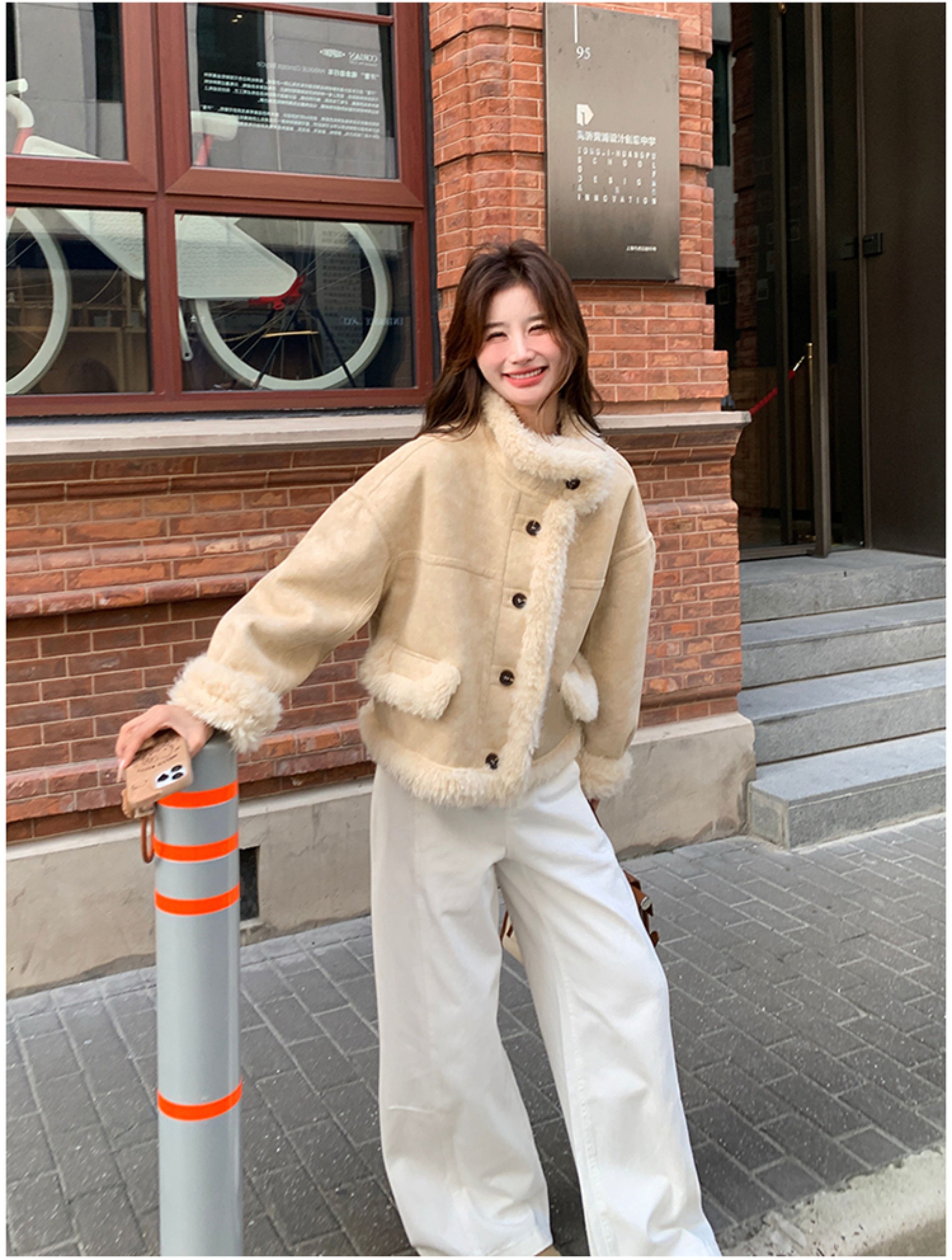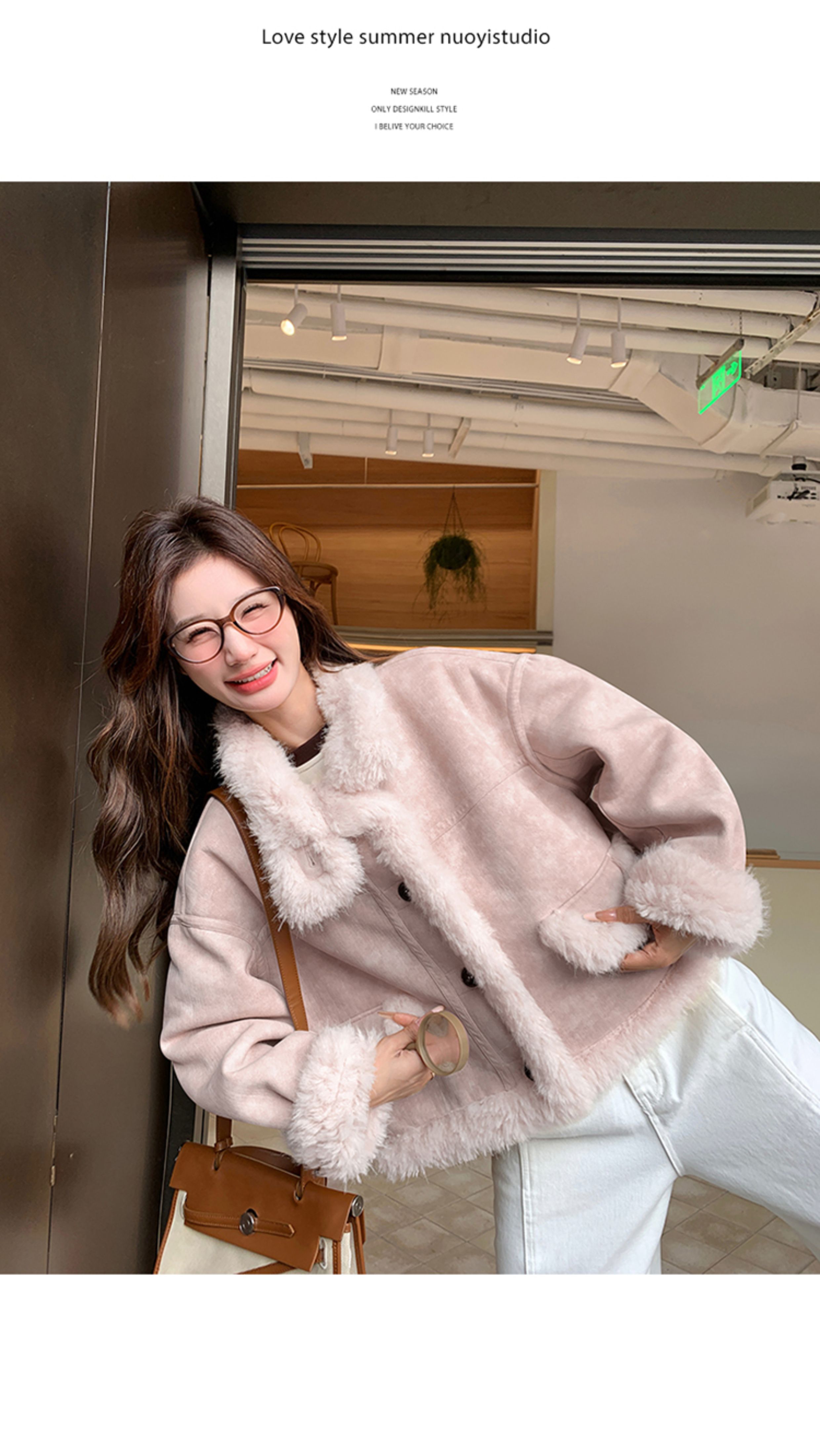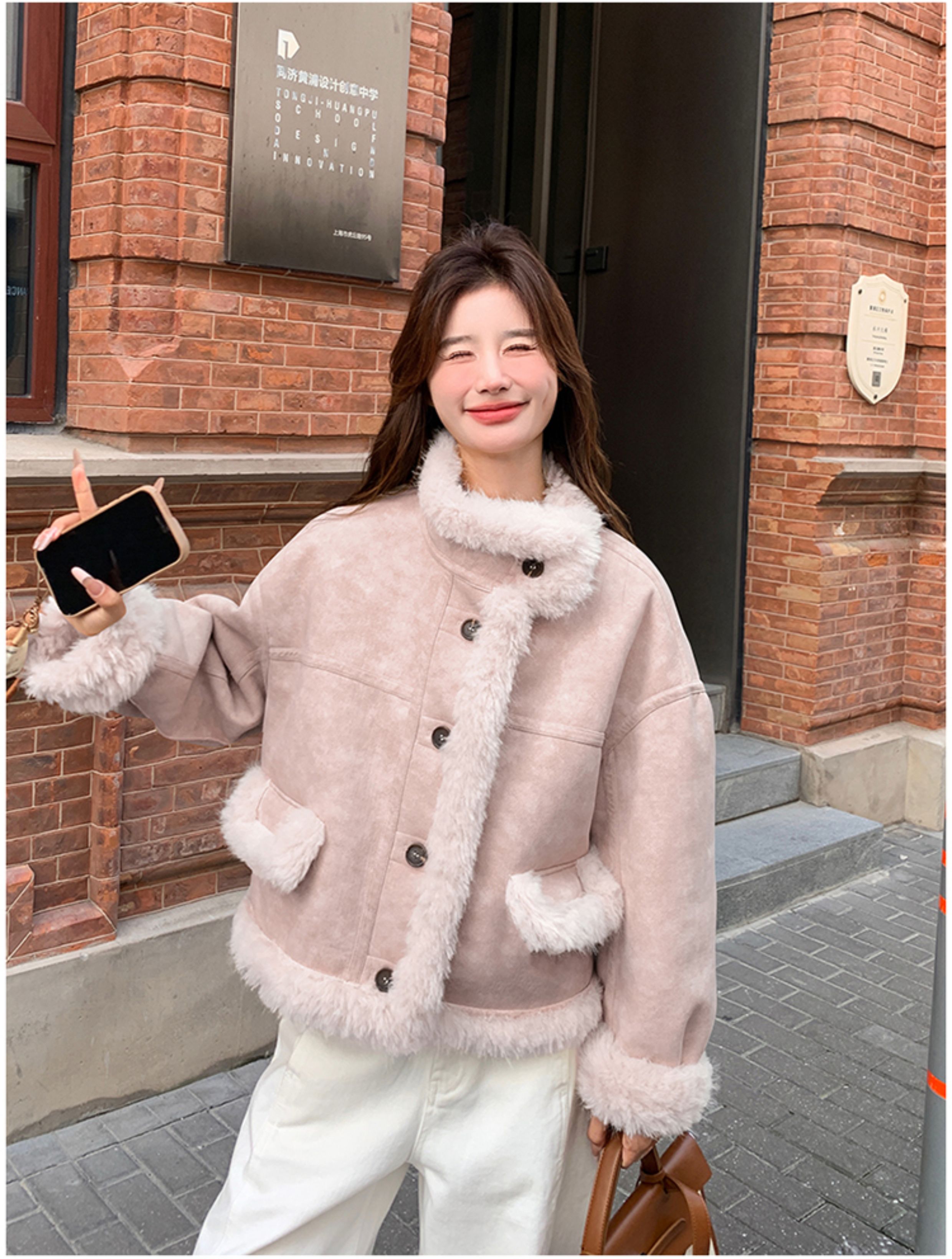 ins Internet Celebrity Hot-Selling Stand-Up Collar Suede Fur Integrated Short Coat for Petite Women, Thickened Lamb Wool, New Winter Style