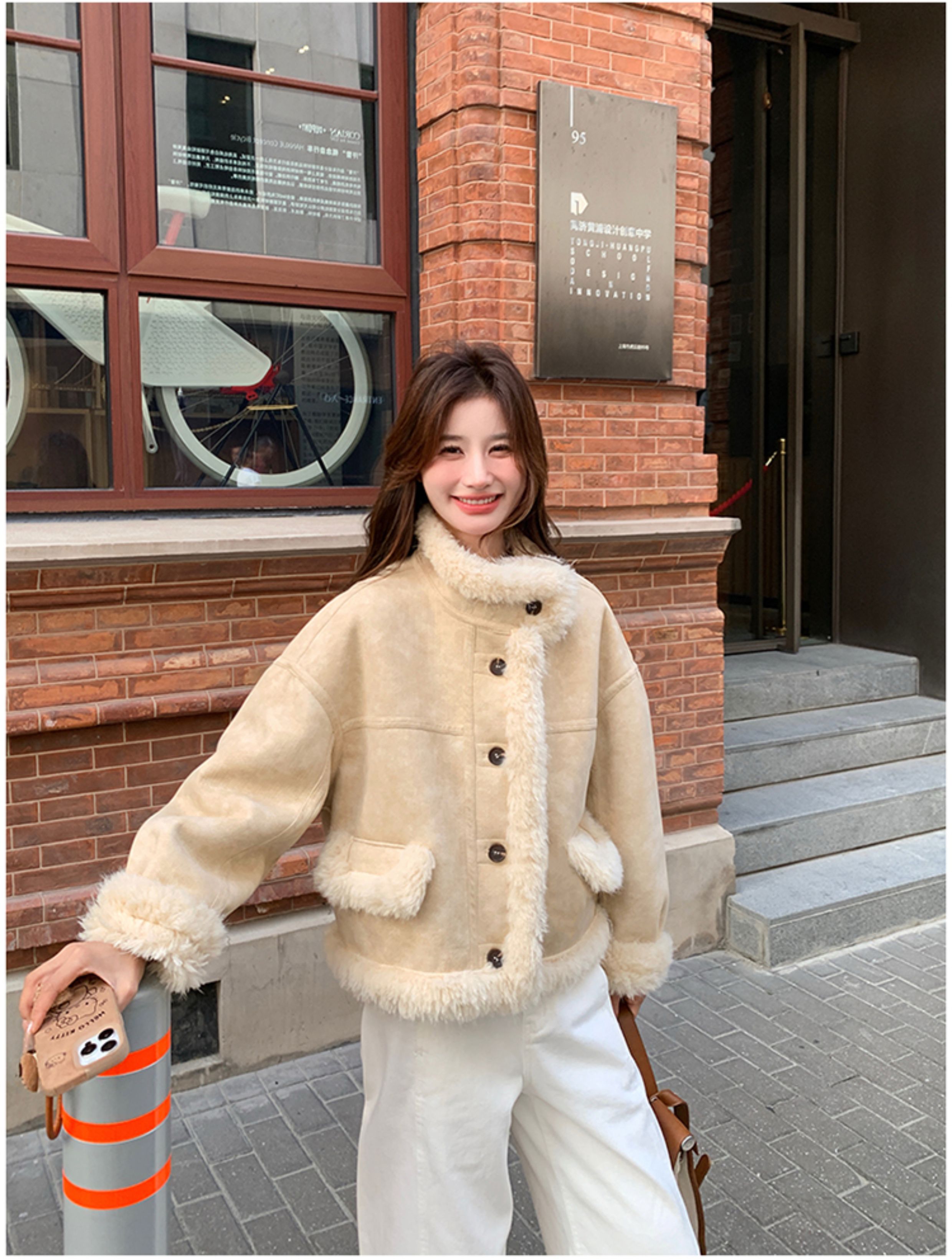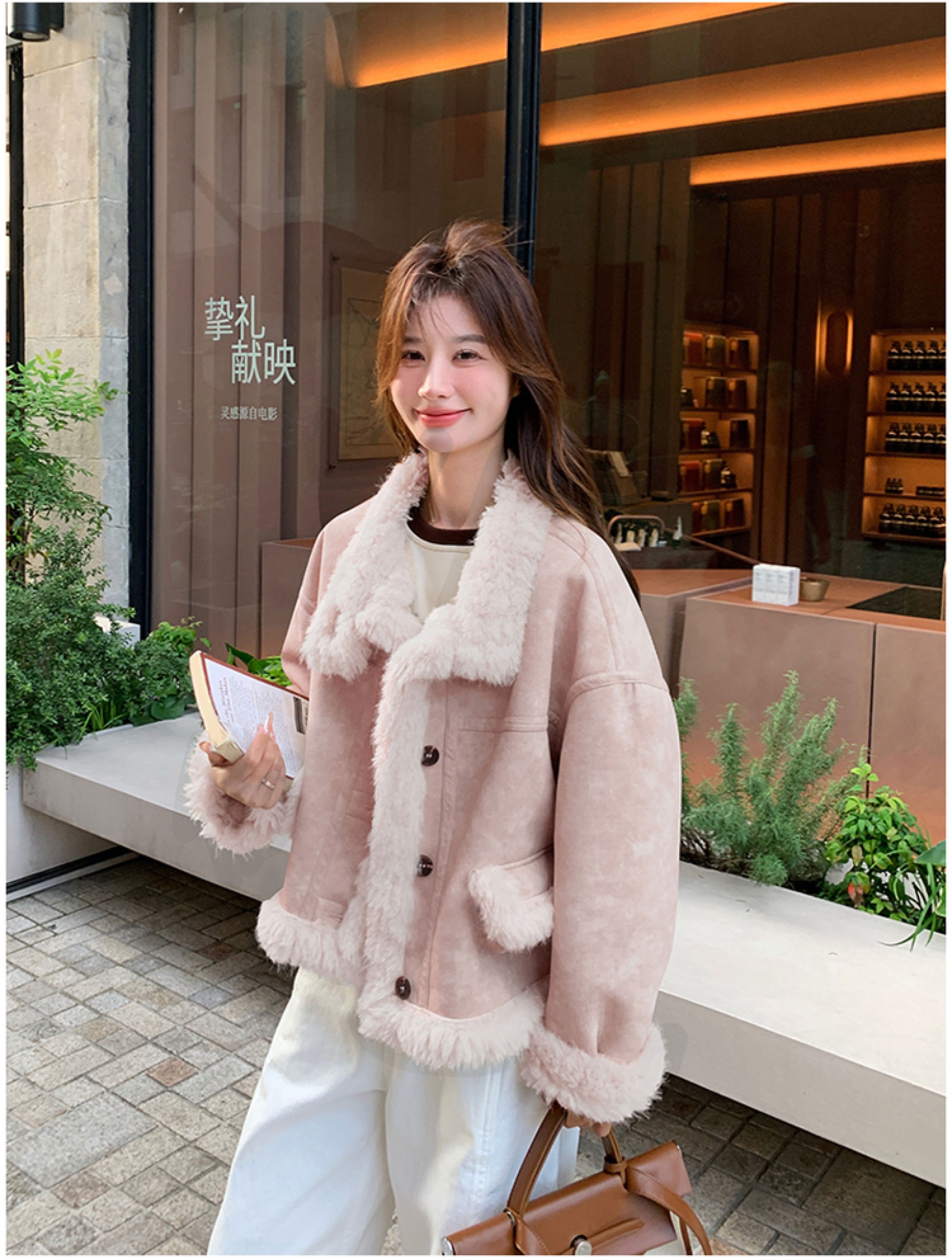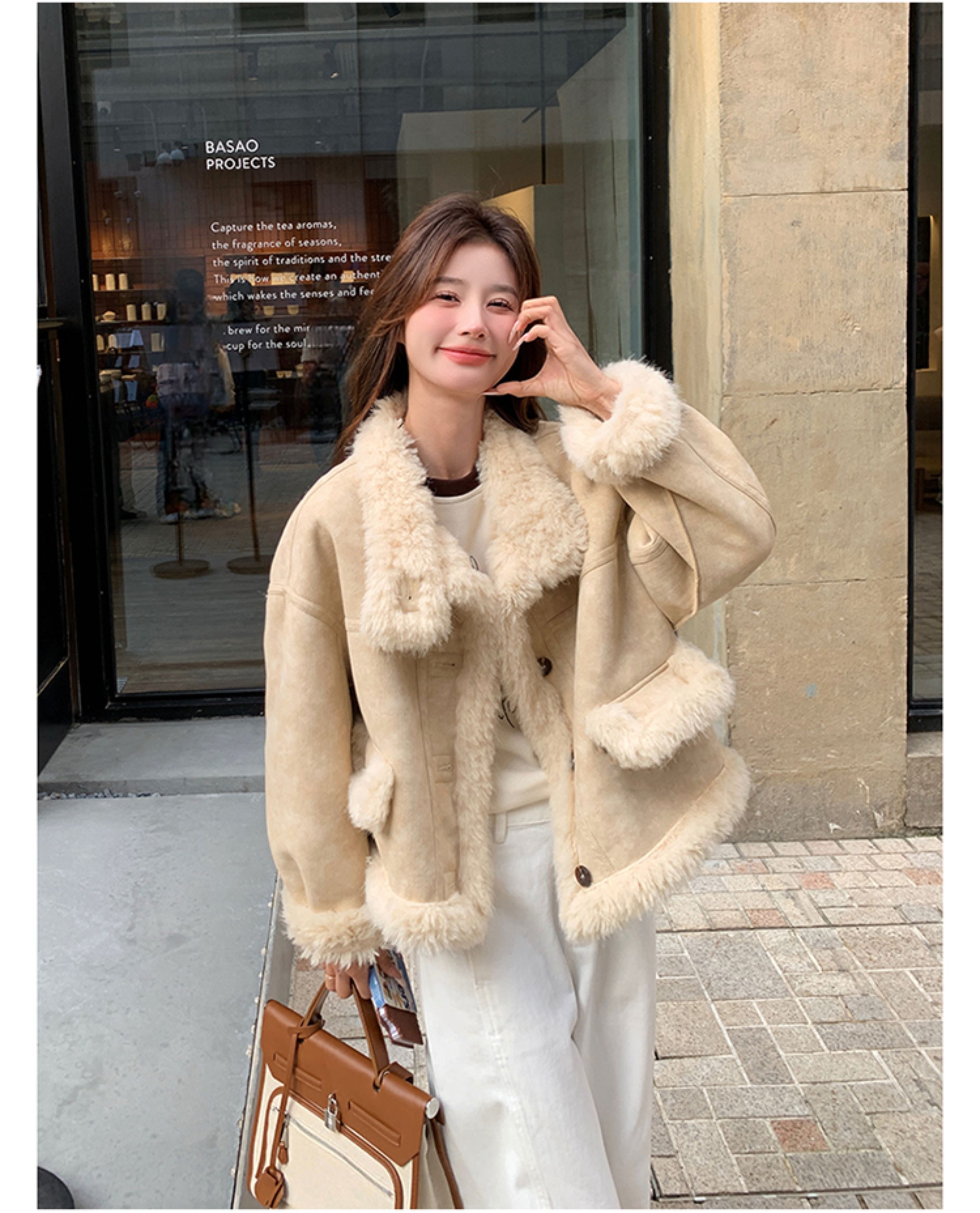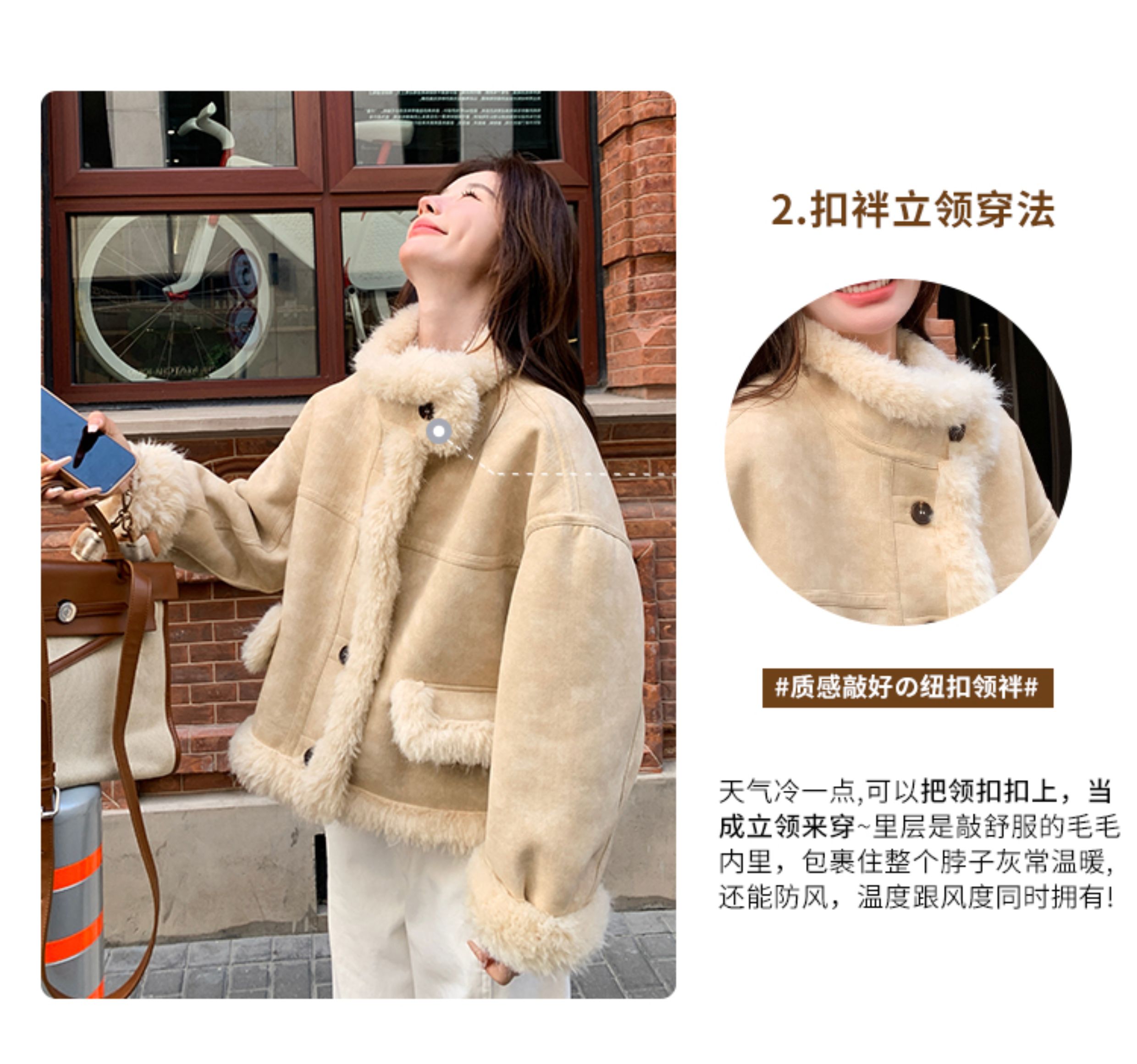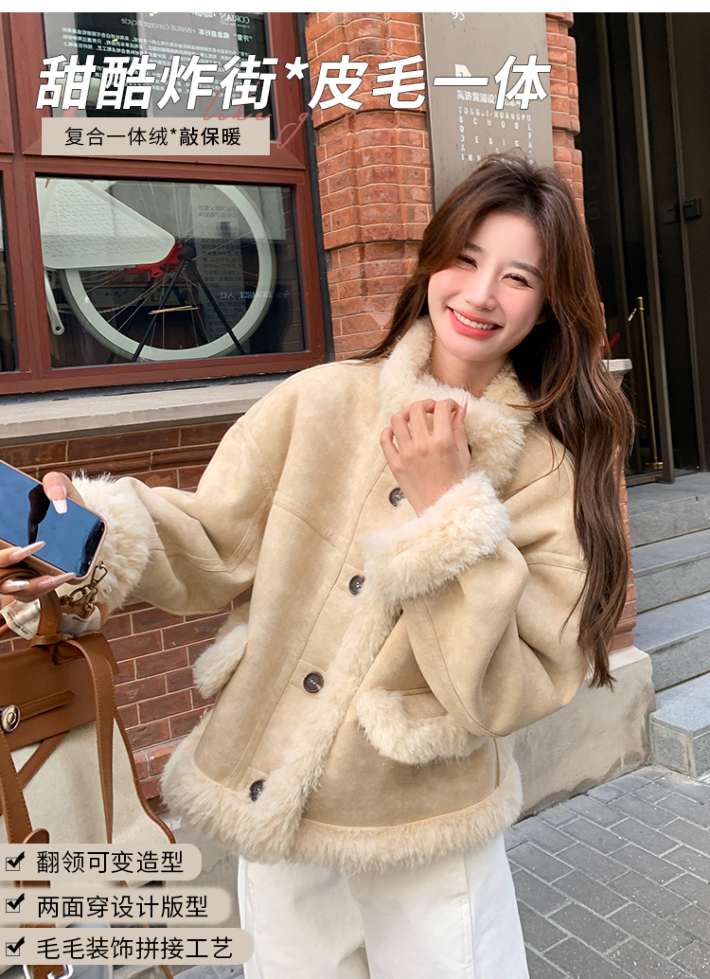 ins Internet Celebrity Hot-Selling Stand-Up Collar Suede Fur Integrated Short Coat for Petite Women, Thickened Lamb Wool, New Winter Style