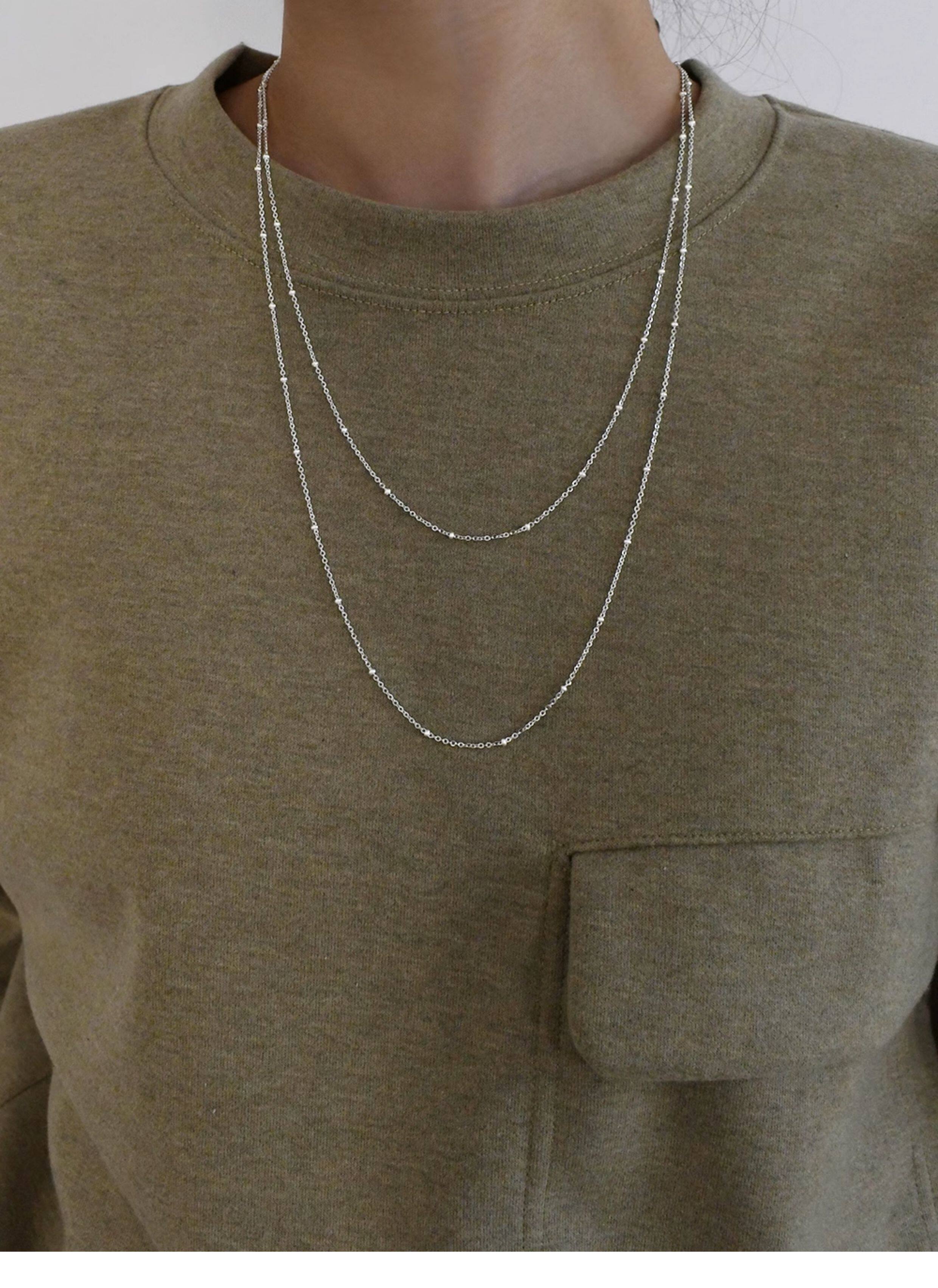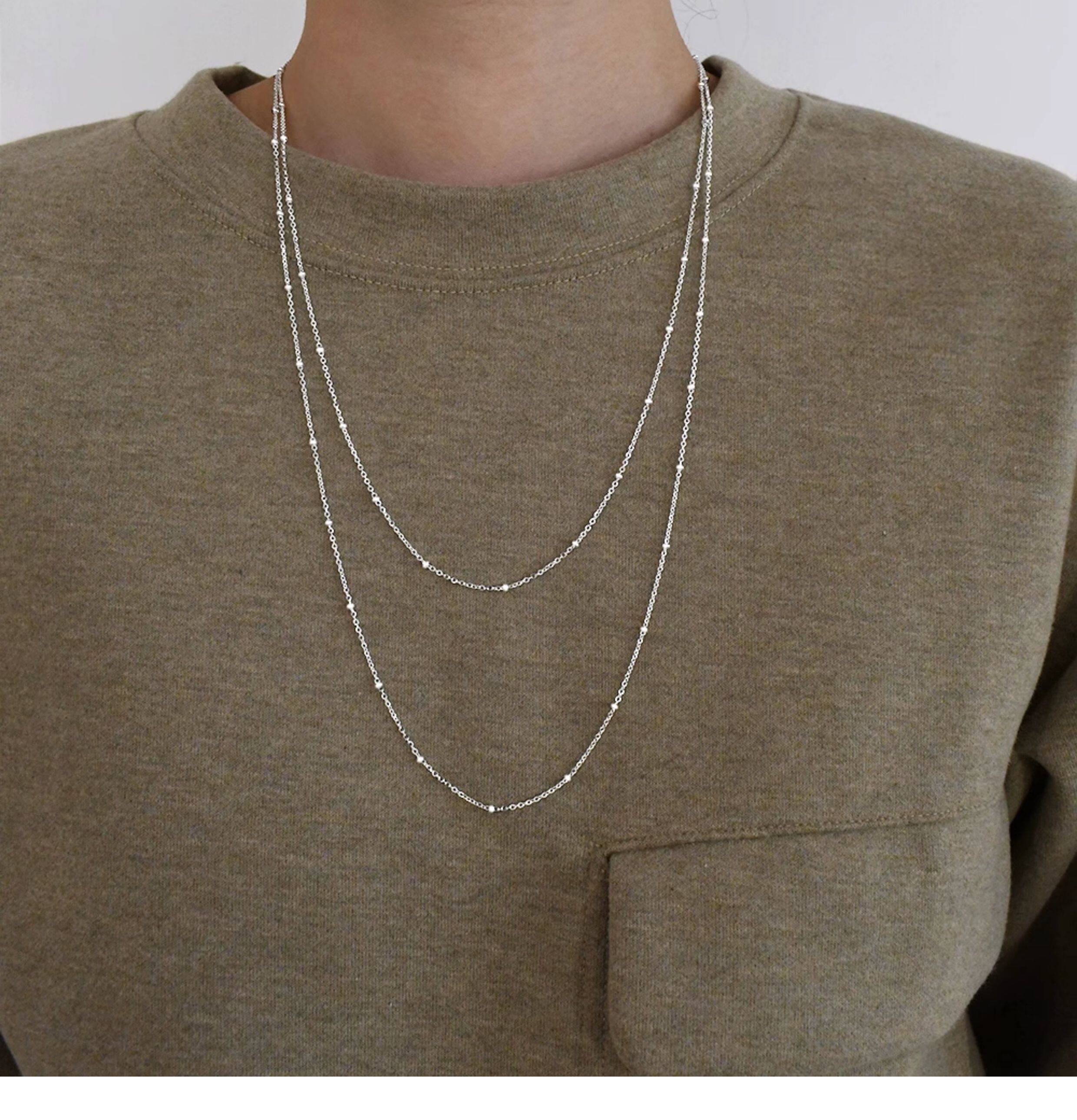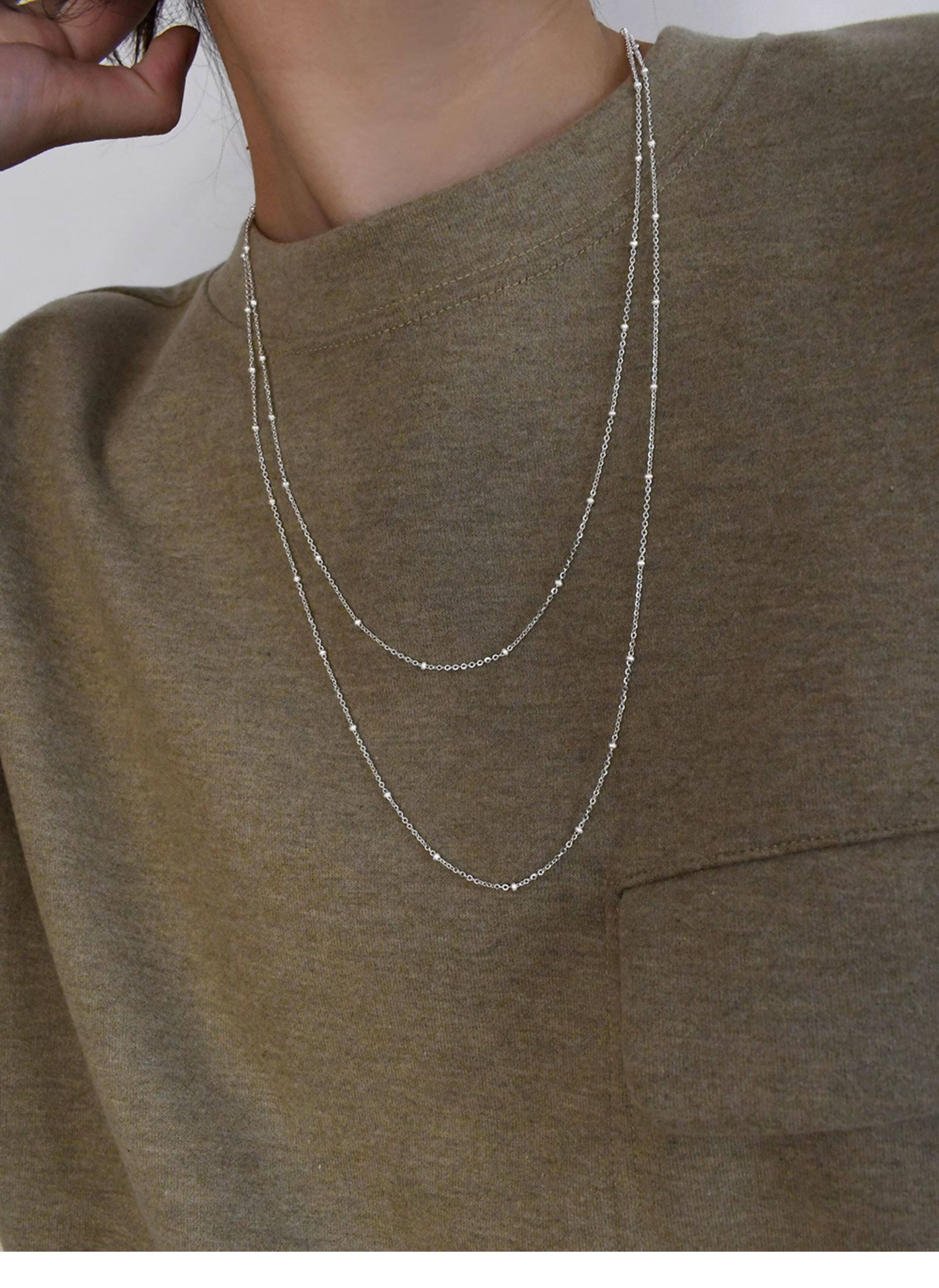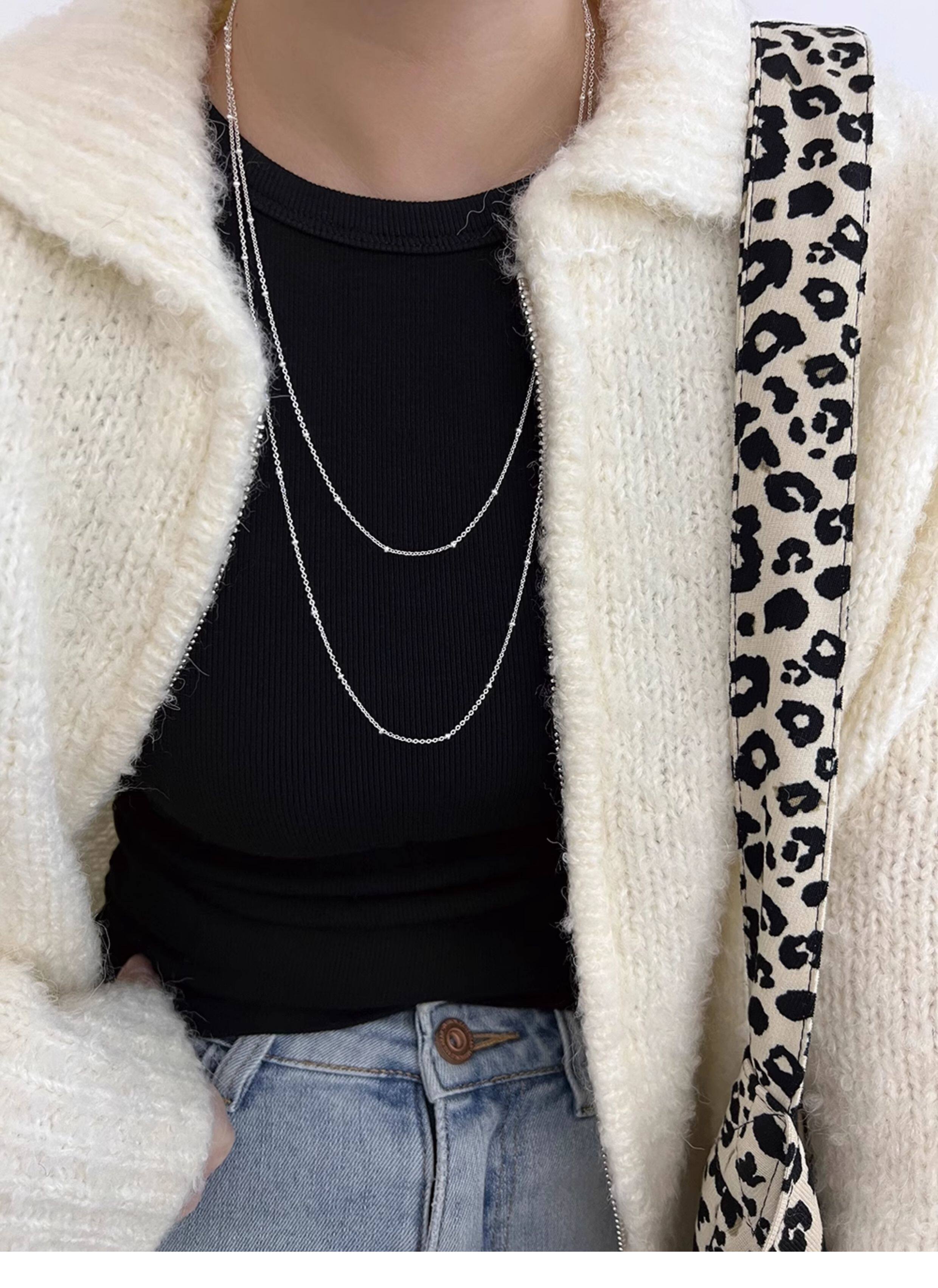 Imported 925 Sterling Silver Small Round Beads Without Pendant Plain Chain Necklace Sweater Chain Long Style for Women Autumn and Winter Versatile