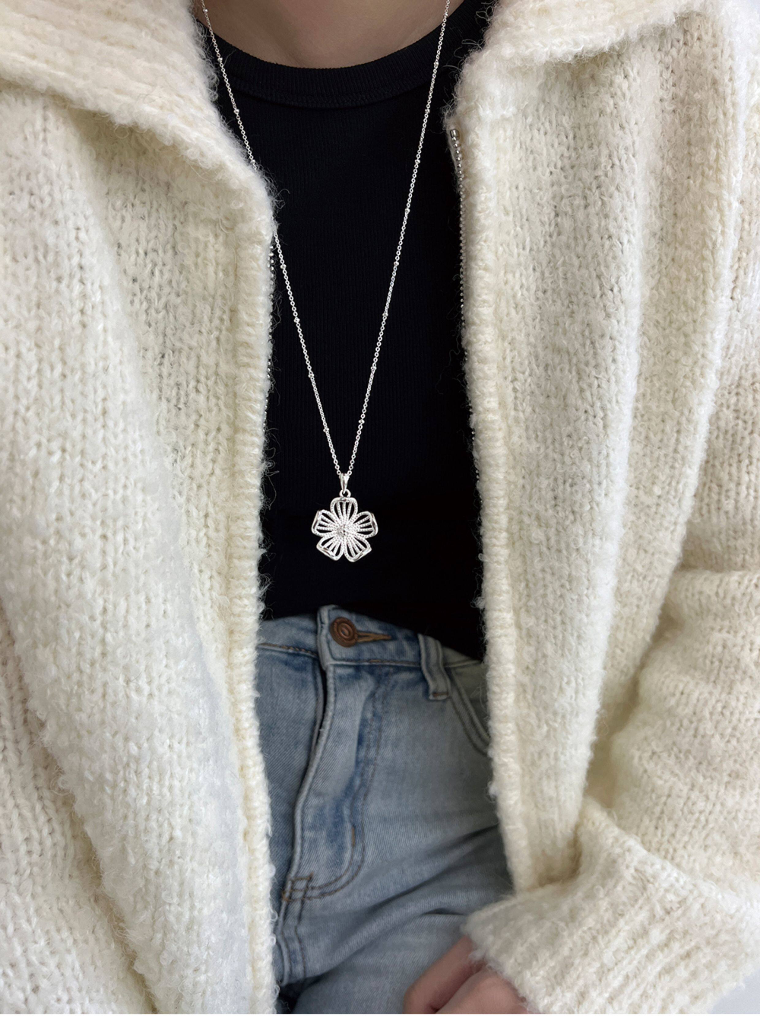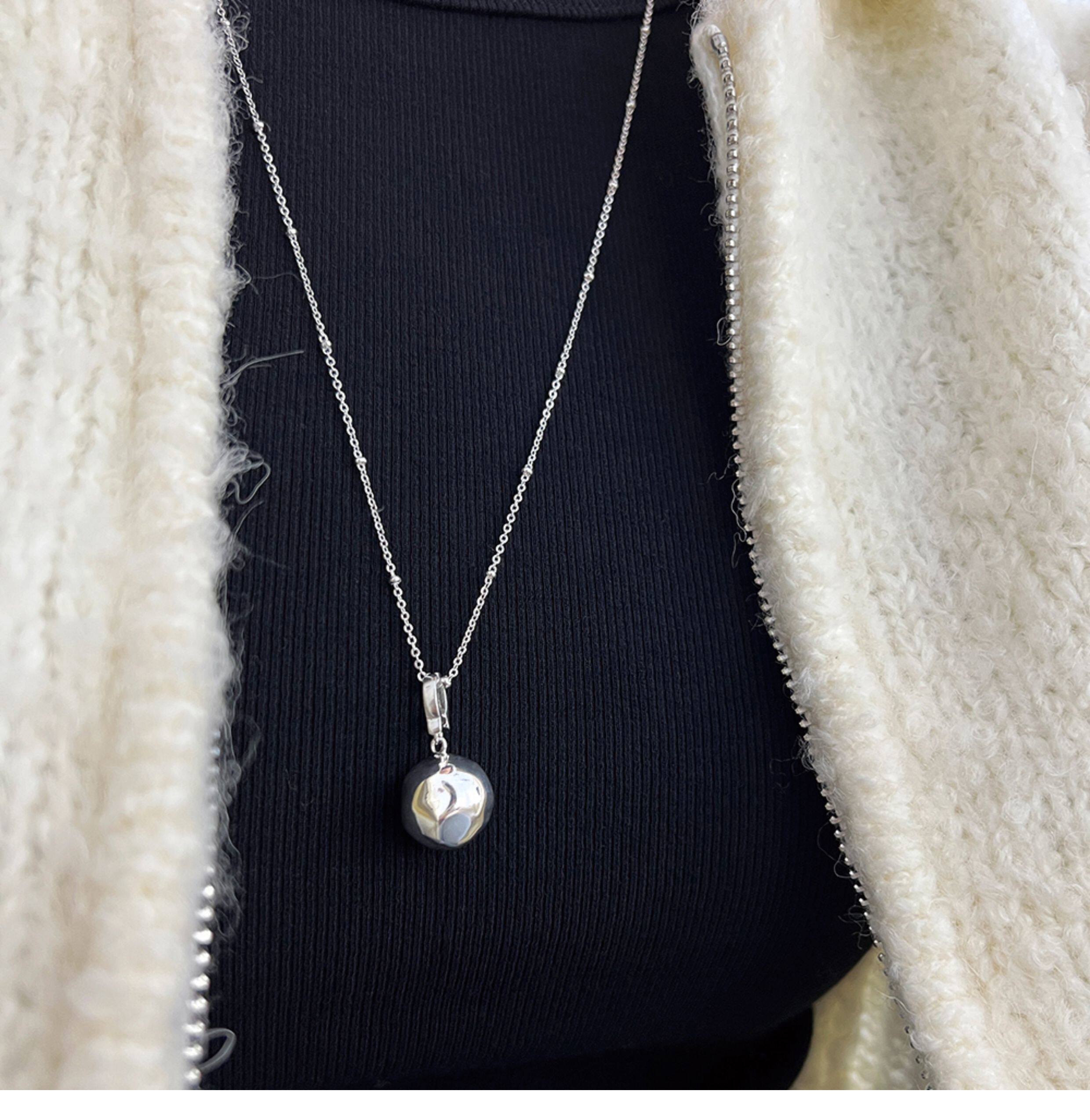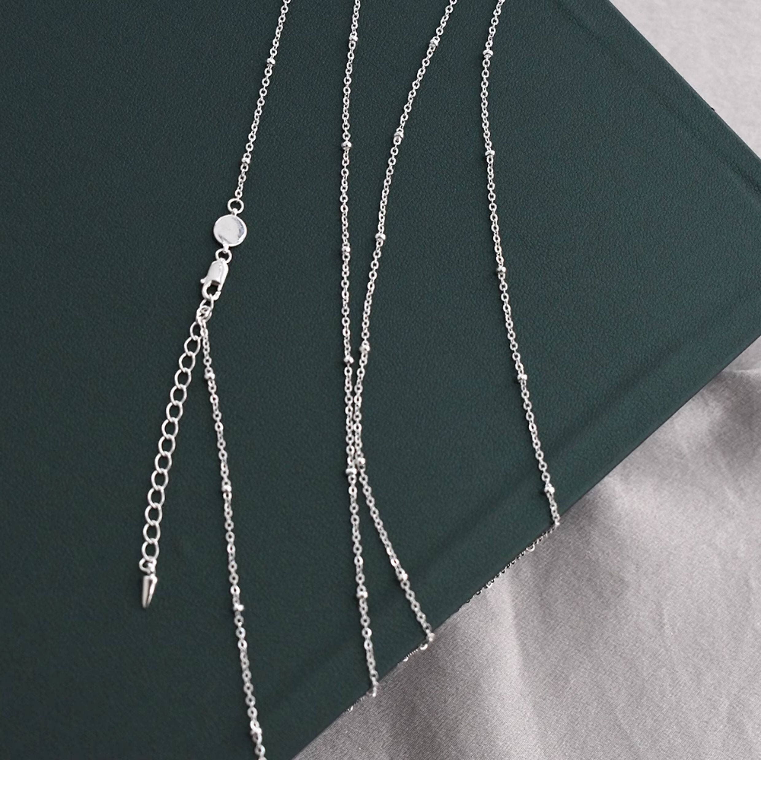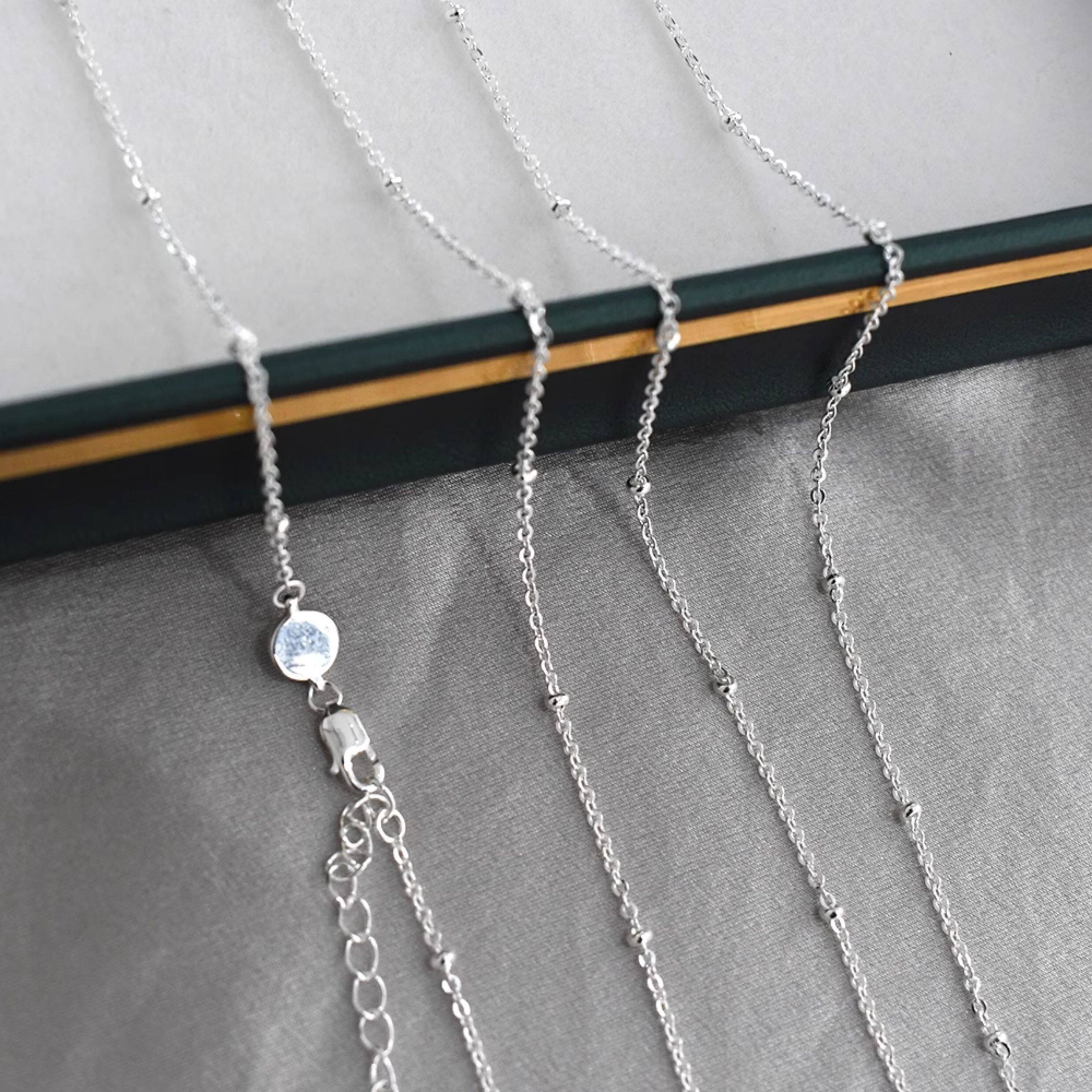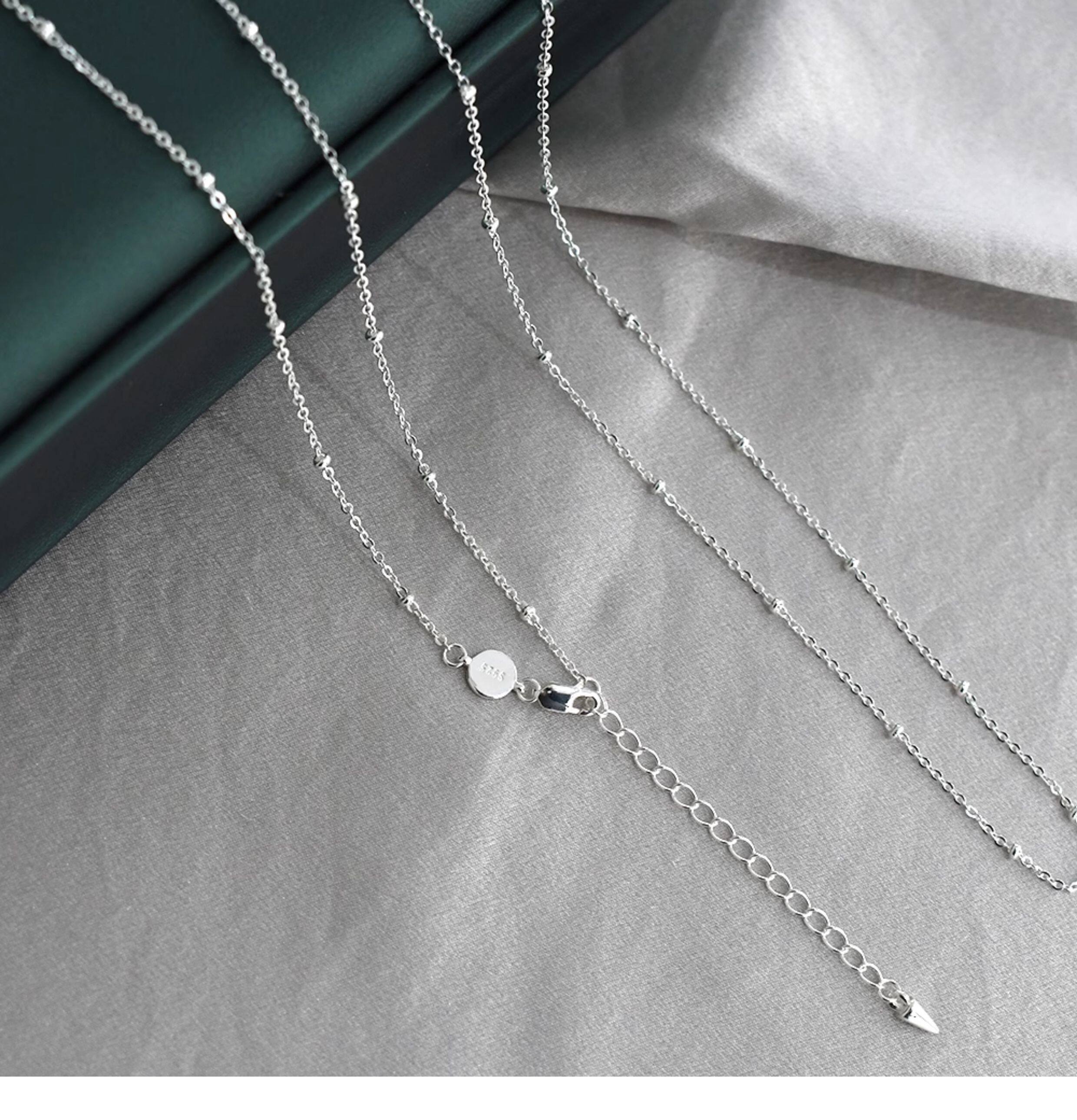 Imported 925 Sterling Silver Small Round Beads Without Pendant Plain Chain Necklace Sweater Chain Long Style for Women Autumn and Winter Versatile