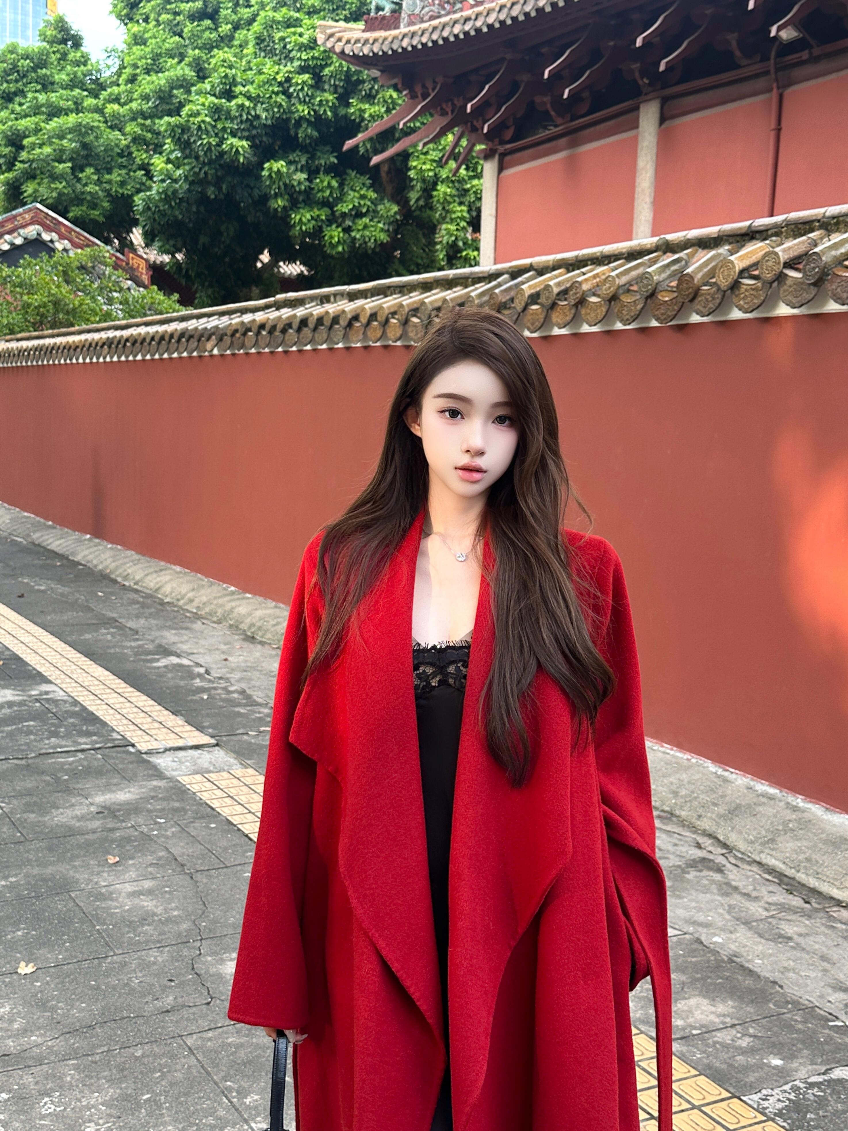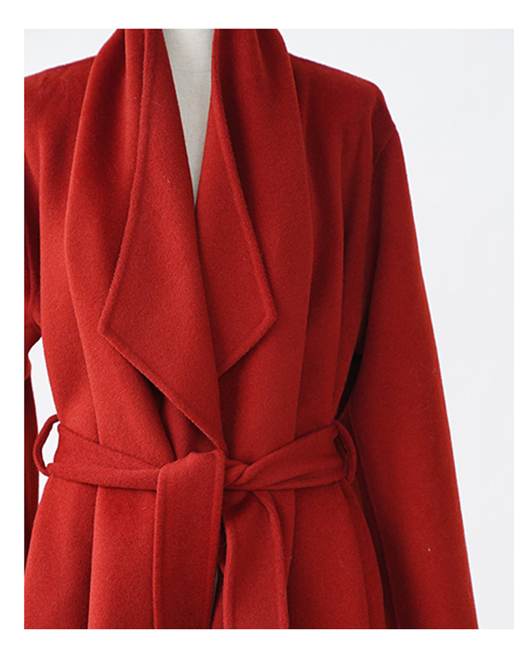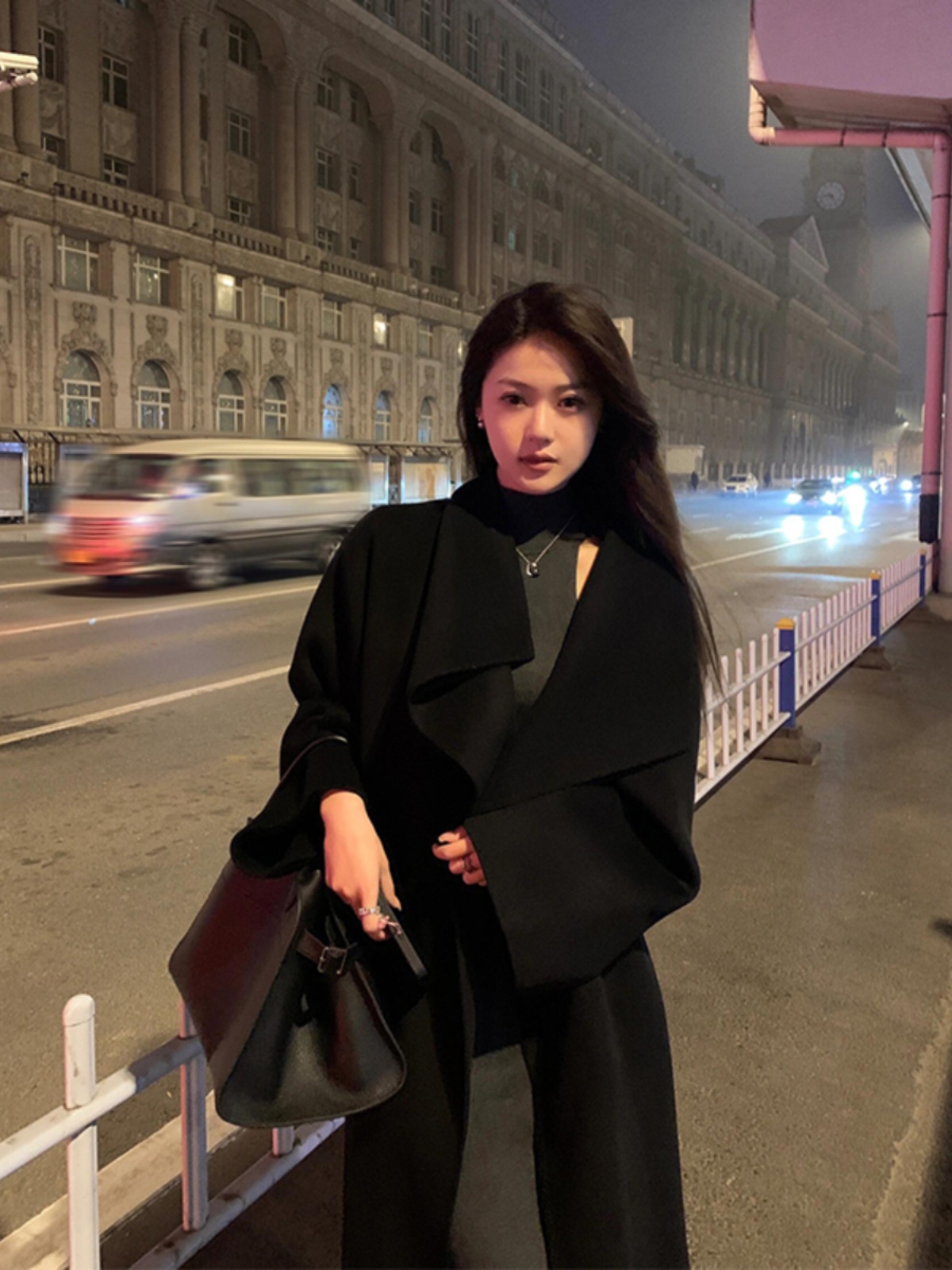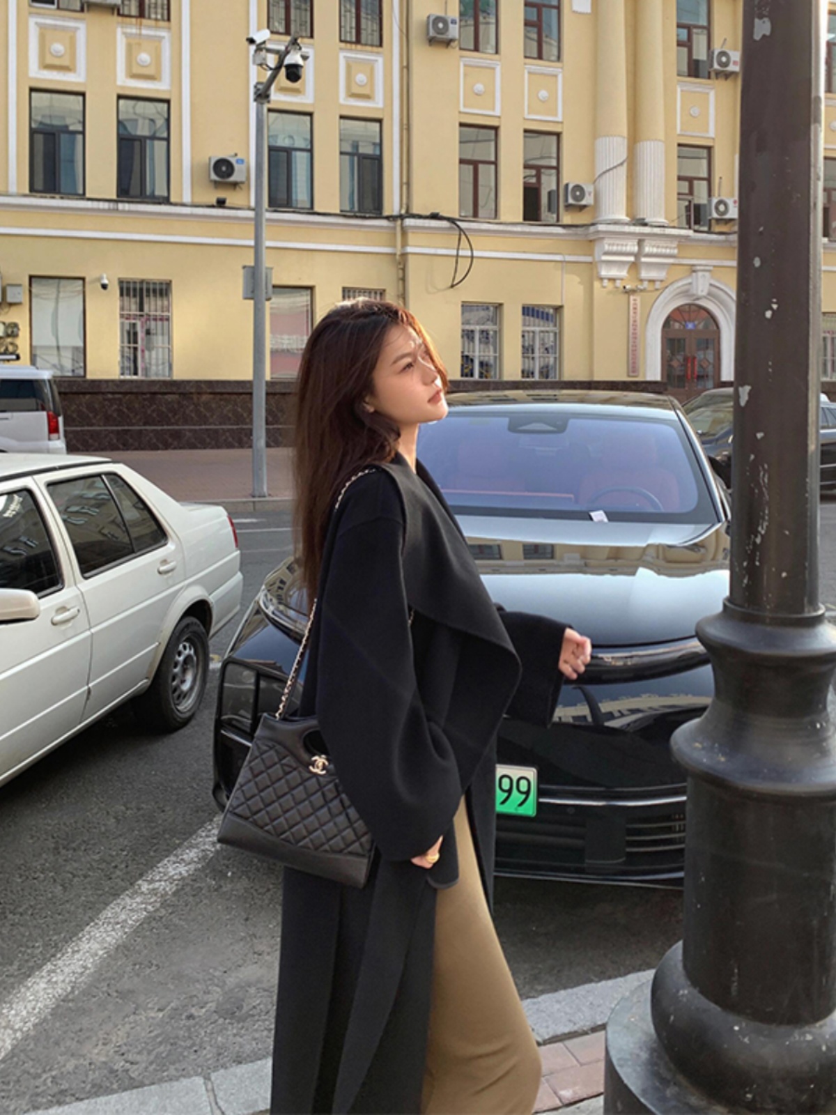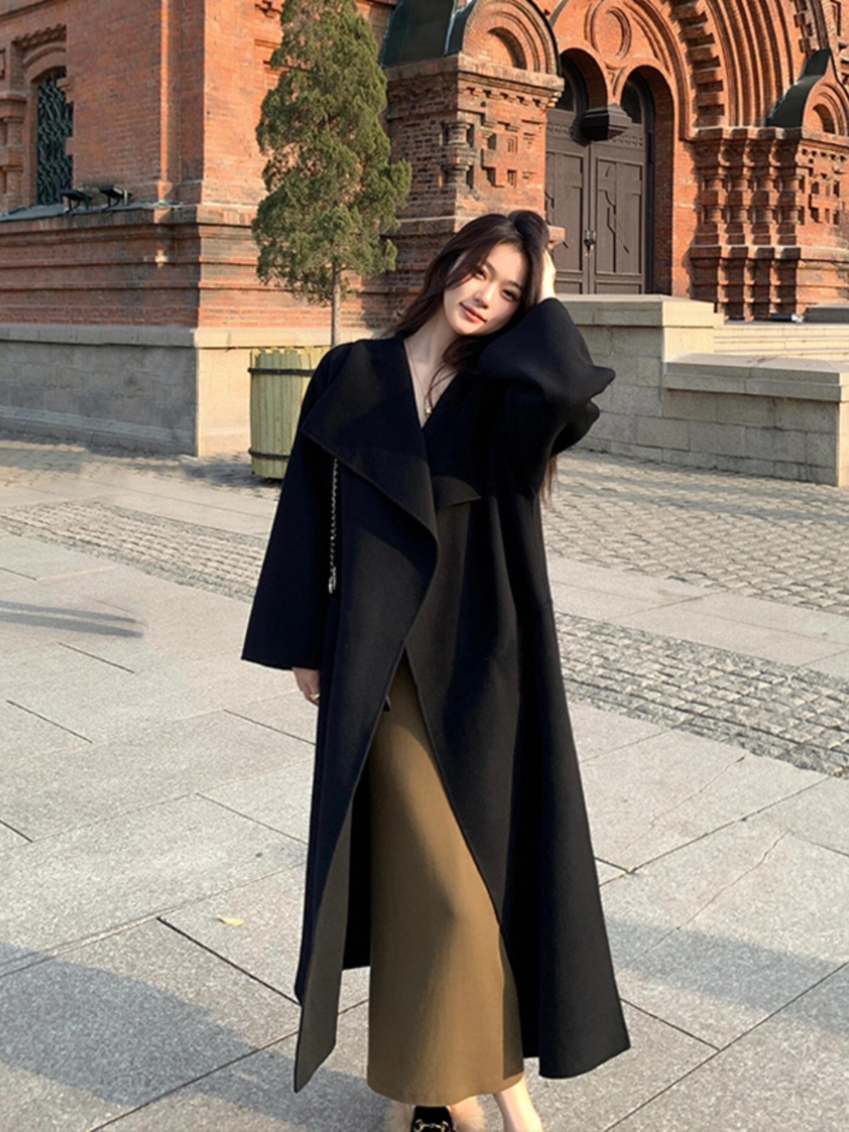 Double-Sided Wool Cashmere Coat for Women 2025 Autumn and Winter New Style Gray Large Lapel Lazy Mid-Length Sheep Wool Coat