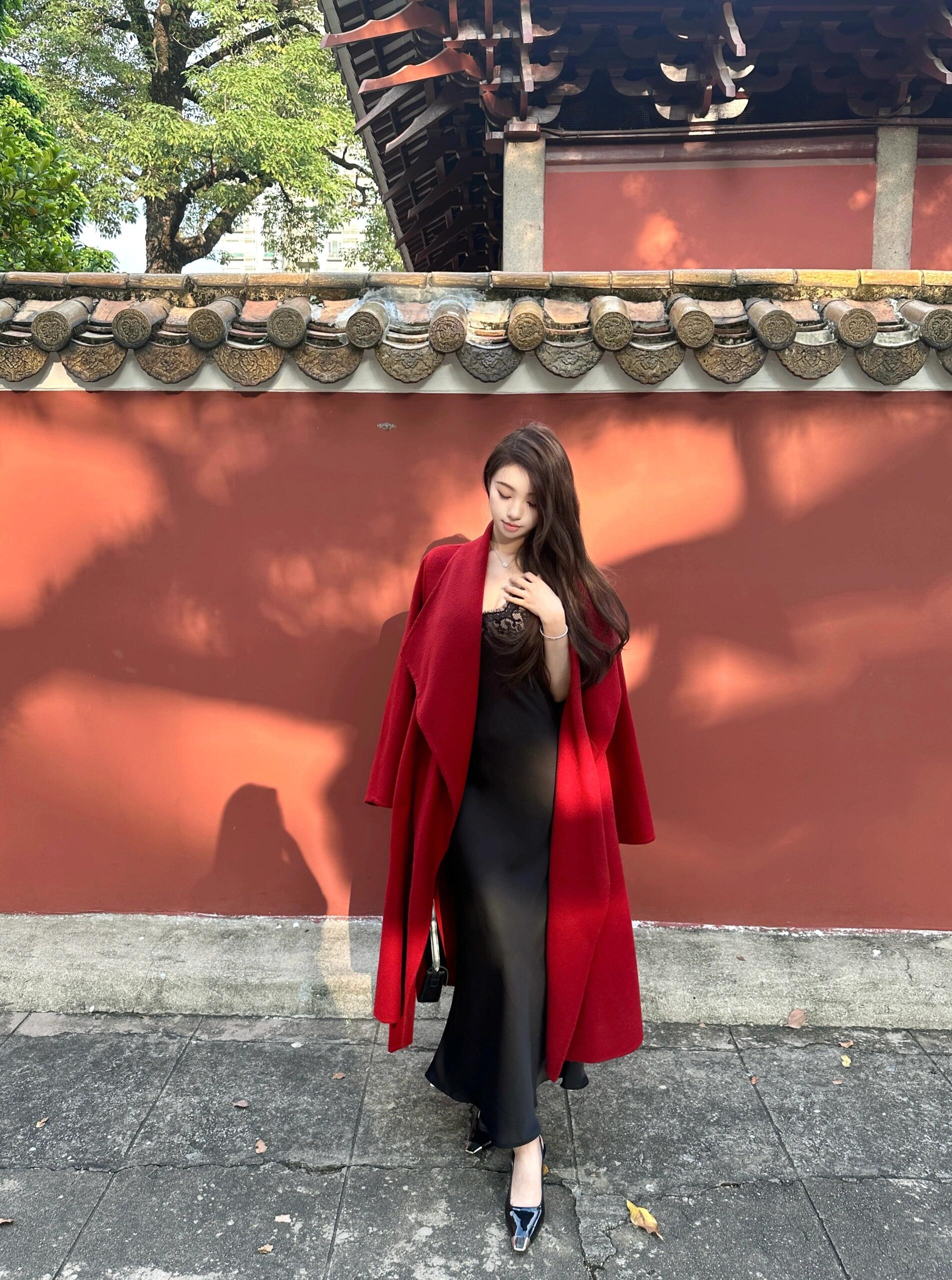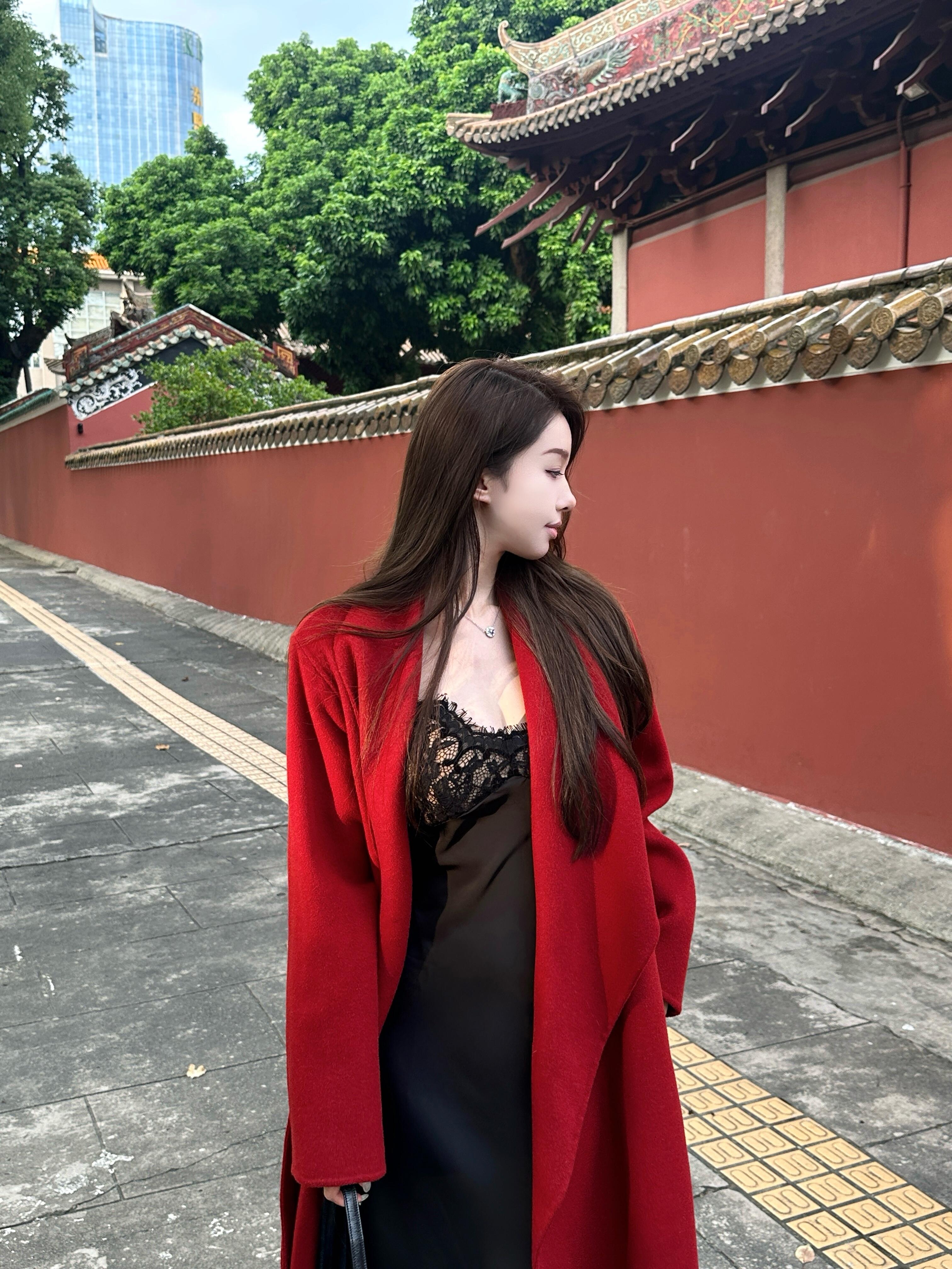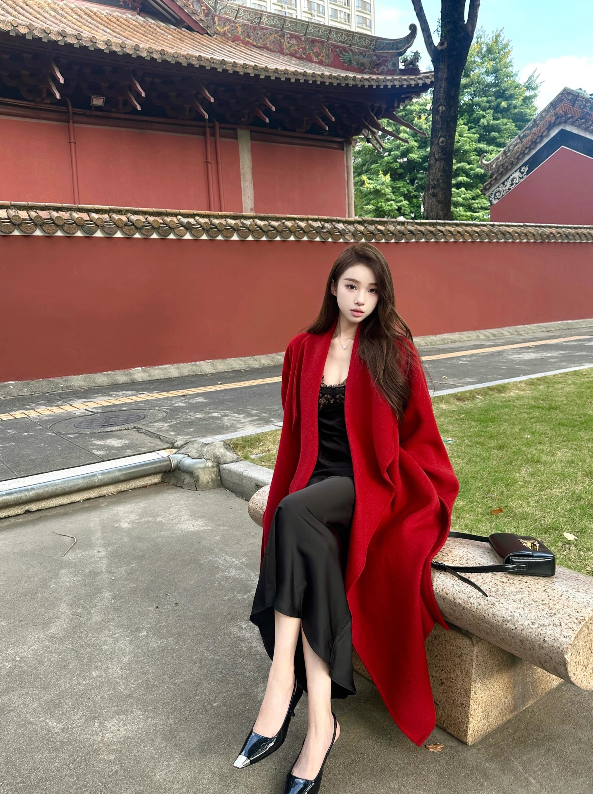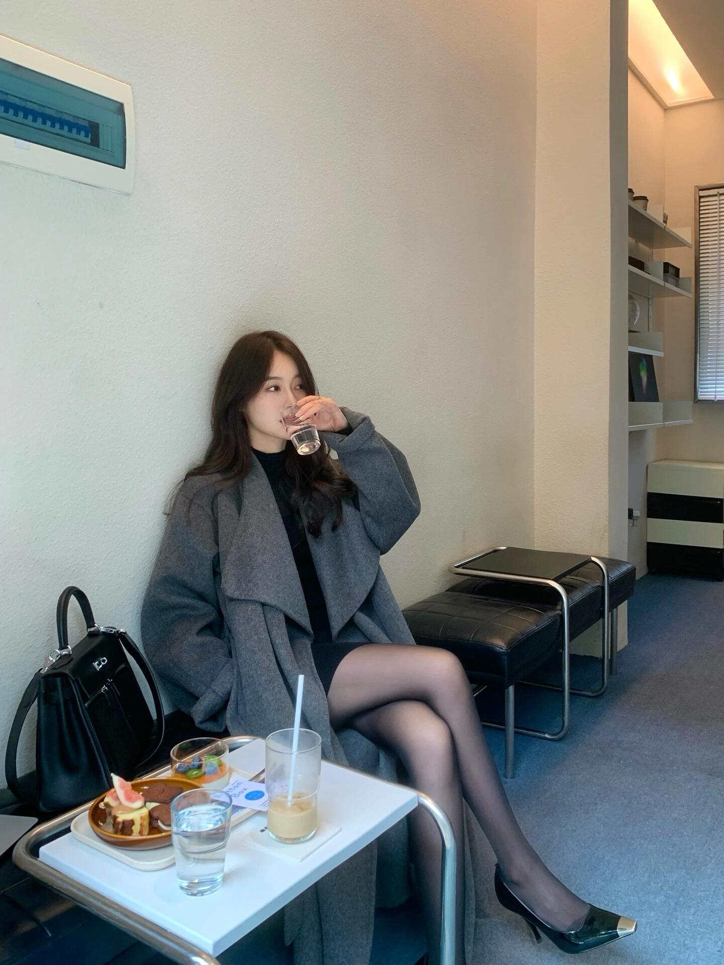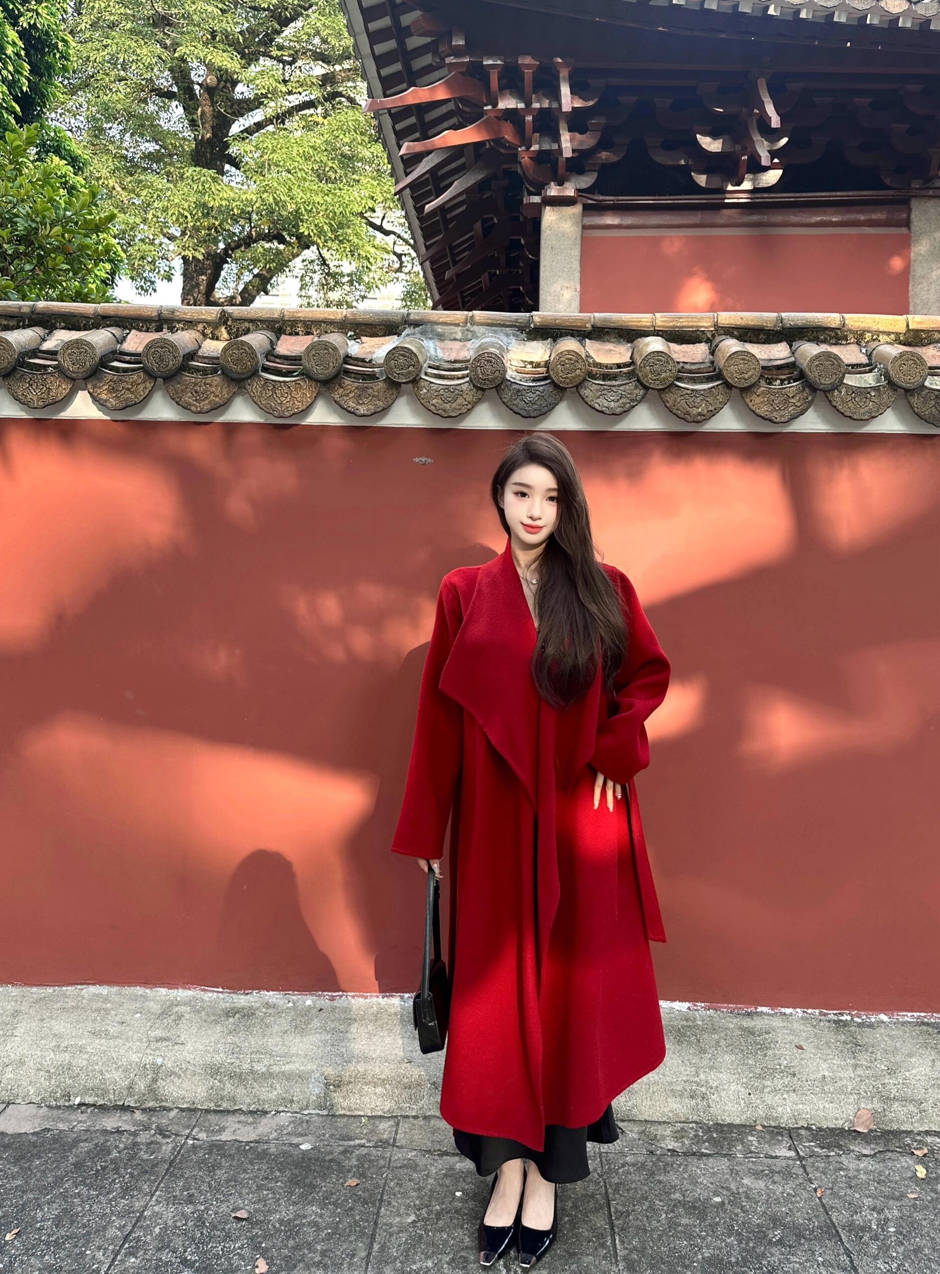 Double-Sided Wool Cashmere Coat for Women 2025 Autumn and Winter New Style Gray Large Lapel Lazy Mid-Length Sheep Wool Coat