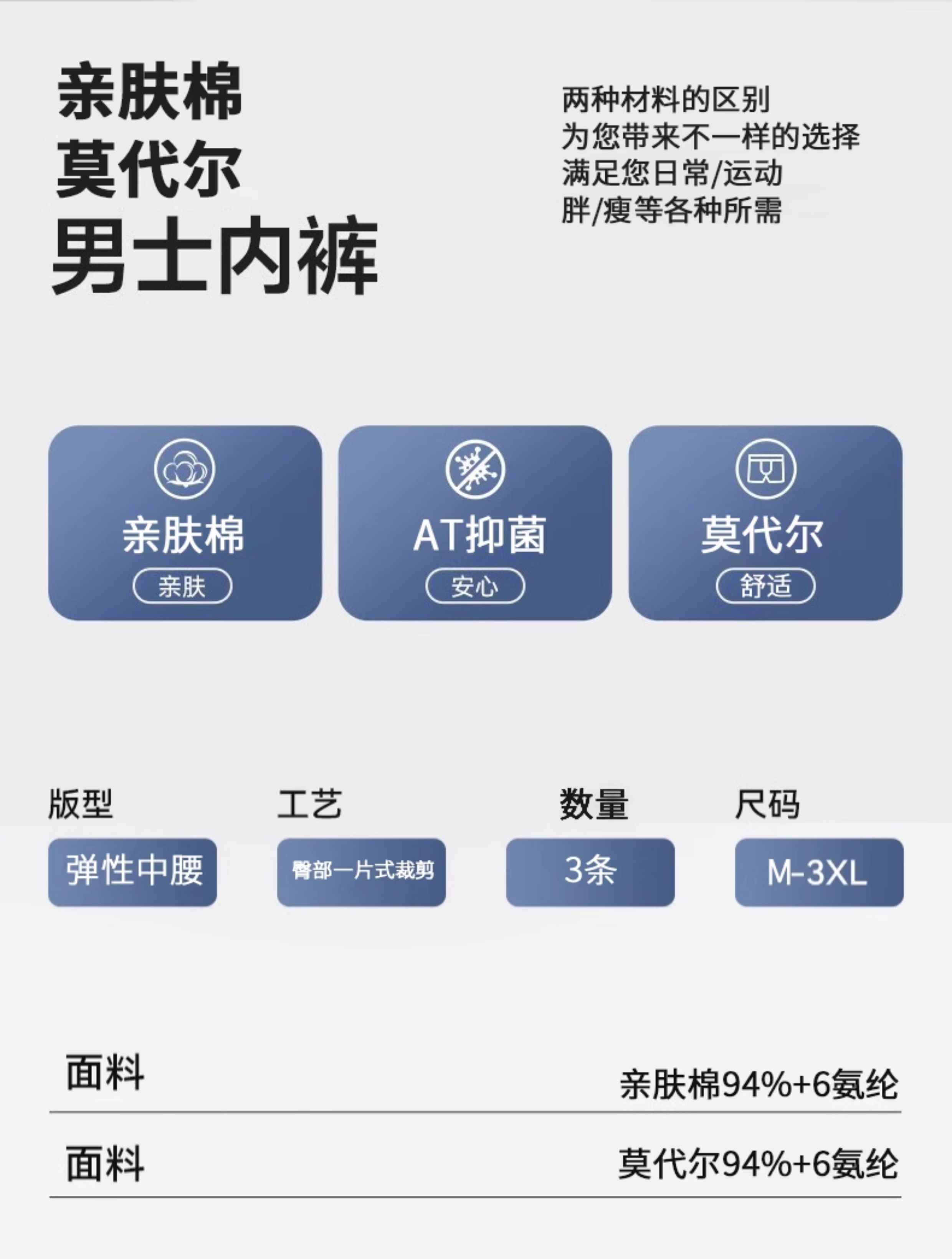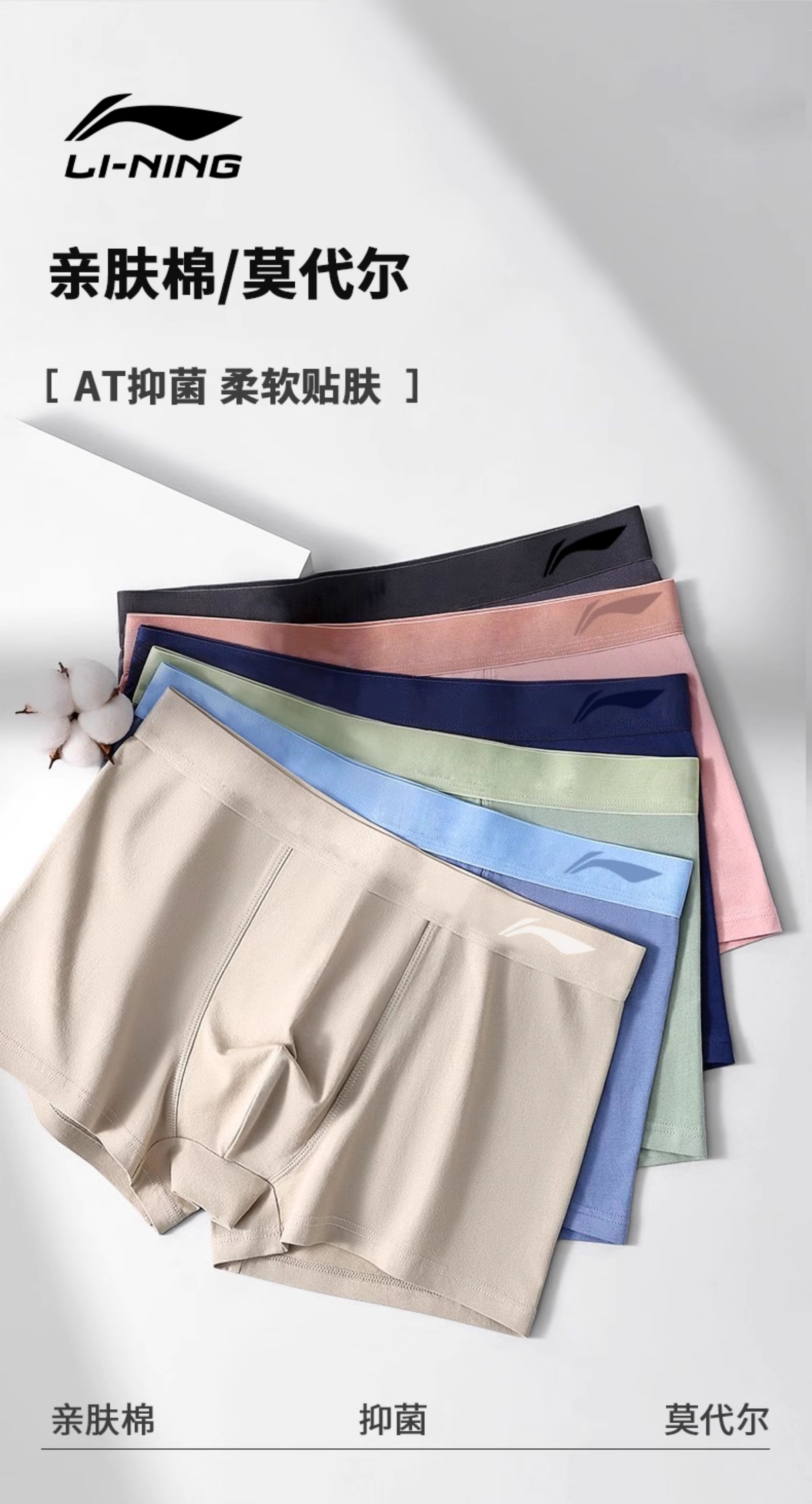 Li-Ning Men's Modal Cotton Antibacterial Breathable Youth Running Boxer Briefs Marathon