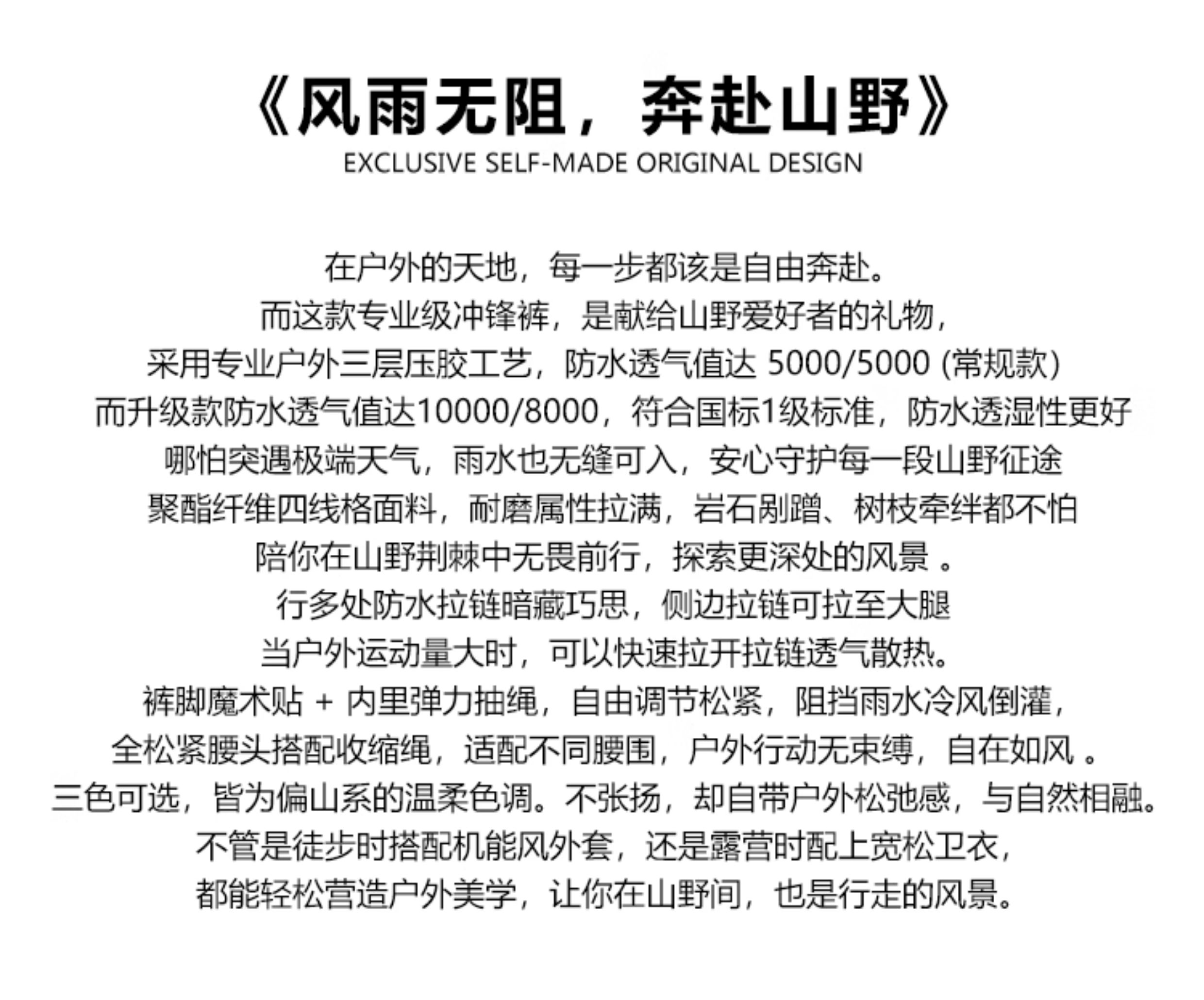 Zhuonives Outdoor Original Professional Three-Layer Laminated Hiking and Mountaineering All-Weather Pants, Couple Style, Unisex