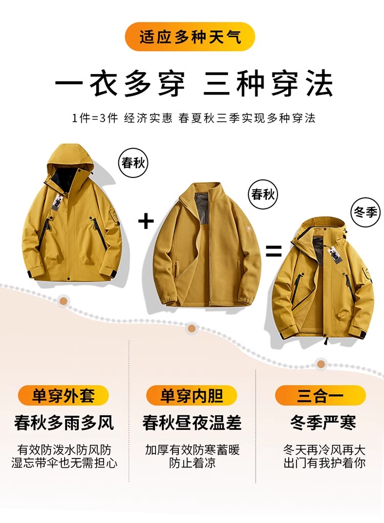 Authentic Woodpecker Outdoor Jacket for Men and Women, Three-In-One, 2025 Winter New Style, Windproof and Waterproof, Large Size Mountaineering Jacket
