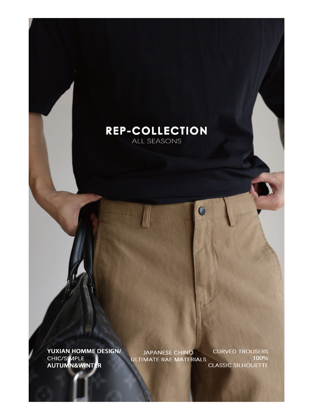 [Cotton Washed] Japanese Chino Knife-Cut Pants Pure Cotton Loose Casual Versatile Straight-Leg Men's Trousers for All Seasons