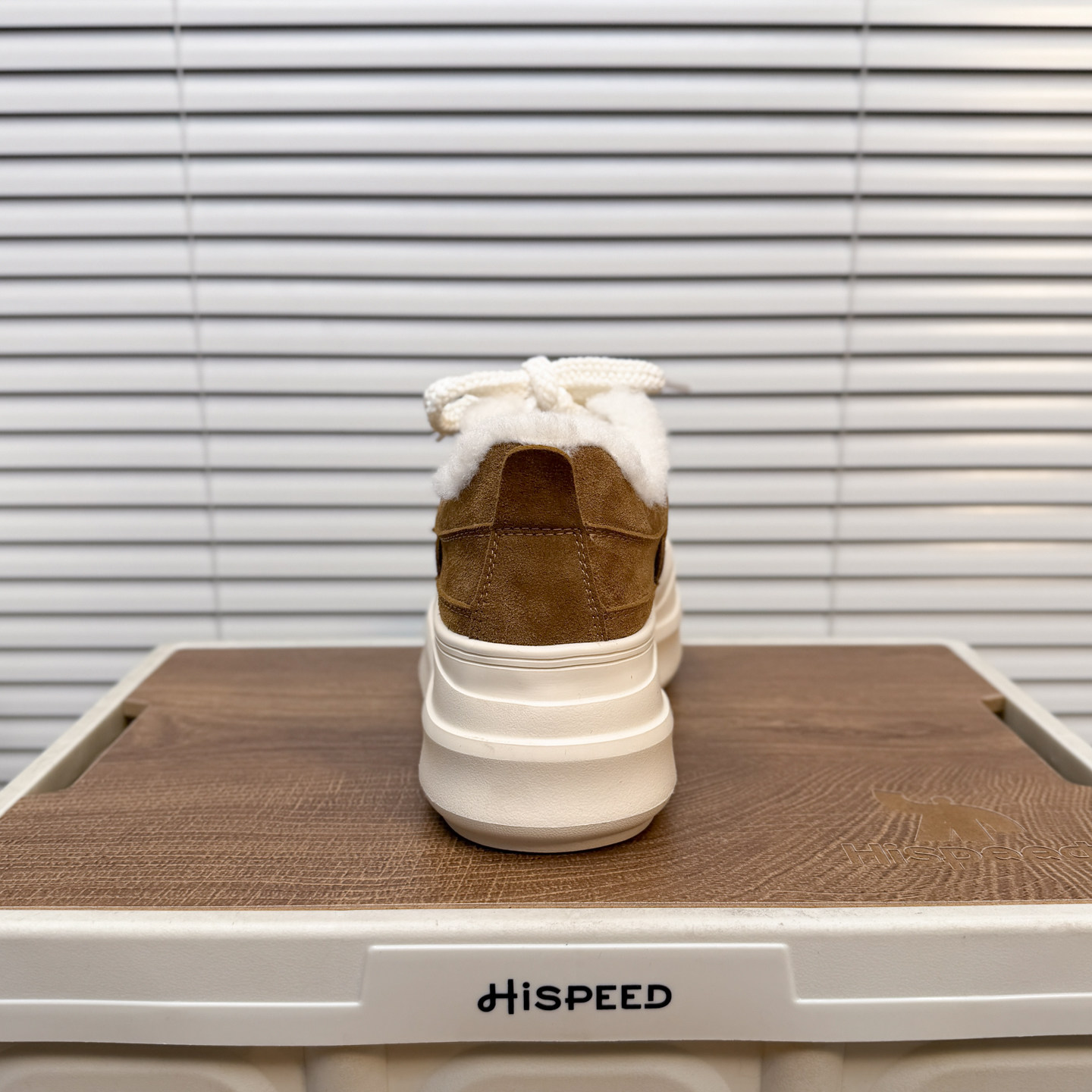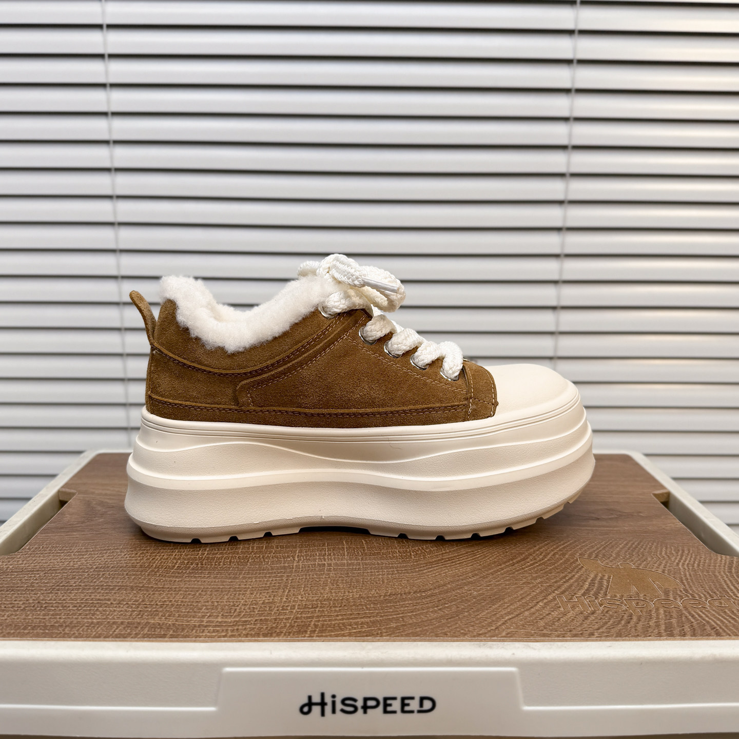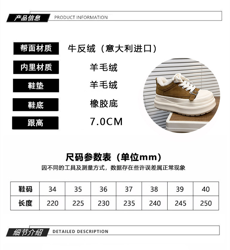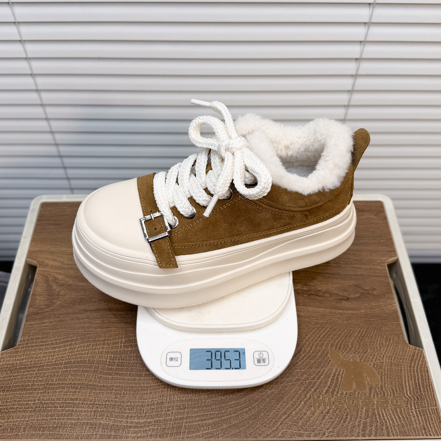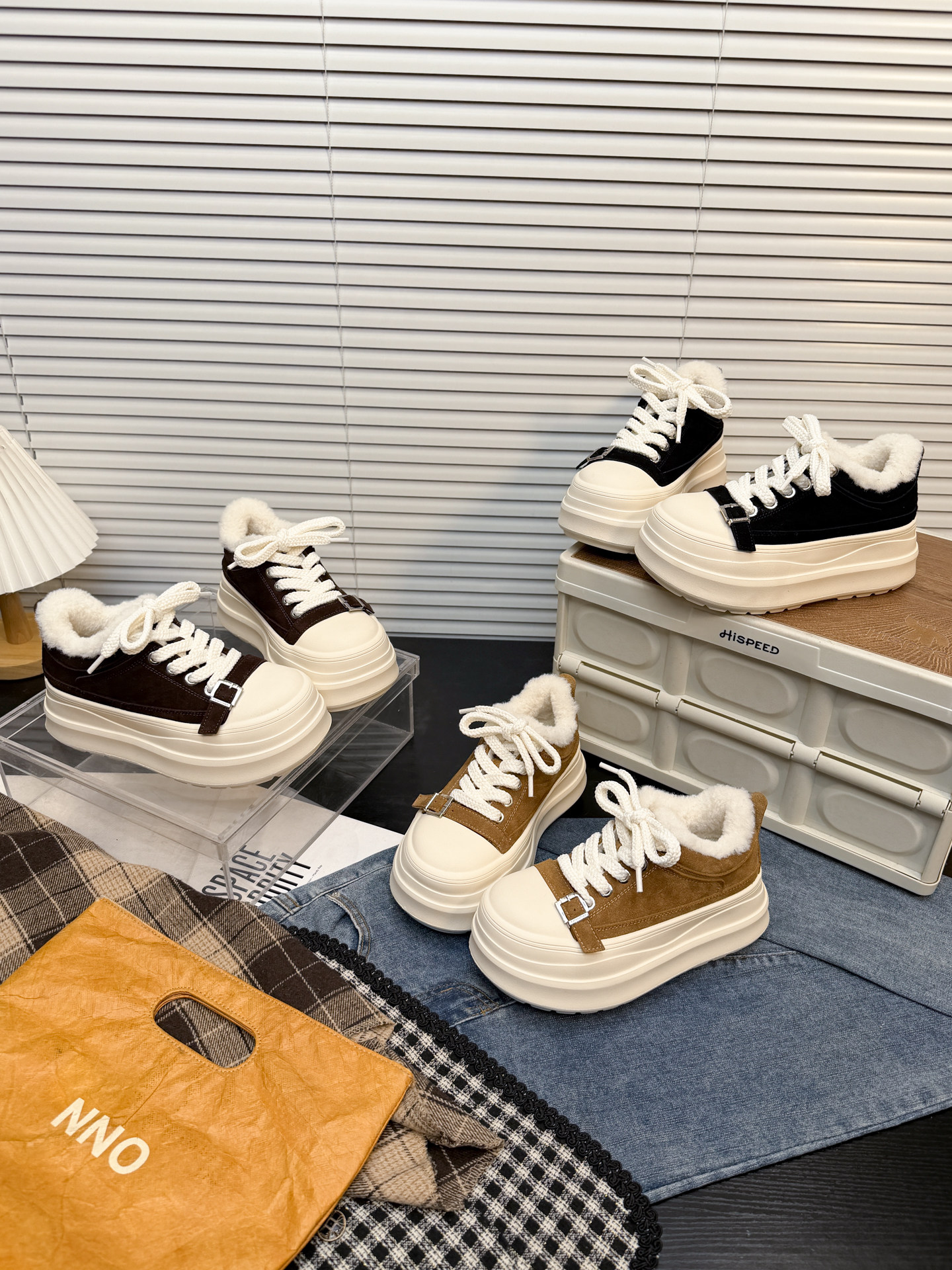 Hong Kong Retro Lamb Wool Thick-Soled Height-Increasing Sneakers for Women, Winter Genuine Leather Fleece-Lined Casual Warm Cotton Shoes, Versatile Furry Shoes