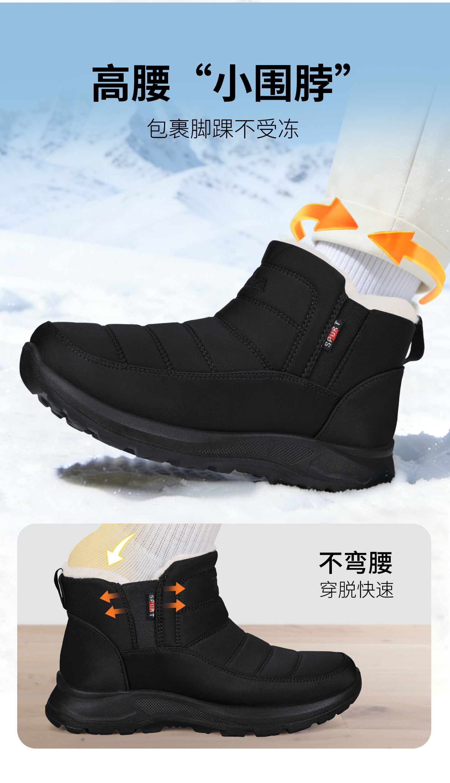 Old Beijing Cotton Shoes for Men, Winter Fleece-Lined and Thickened, Cold-Proof, Middle-Aged and Elderly Snow Boots, Northeast Waterproof Wool Dad Cotton Shoes