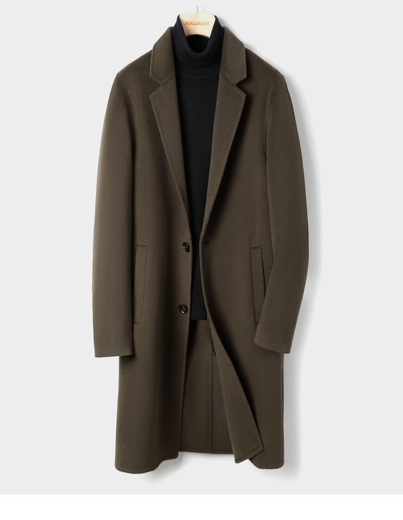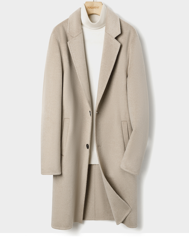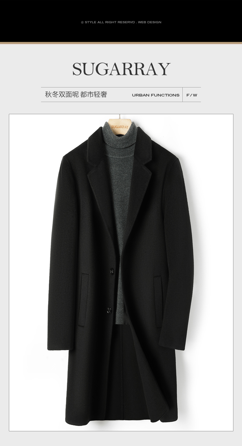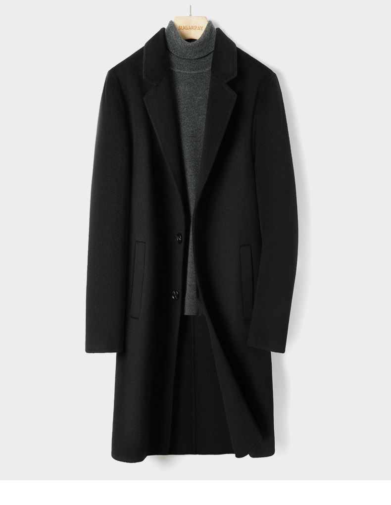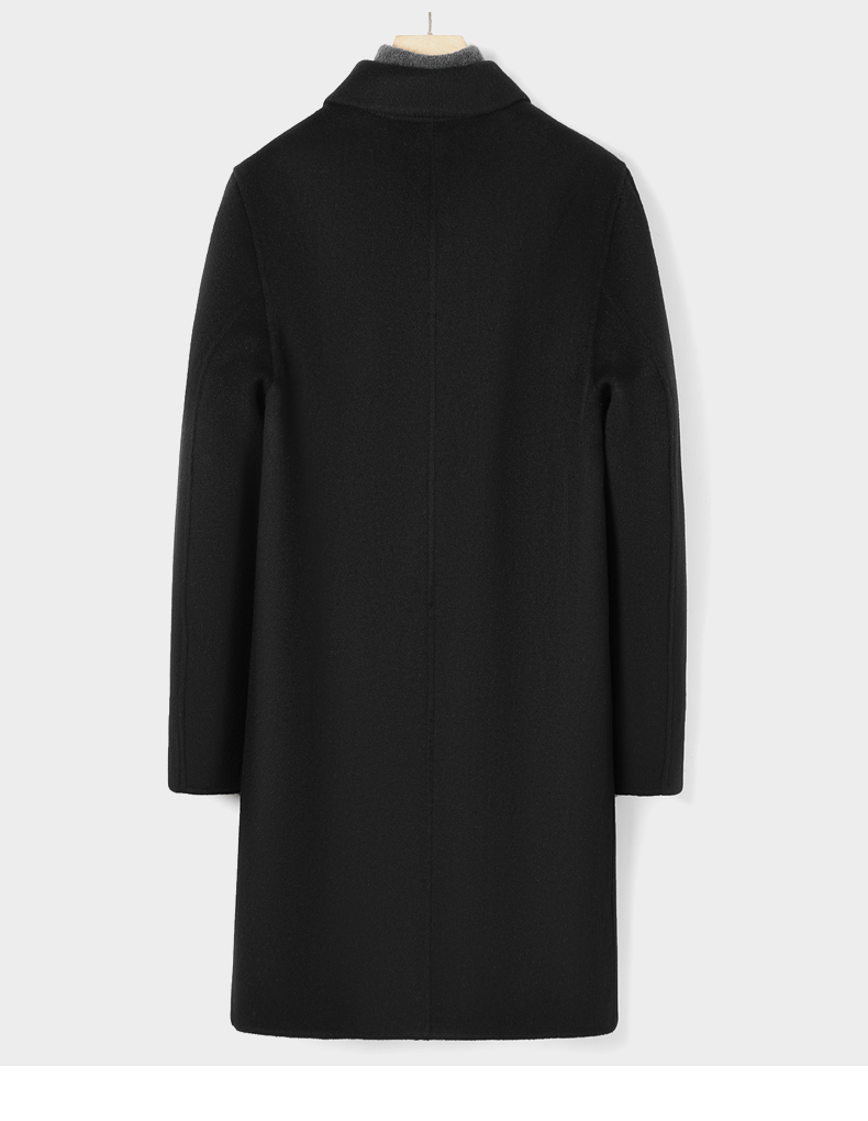 2025 New Men's 100% Pure Cashmere Stylish Double-Sided Wool Coat, Mid-Length, Thickened, Black, Trendy for Autumn and Winter