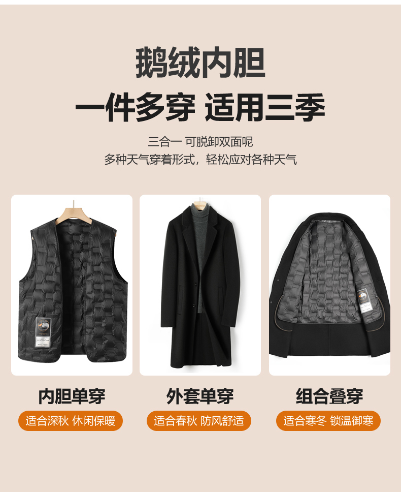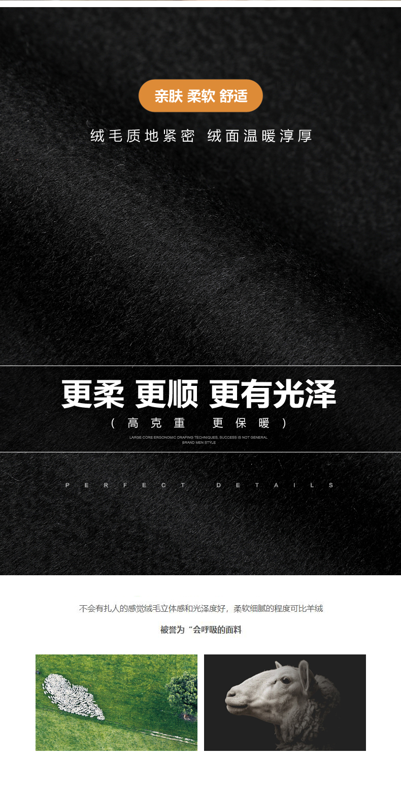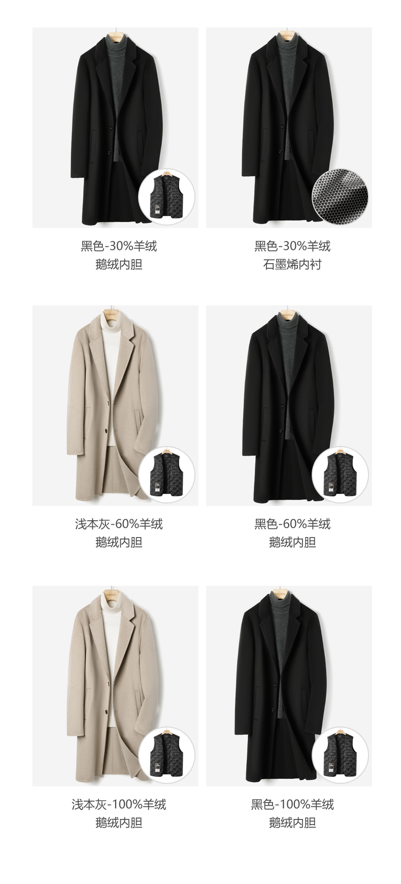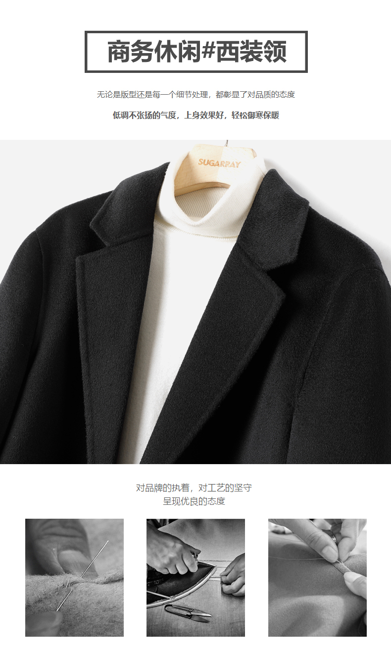 2025 New Men's 100% Pure Cashmere Stylish Double-Sided Wool Coat, Mid-Length, Thickened, Black, Trendy for Autumn and Winter