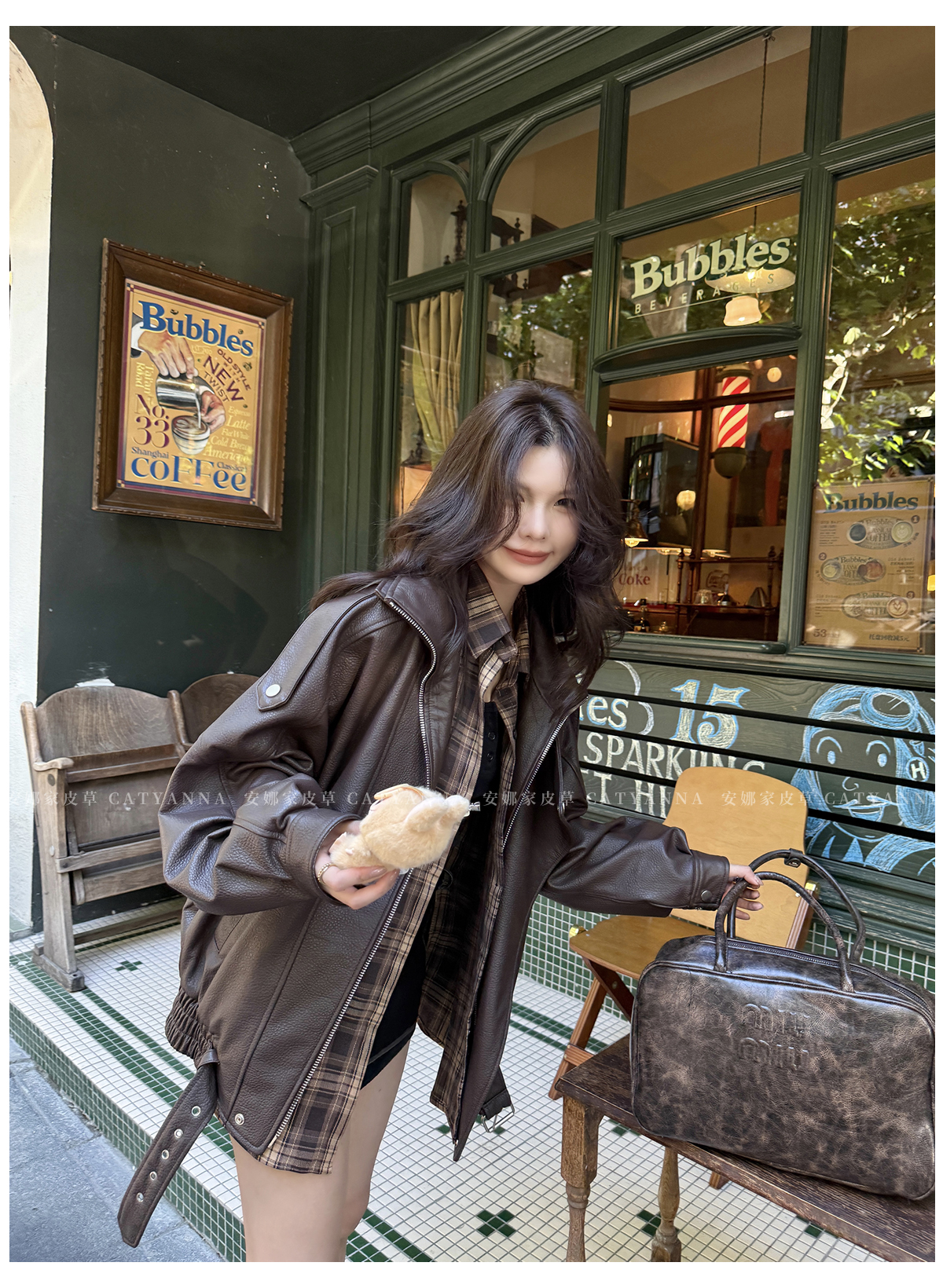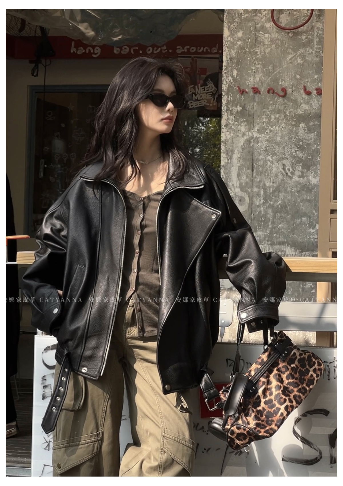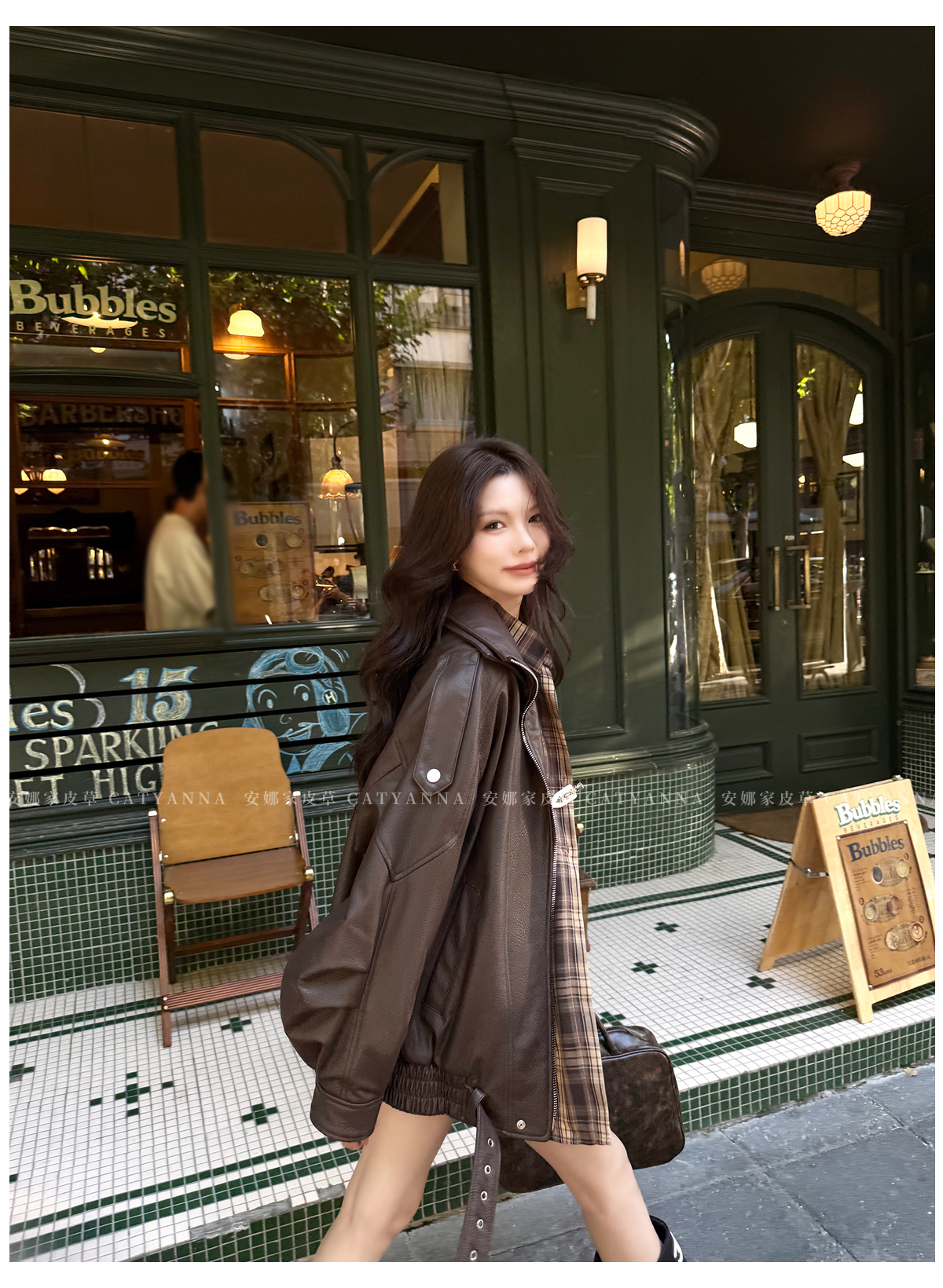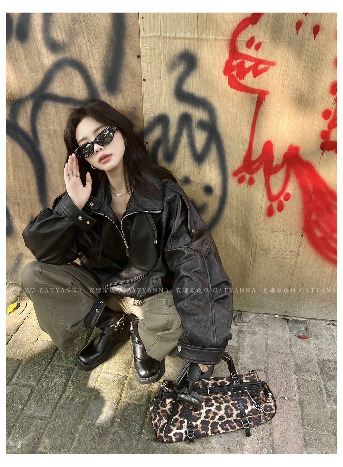 Manhattan Block American Retro Sheepskin Genuine Leather Jacket Women's Short Leather Jacket 2025 Spring and Autumn Coat