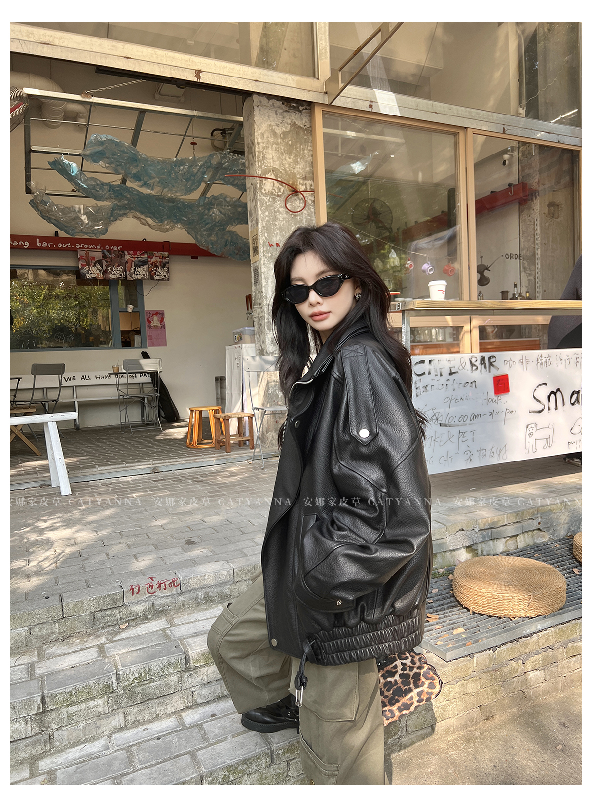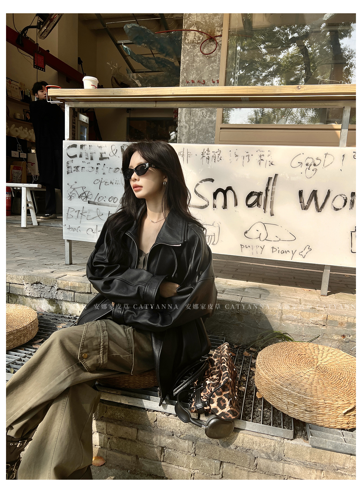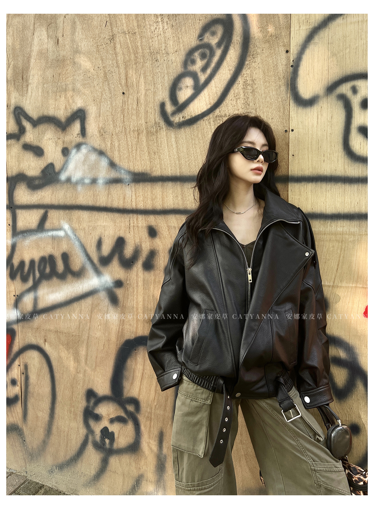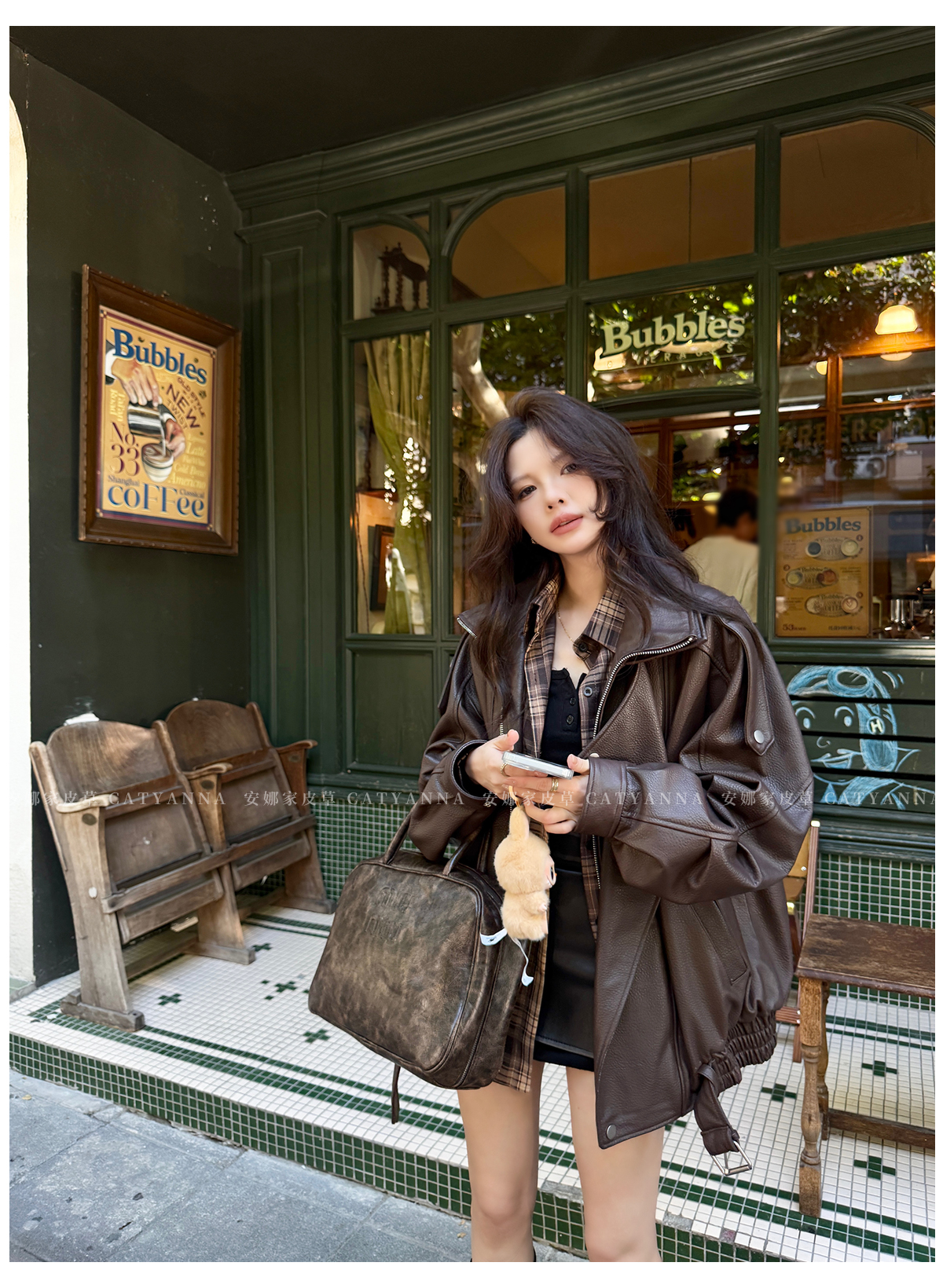 Manhattan Block American Retro Sheepskin Genuine Leather Jacket Women's Short Leather Jacket 2025 Spring and Autumn Coat