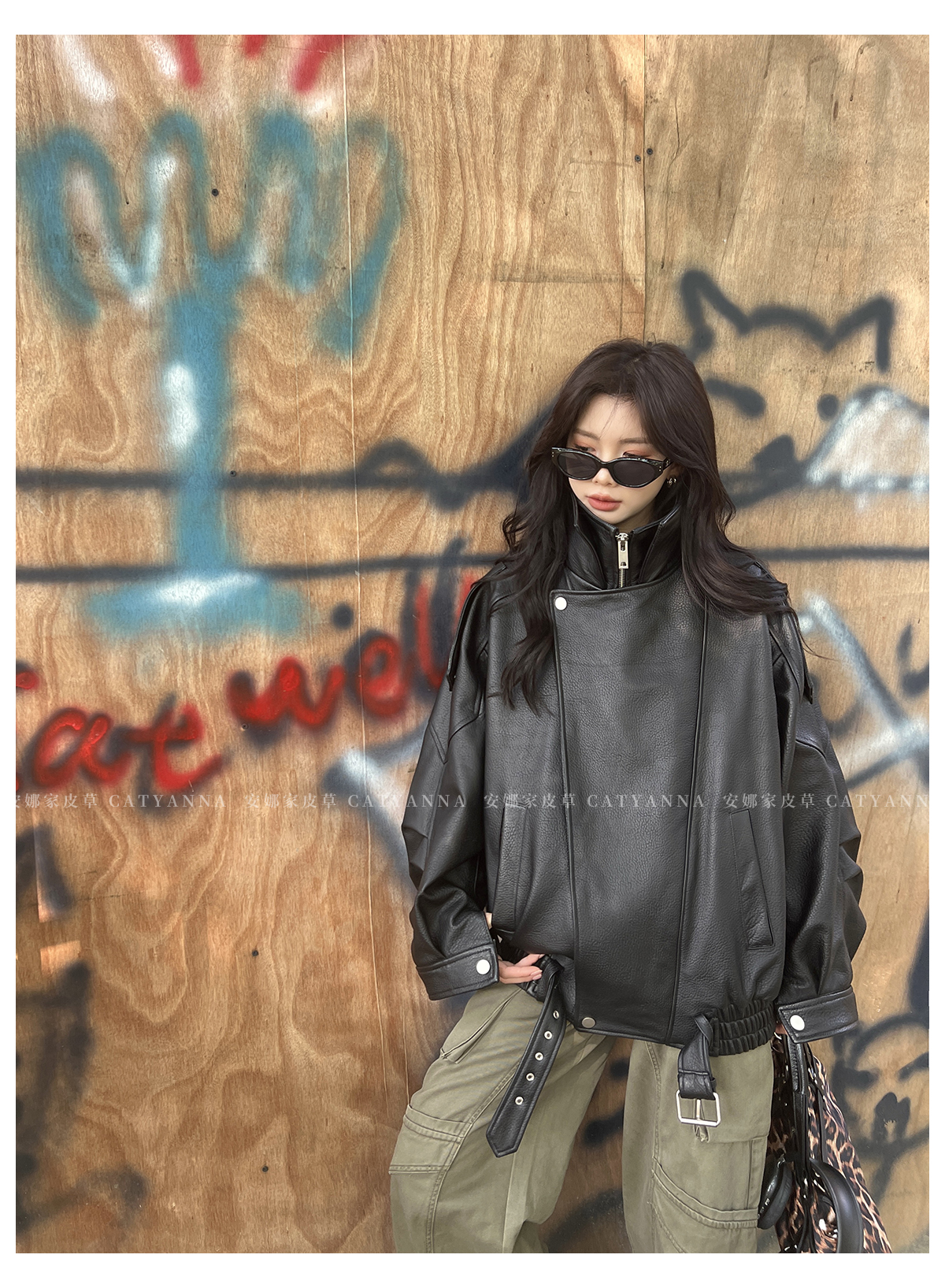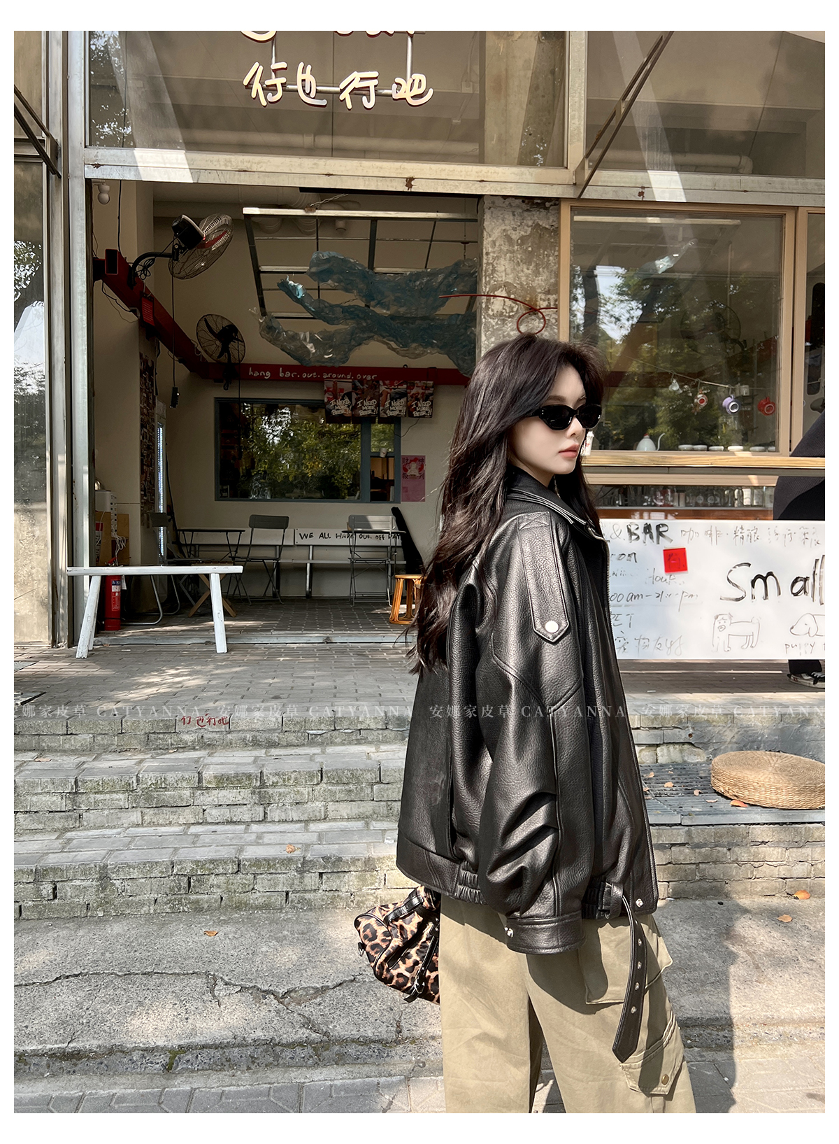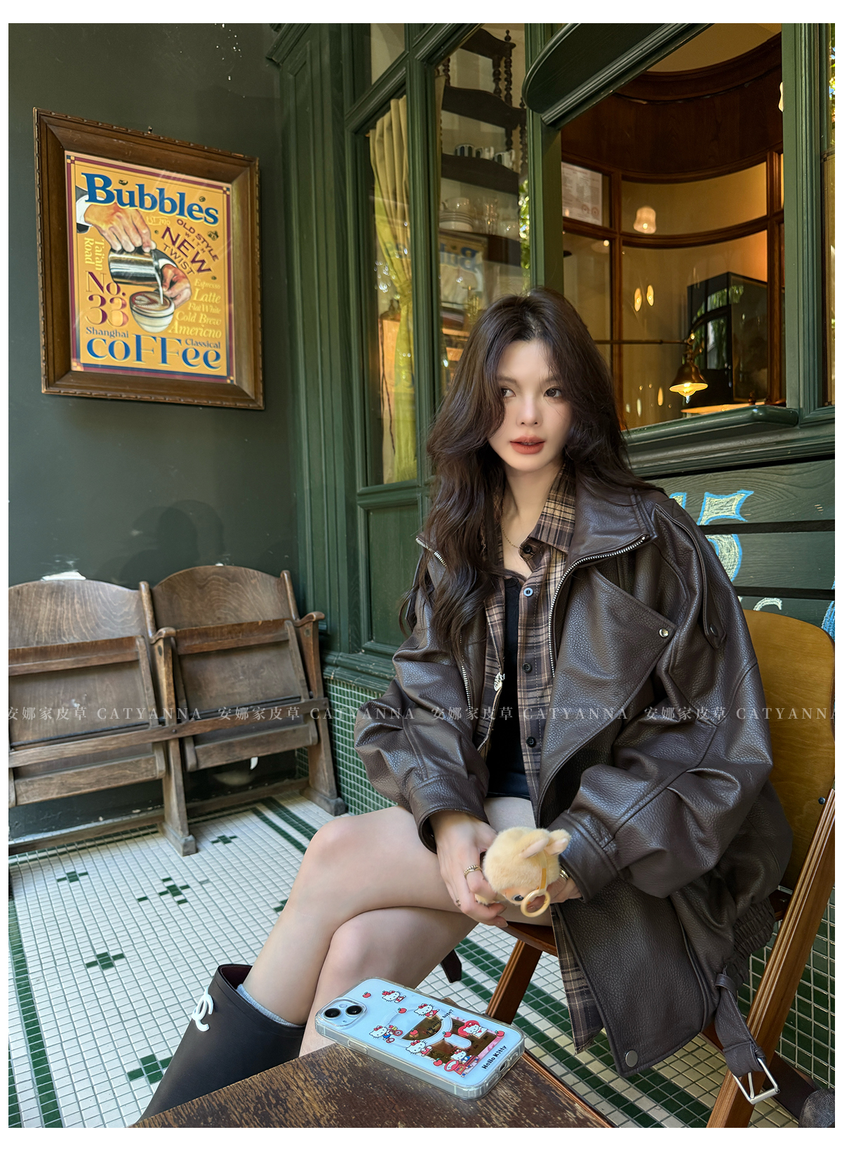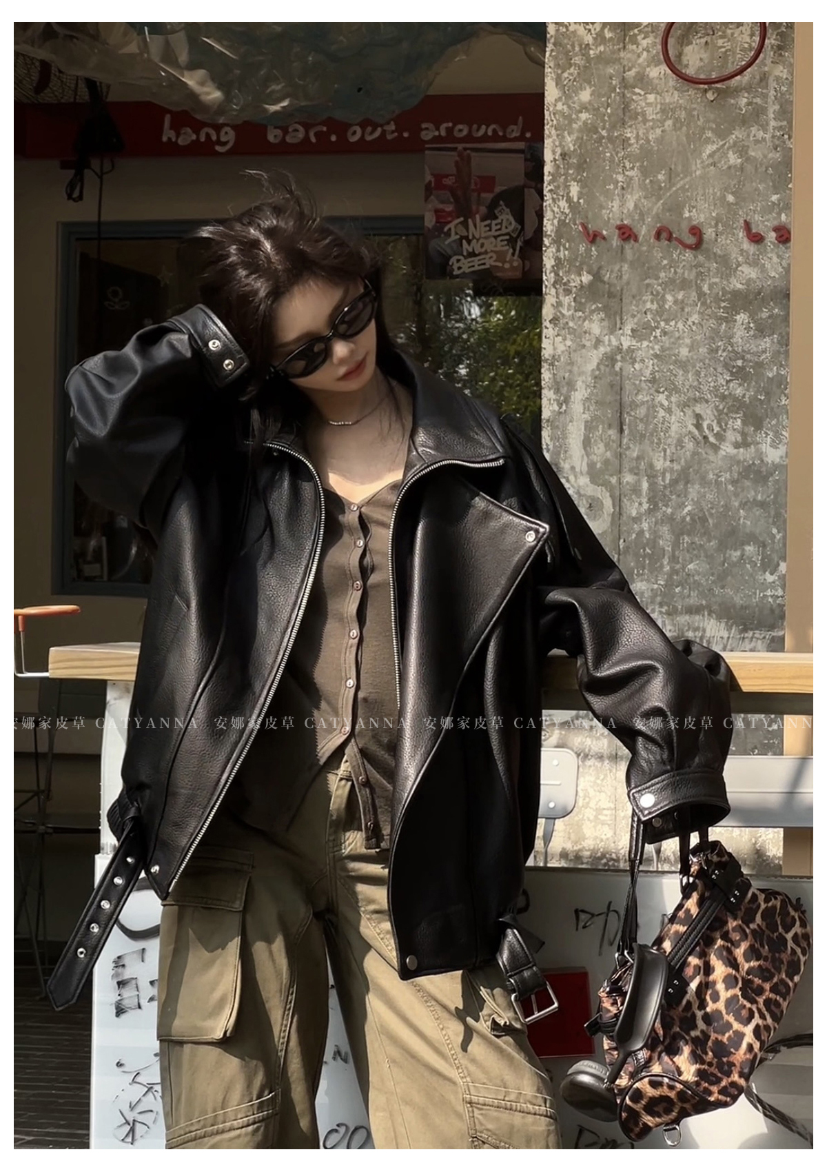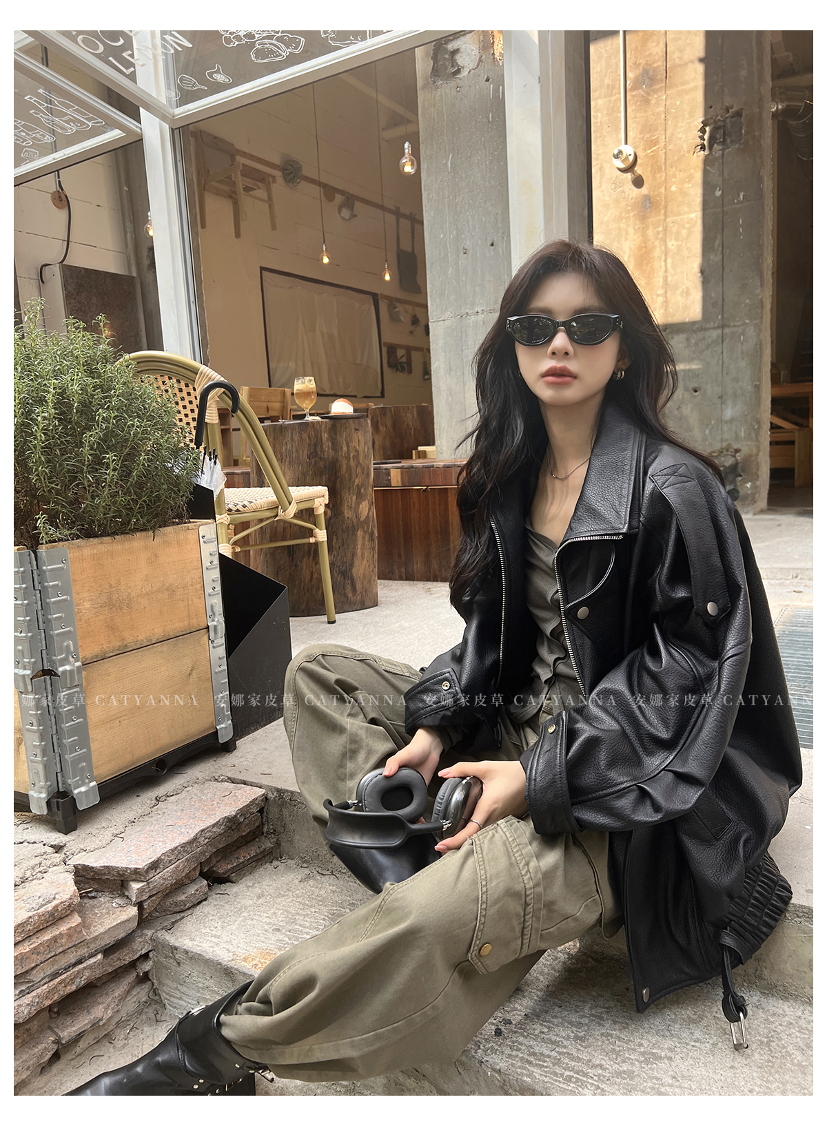 Manhattan Block American Retro Sheepskin Genuine Leather Jacket Women's Short Leather Jacket 2025 Spring and Autumn Coat