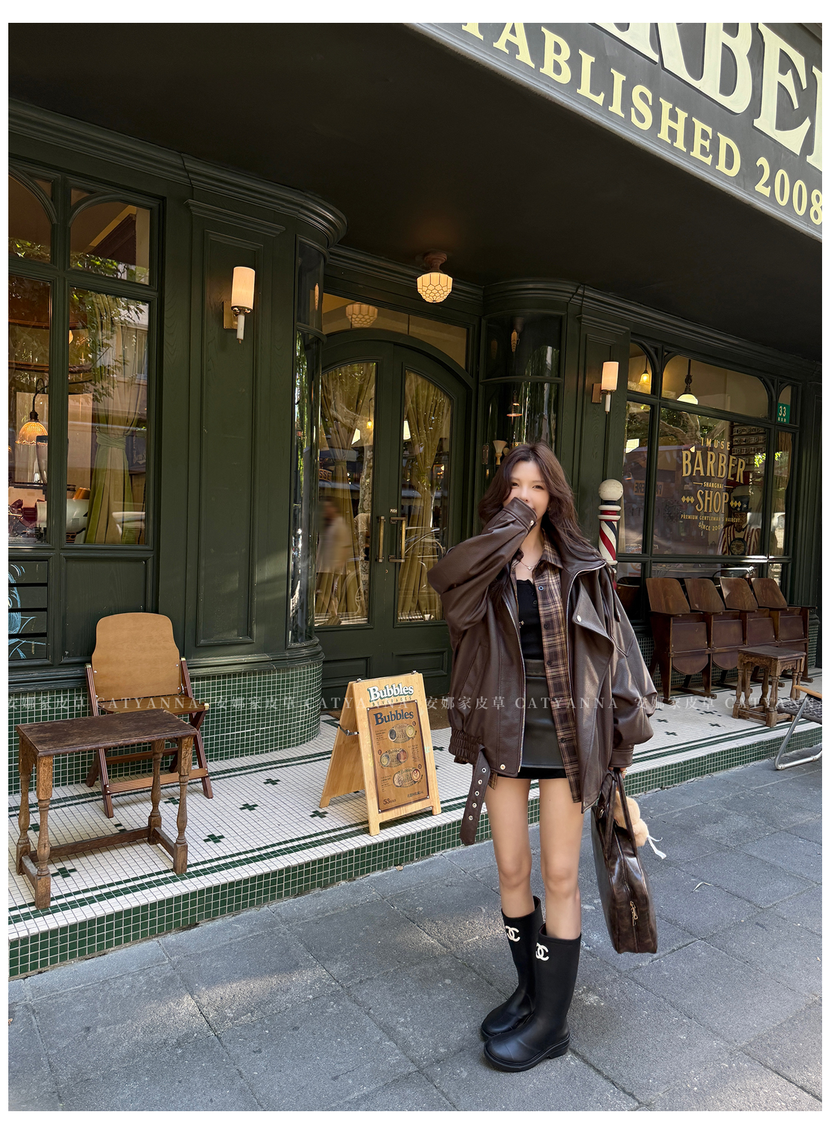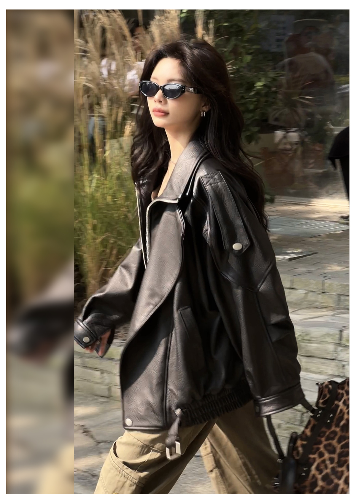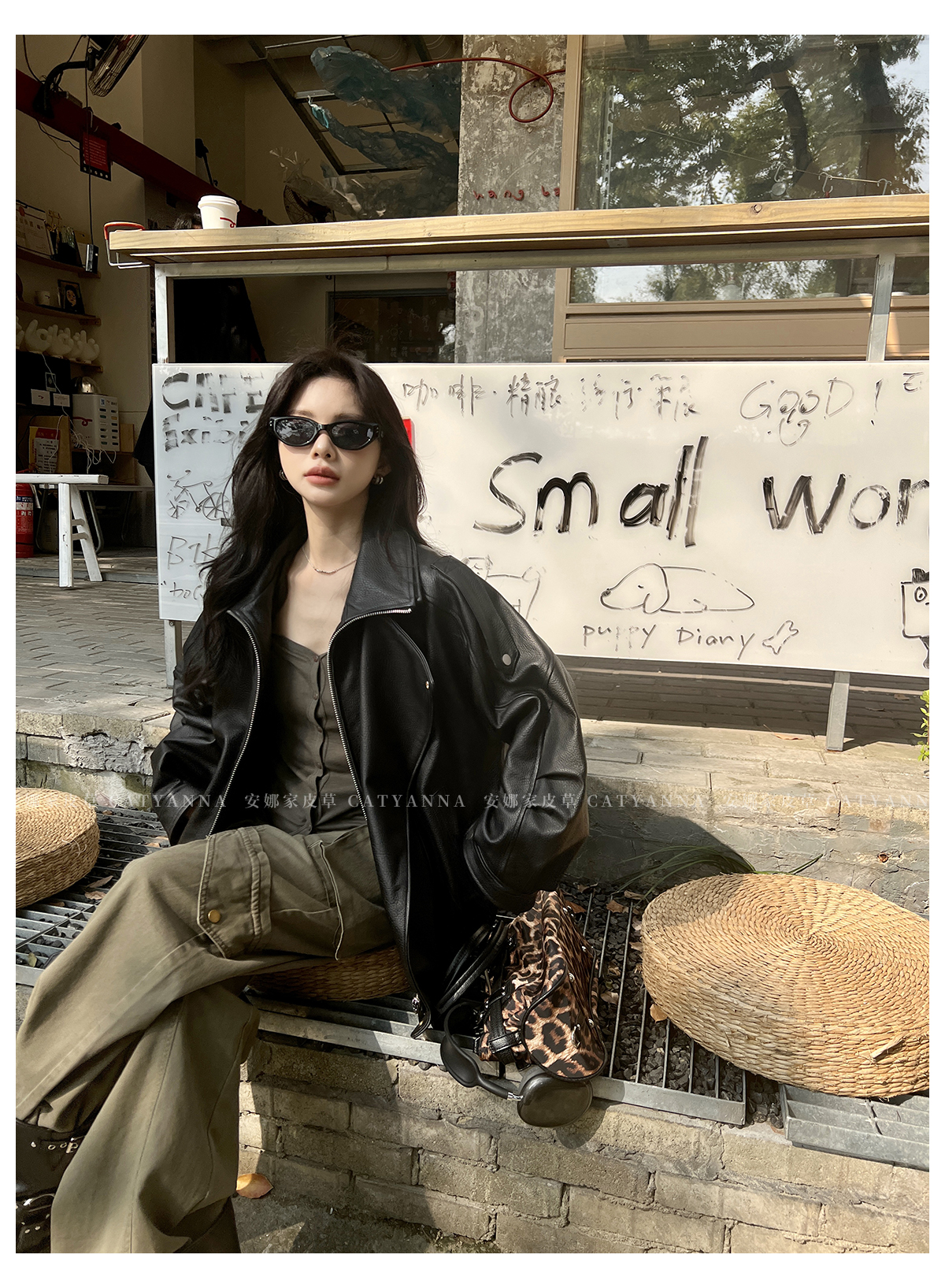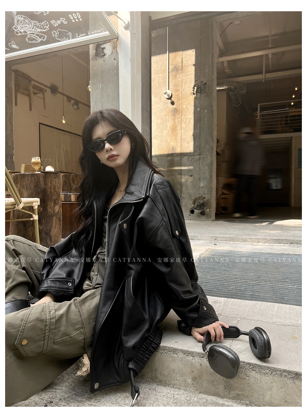 Manhattan Block American Retro Sheepskin Genuine Leather Jacket Women's Short Leather Jacket 2025 Spring and Autumn Coat