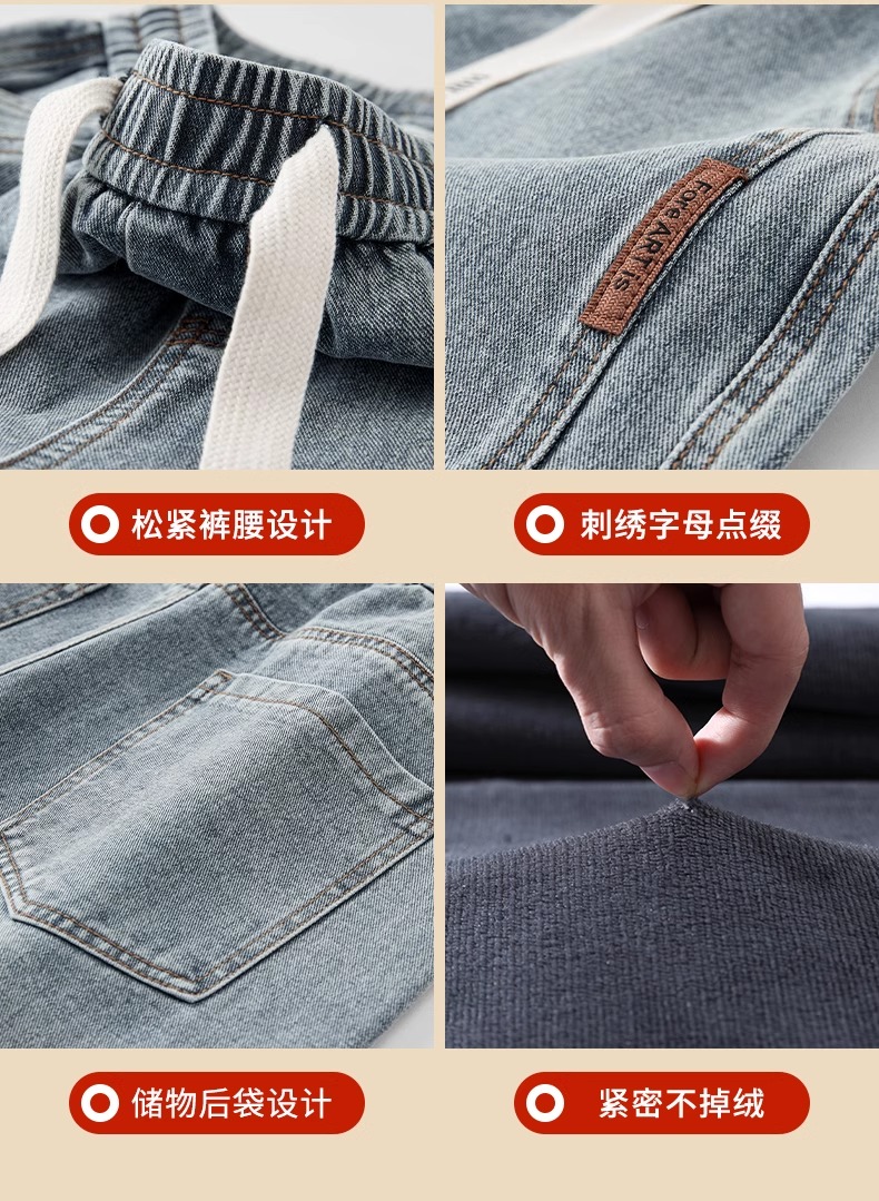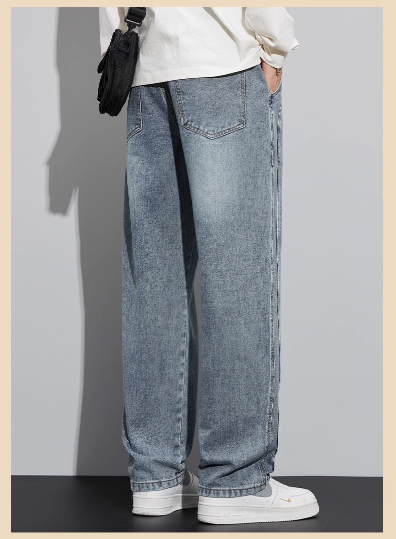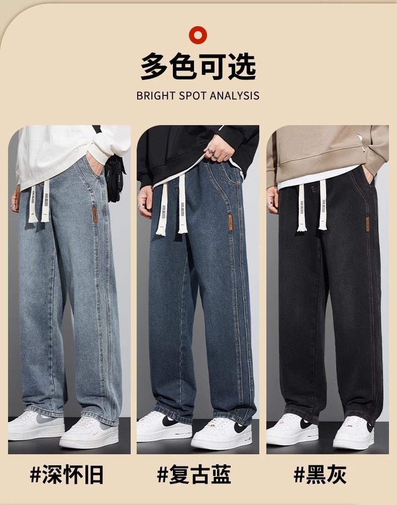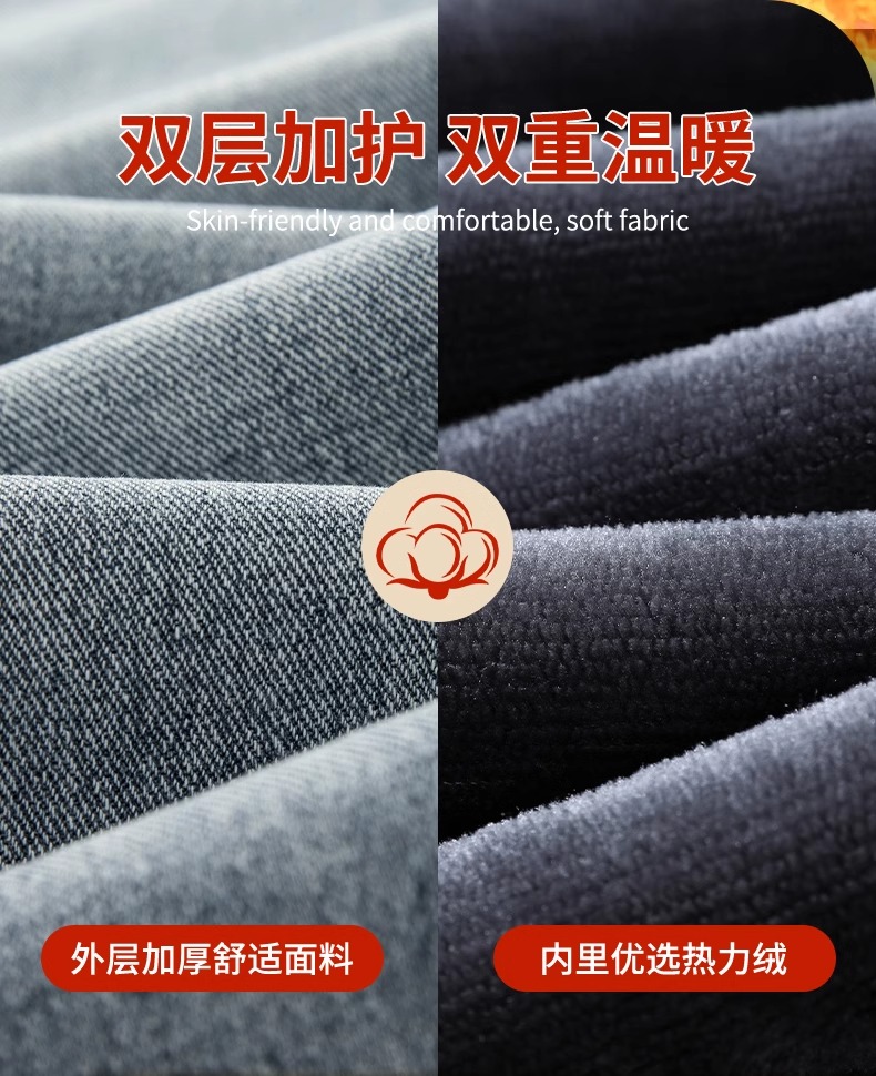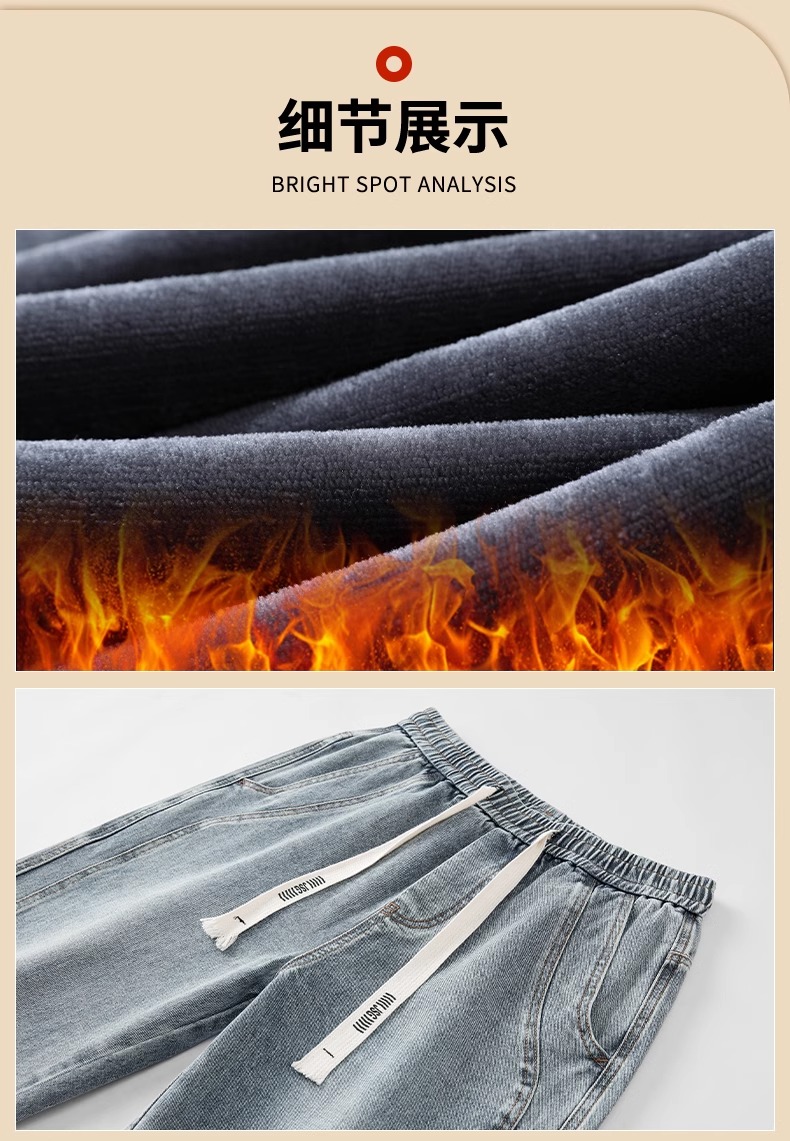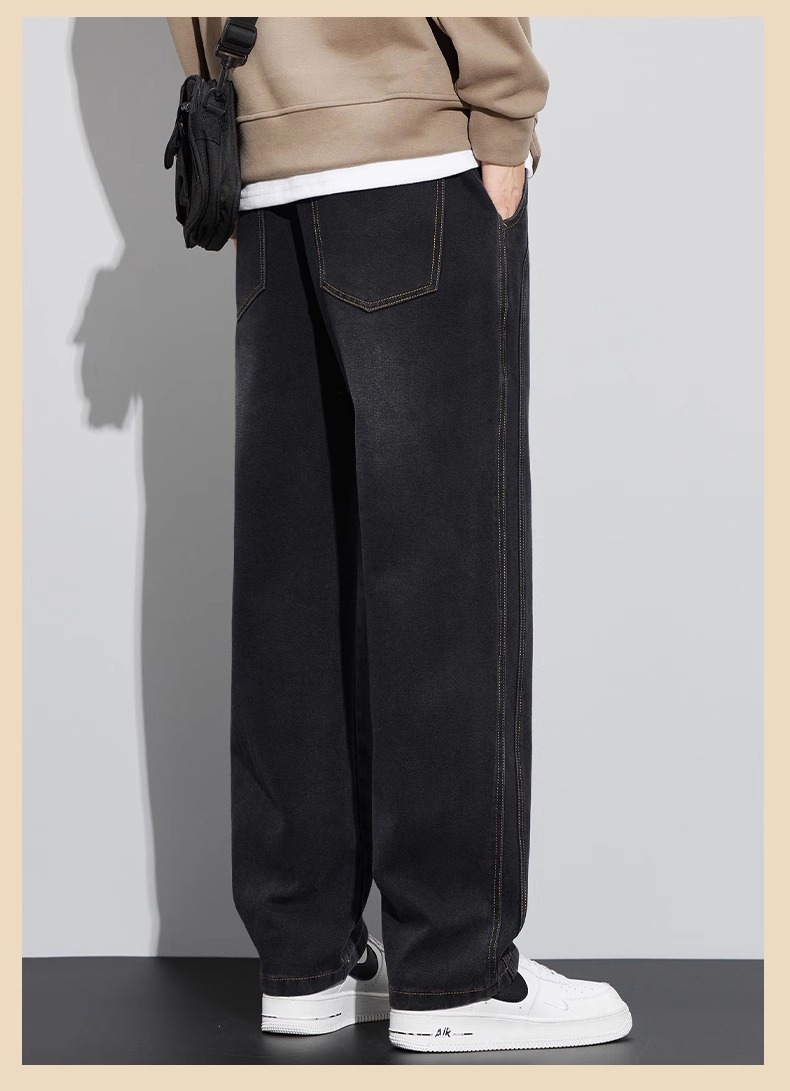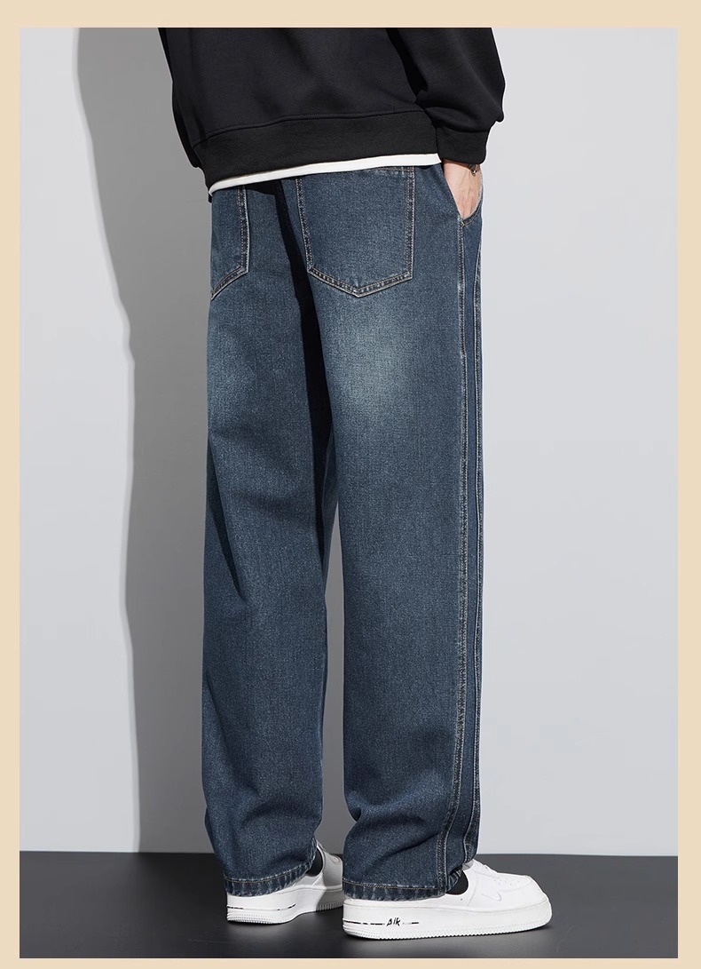 Woodpecker Brand Autumn and Winter Loose Straight-Leg Fleece-Lined Thick Jeans for Men, American High Street Workwear Casual Long Pants