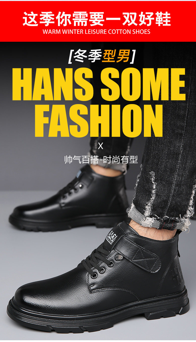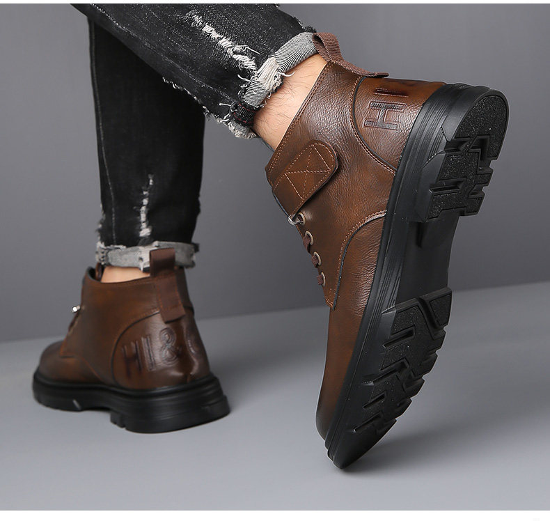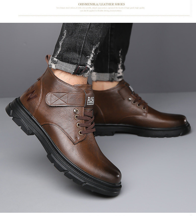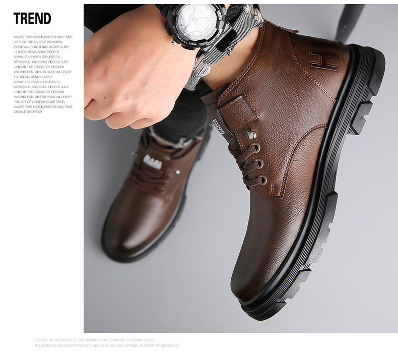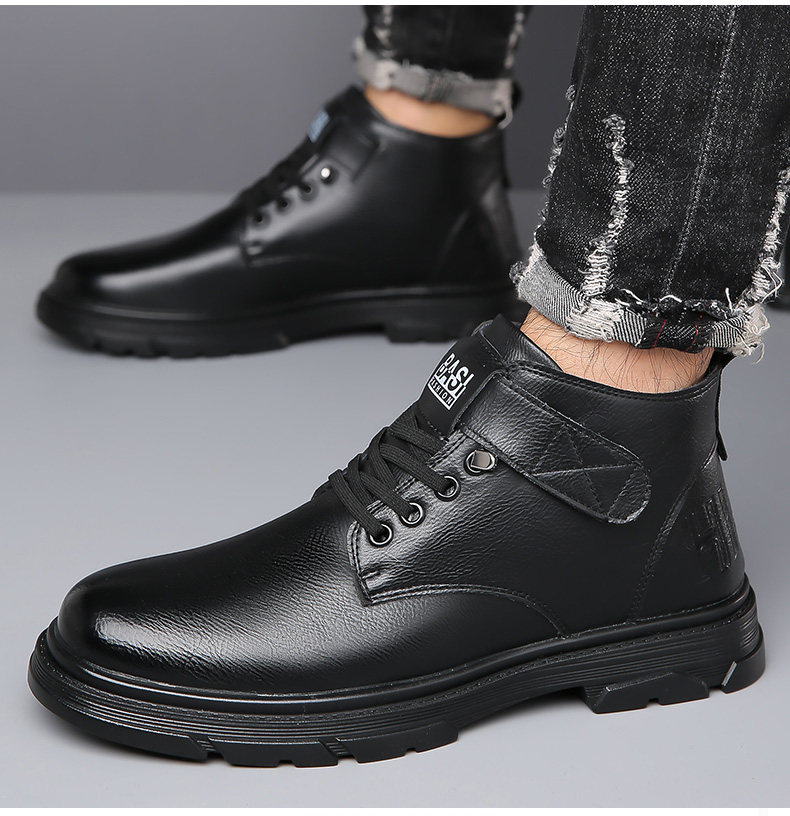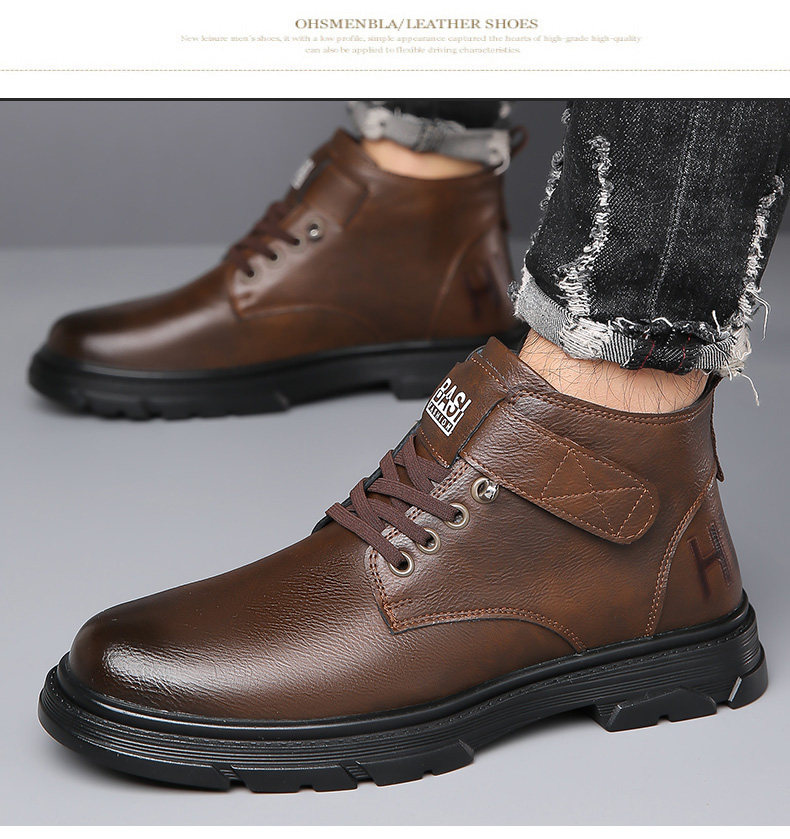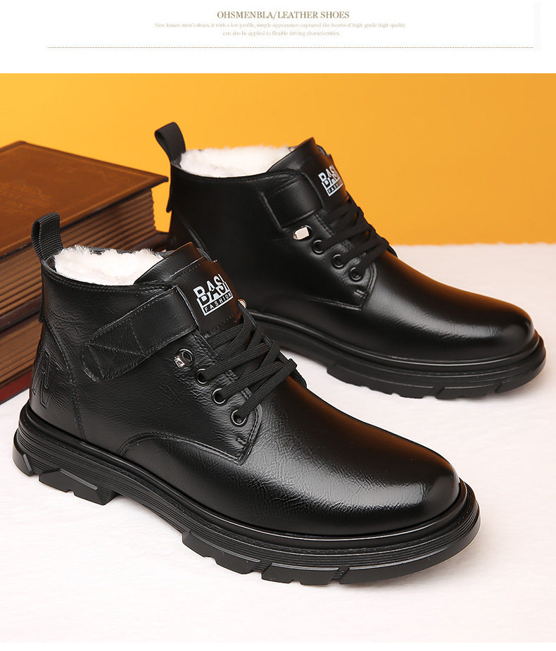 Martin Boots for Men, New Winter Style, Fleece-Lined, Warm, Genuine Leather, Wool, Men's Casual High-Top Cotton Leather Boots, British Work Boots