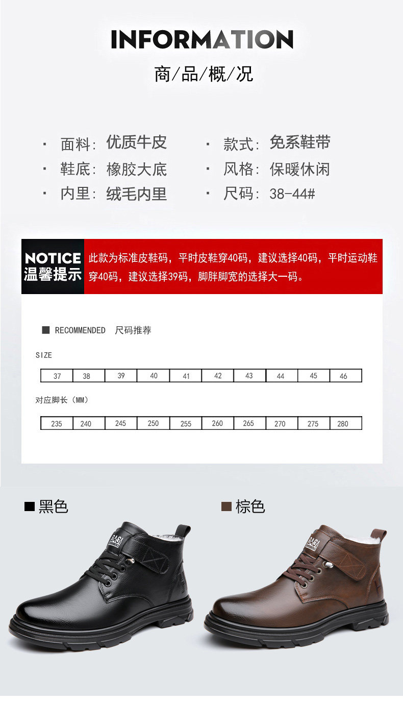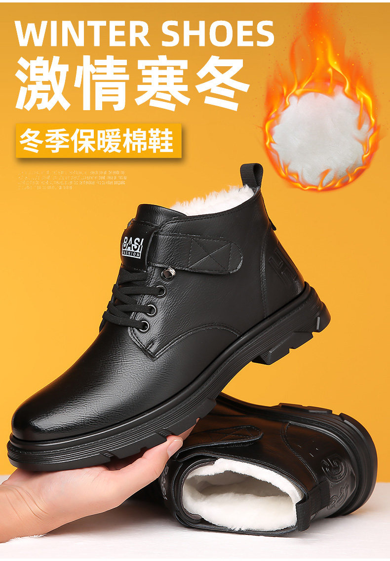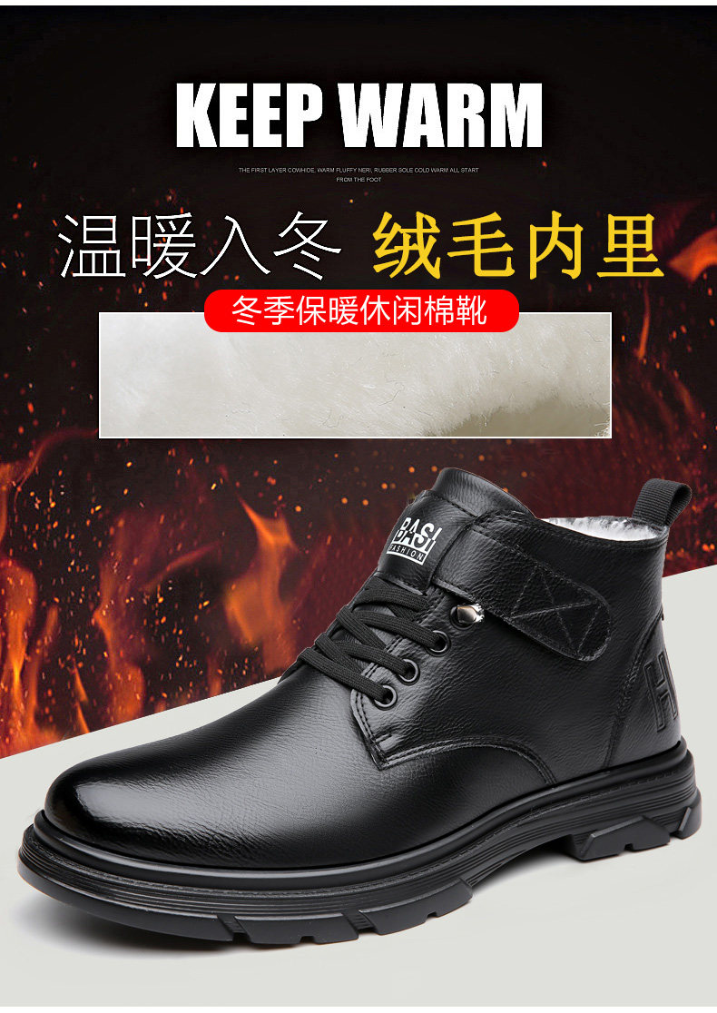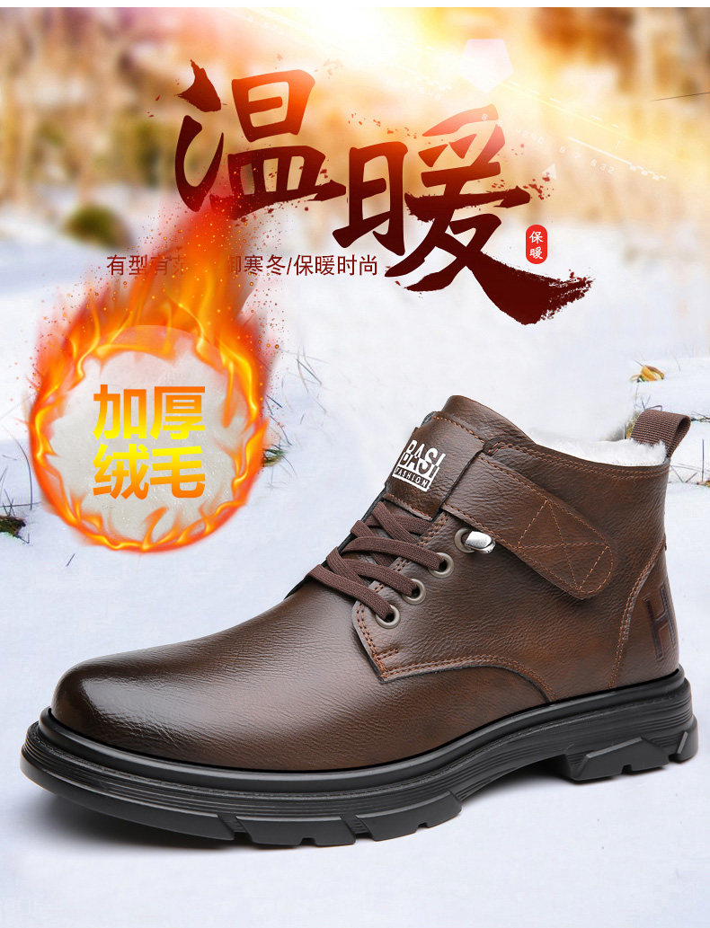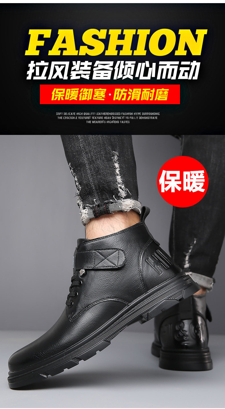 Martin Boots for Men, New Winter Style, Fleece-Lined, Warm, Genuine Leather, Wool, Men's Casual High-Top Cotton Leather Boots, British Work Boots
