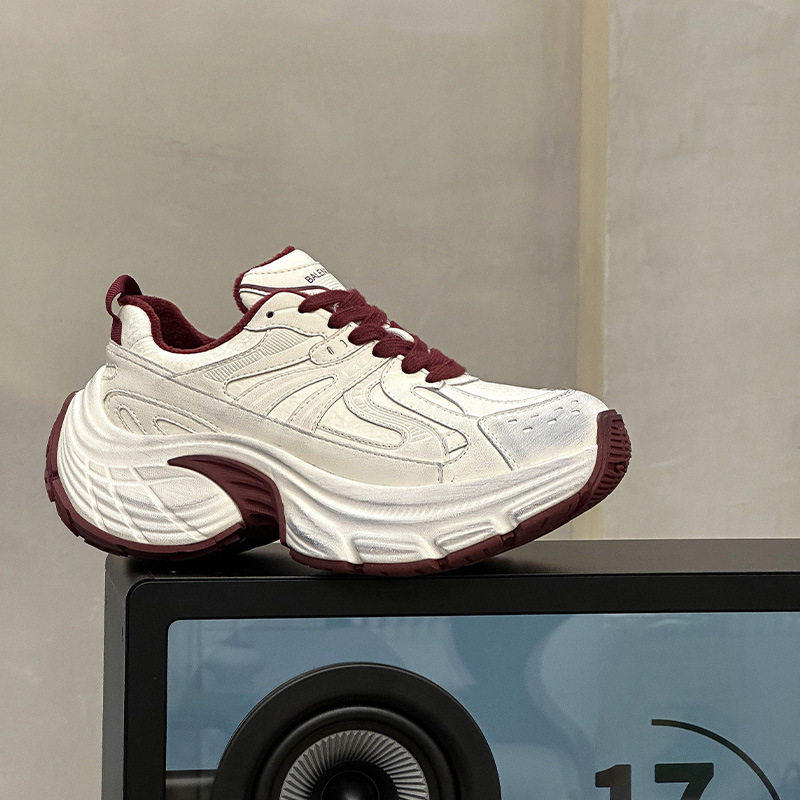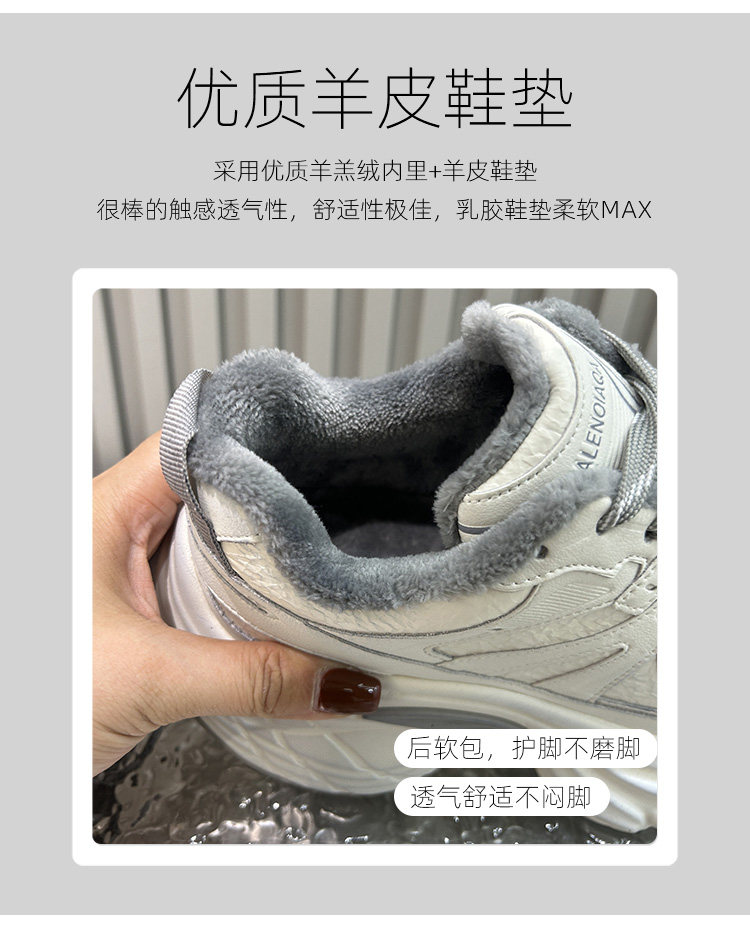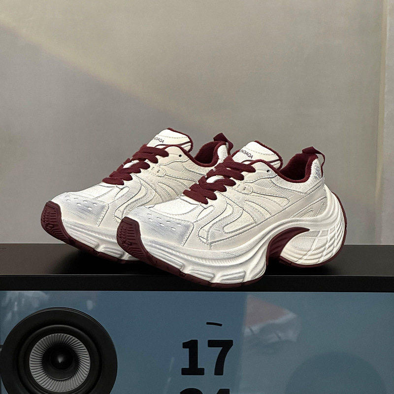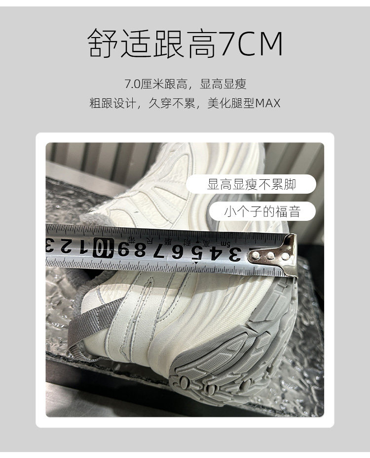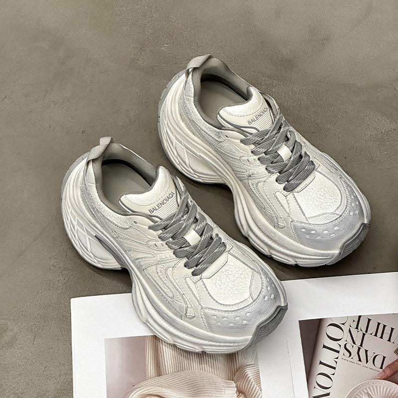 Hong Kong Style Small-Sized Thick-Soled Height-Increasing Fleece-Lined Dad Shoes, Genuine Leather Women's Autumn and Winter Retro Distressed Versatile Casual Sneakers