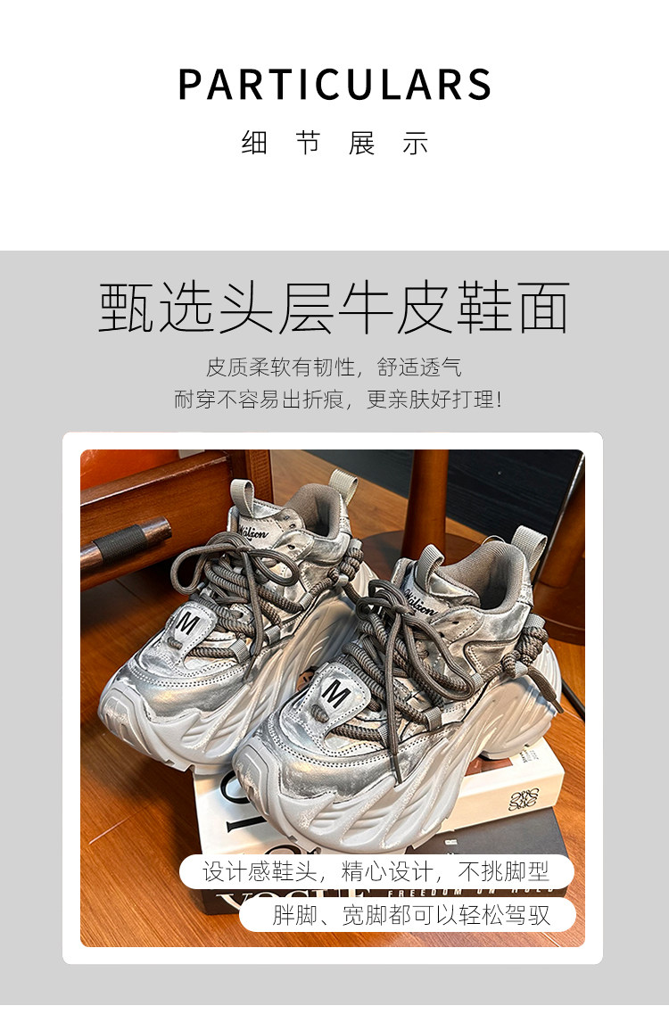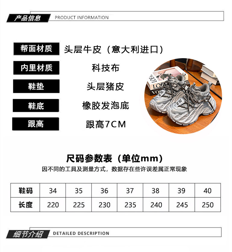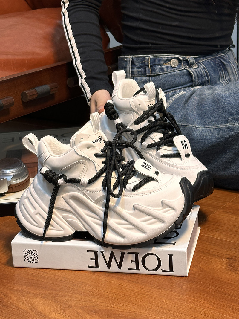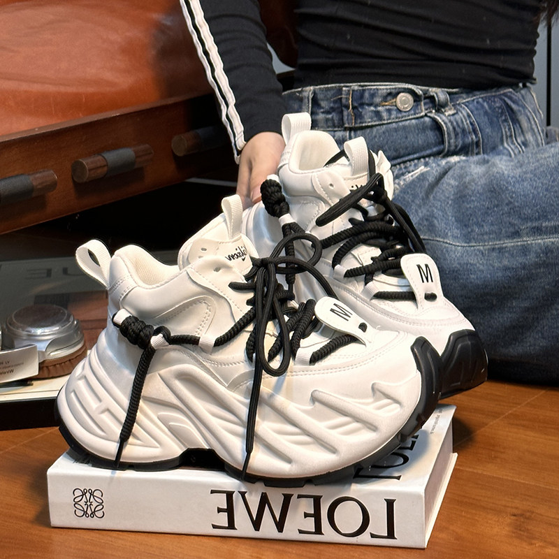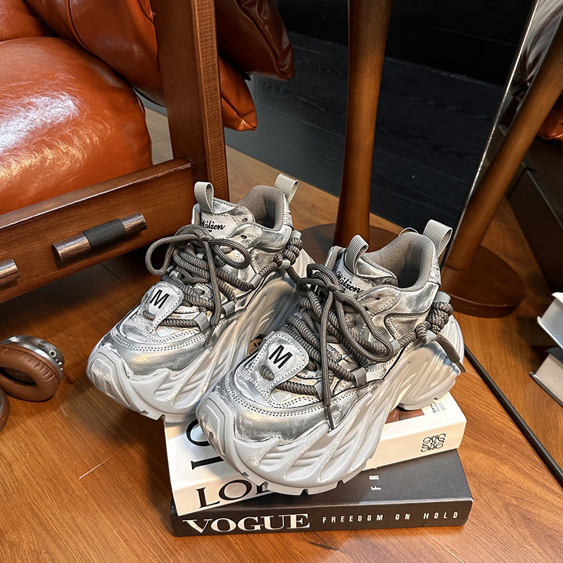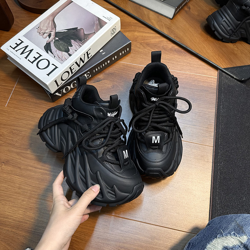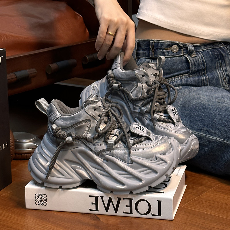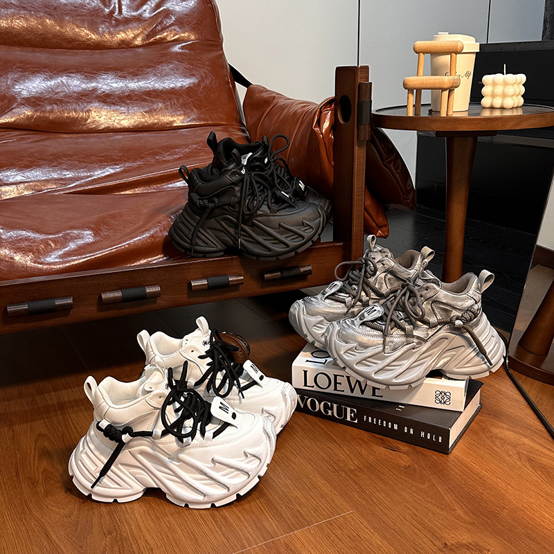 Hong Kong Genuine Leather Small-Sized Thick-Soled Height-Increasing Fashionable Distressed Dad Shoes for Women 2025 Spring and Autumn Versatile Casual Sneakers