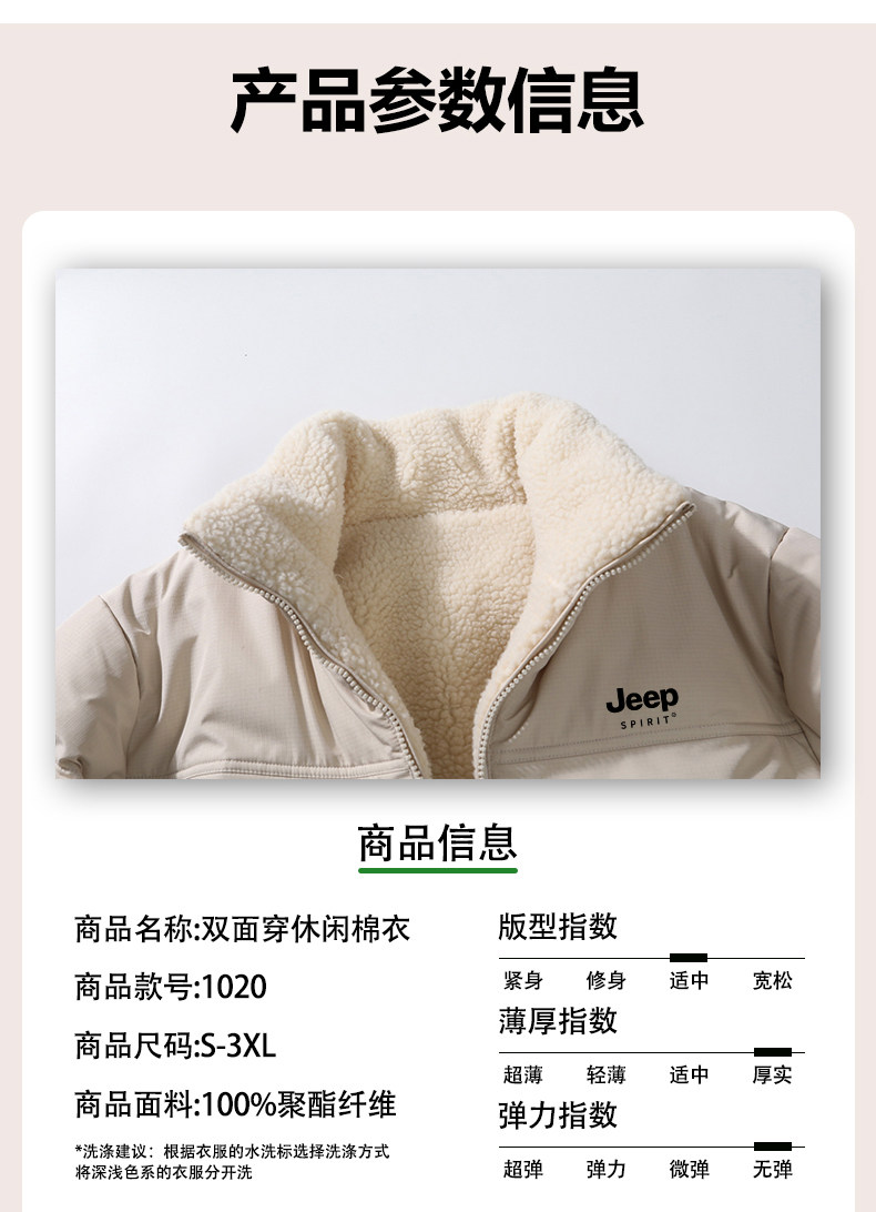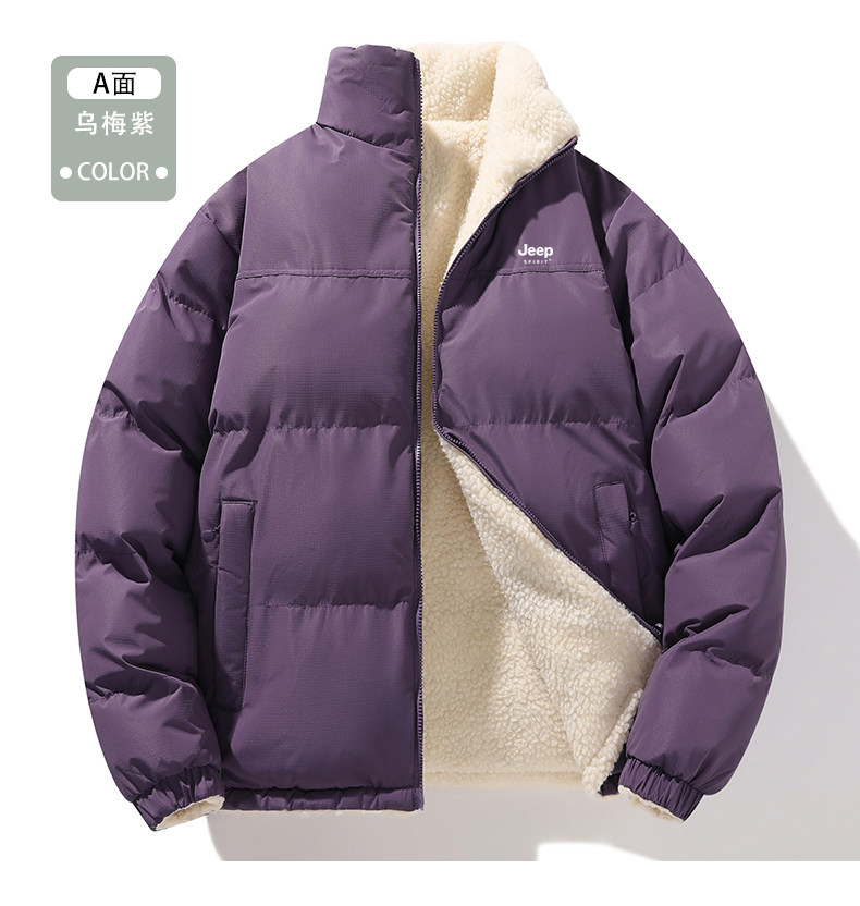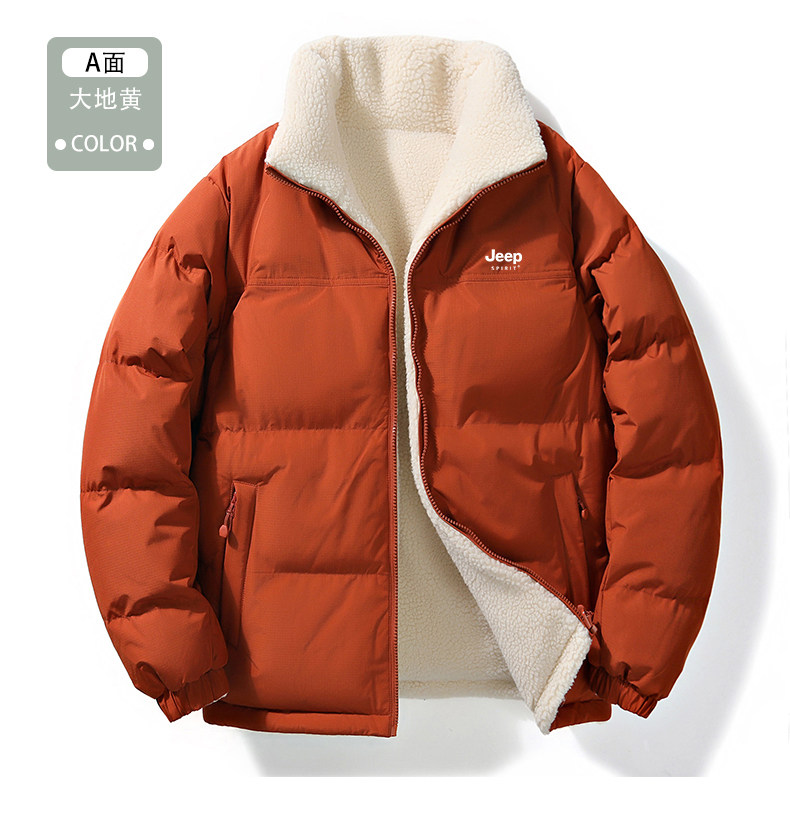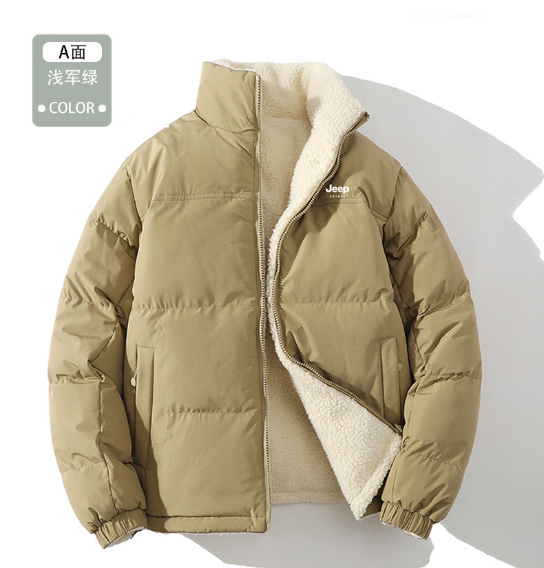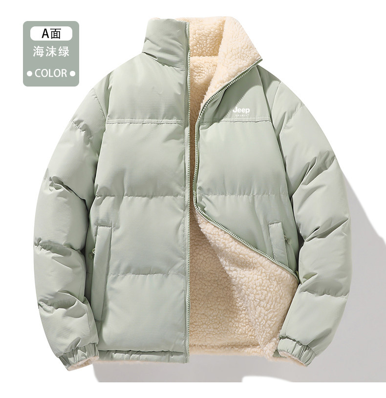 Jeep Reversible Cotton Jacket for Women, Winter 2024 New Style, Super Nice-Looking, Fleece-Lined, Thickened Lamb Wool Cotton Coat