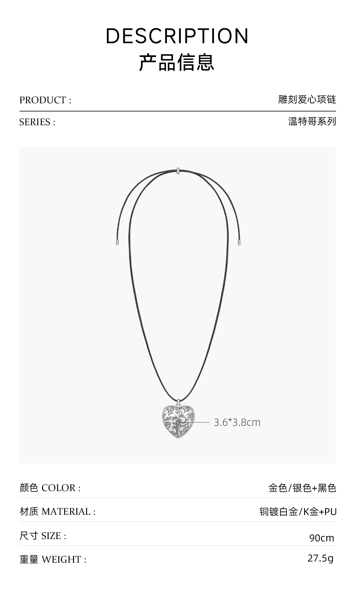 [Same Style as Wu Xin] Sanheng Sun Hunter Original Engraved Heart Necklace Leather Cord Collarbone Chain Sweater Chain for Women