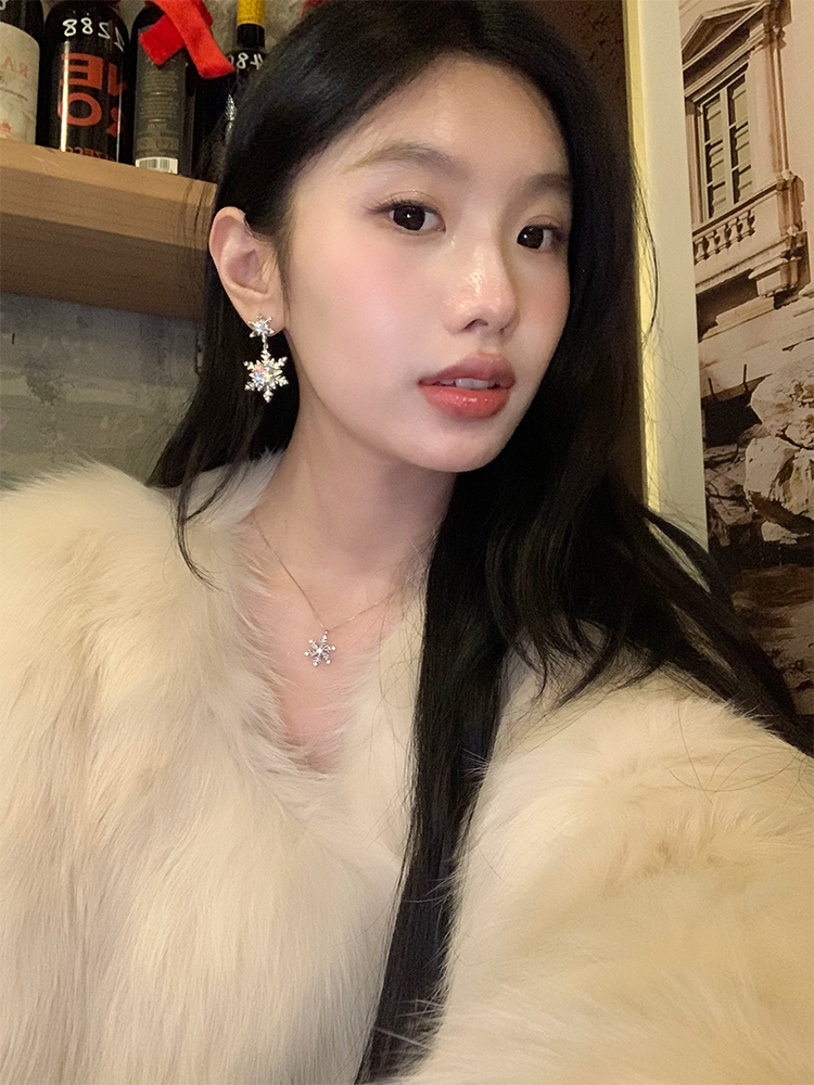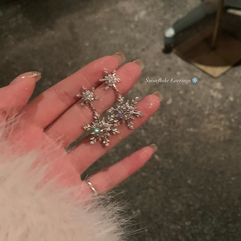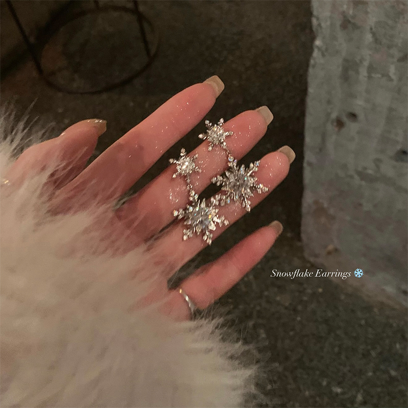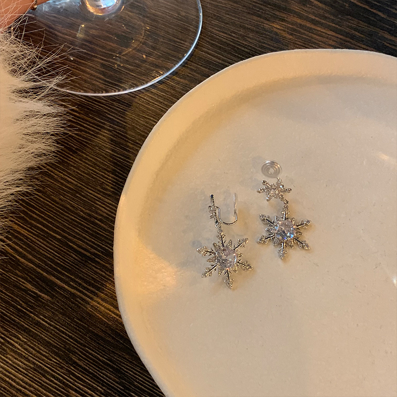 Flash Zircon Double Snowflake Earrings for Women, Exquisite and Compact Ear Studs, Light Luxury, High-End Feel, Unique and Beautiful Earrings, Non-Pierced Ear Clips