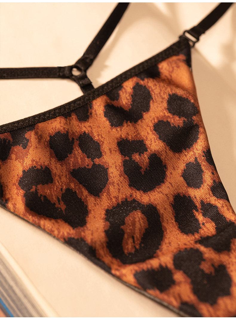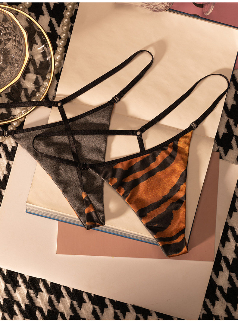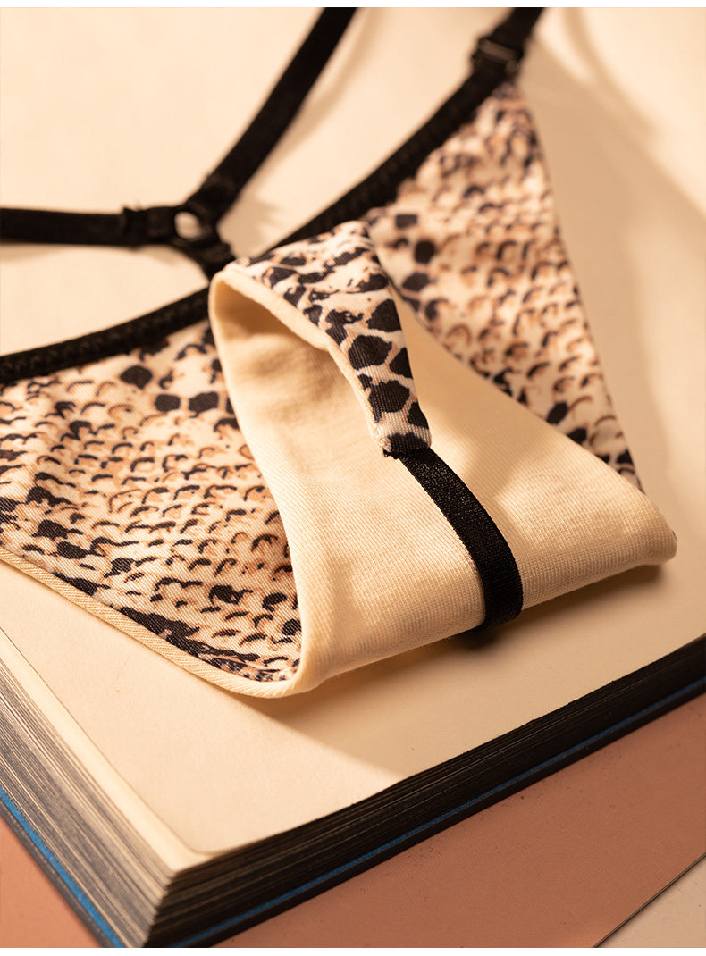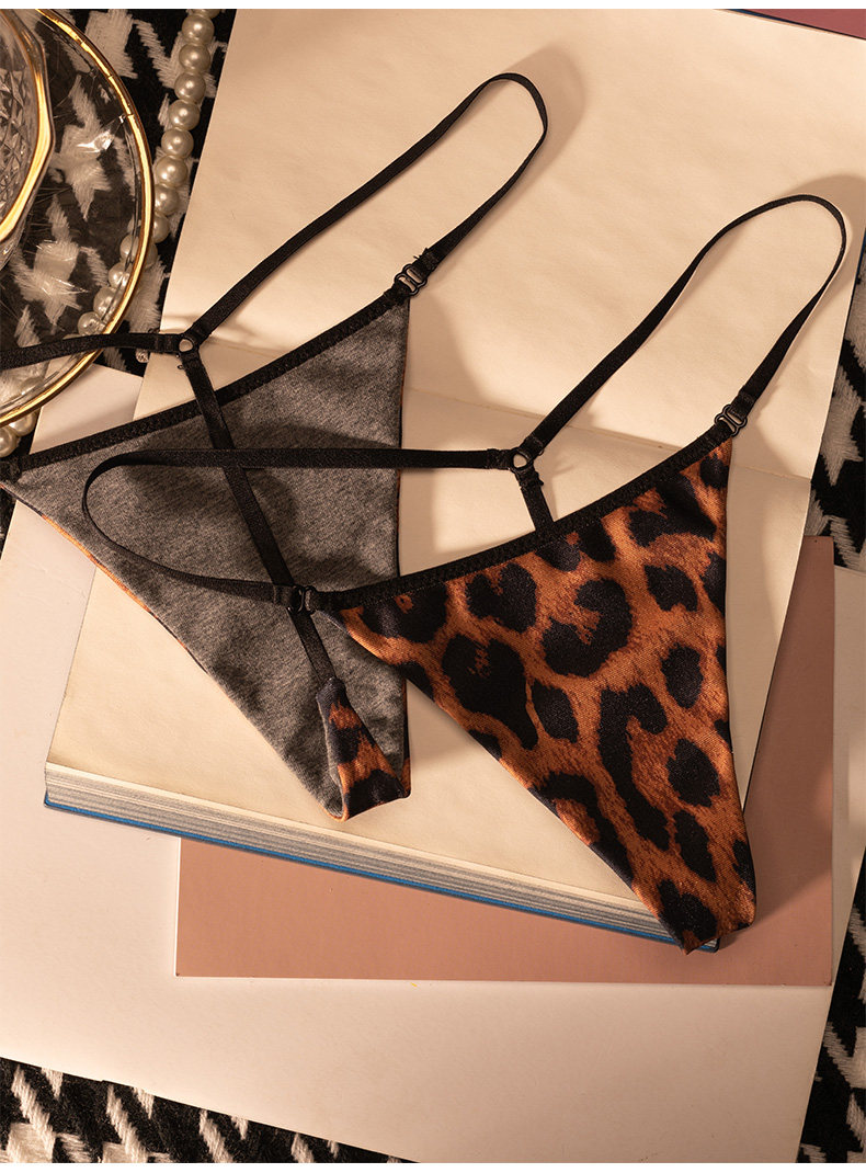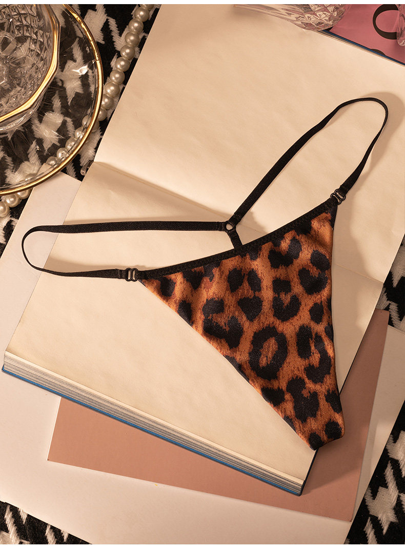2024 Autumn and Winter New Leopard Print Thong Sexy Women's Underwear European and American Seamless One-String Thin Strap T-Pants Y Large Size