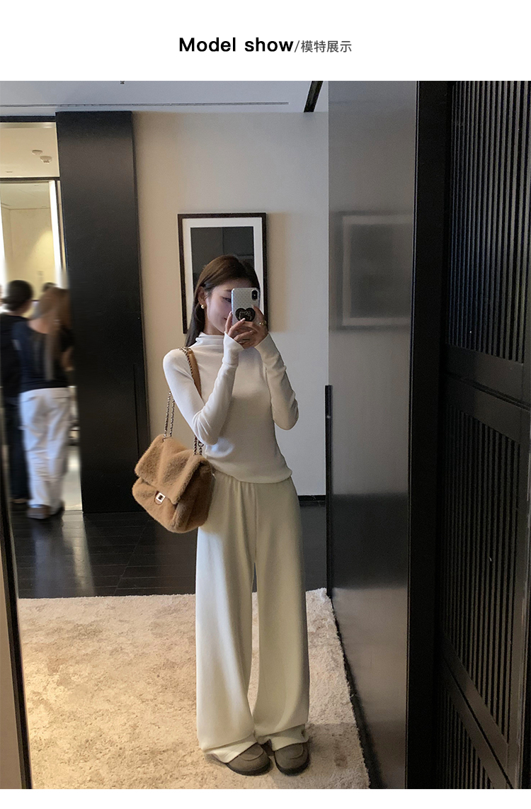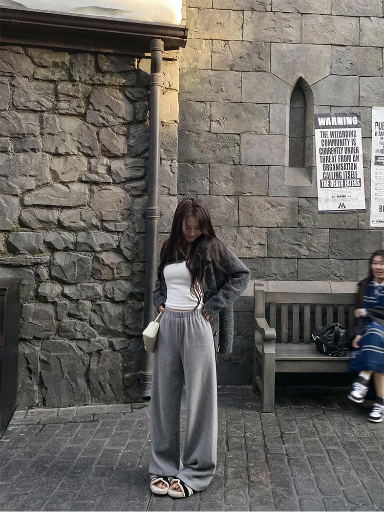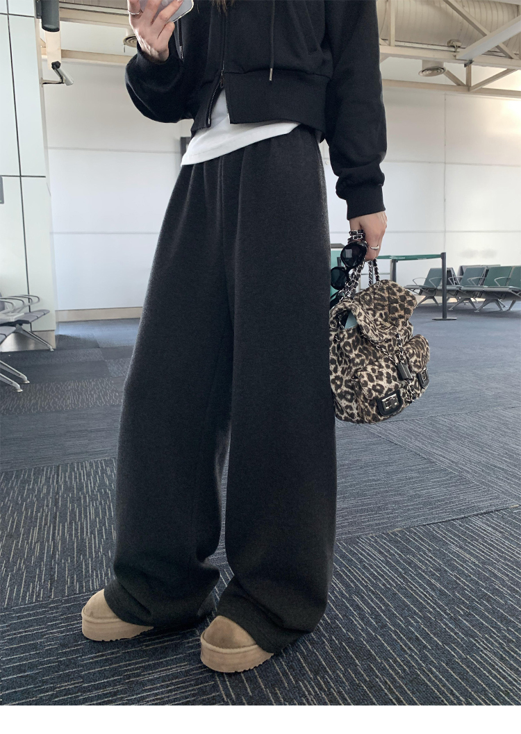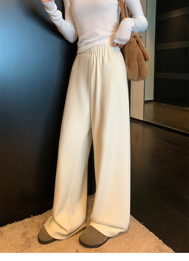 Pusumede Soft Casual Pants for Women, Autumn and Winter Fleece-Lined Pants, Loose Straight-Leg Wide-Leg Pants, Versatile Floor-Length Pants