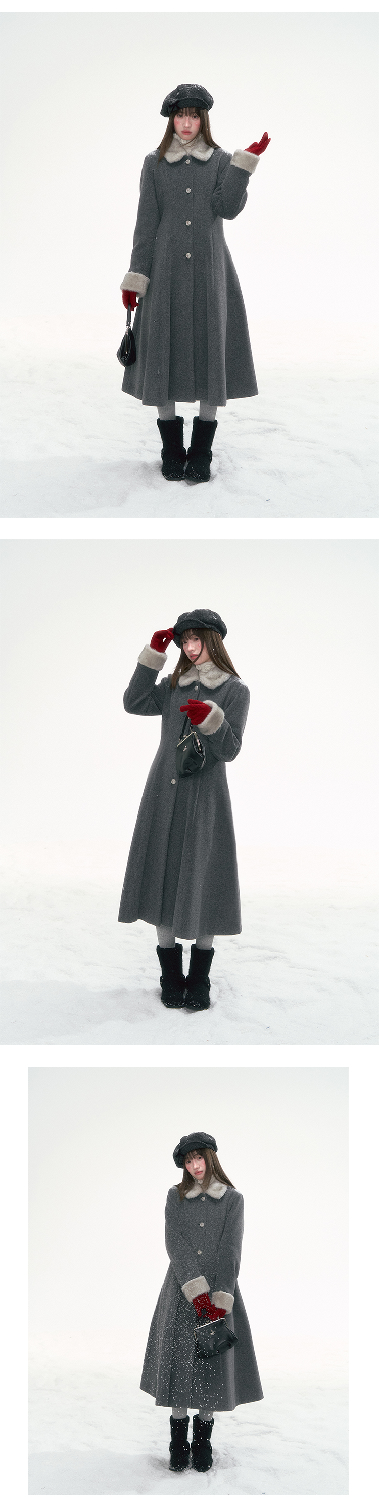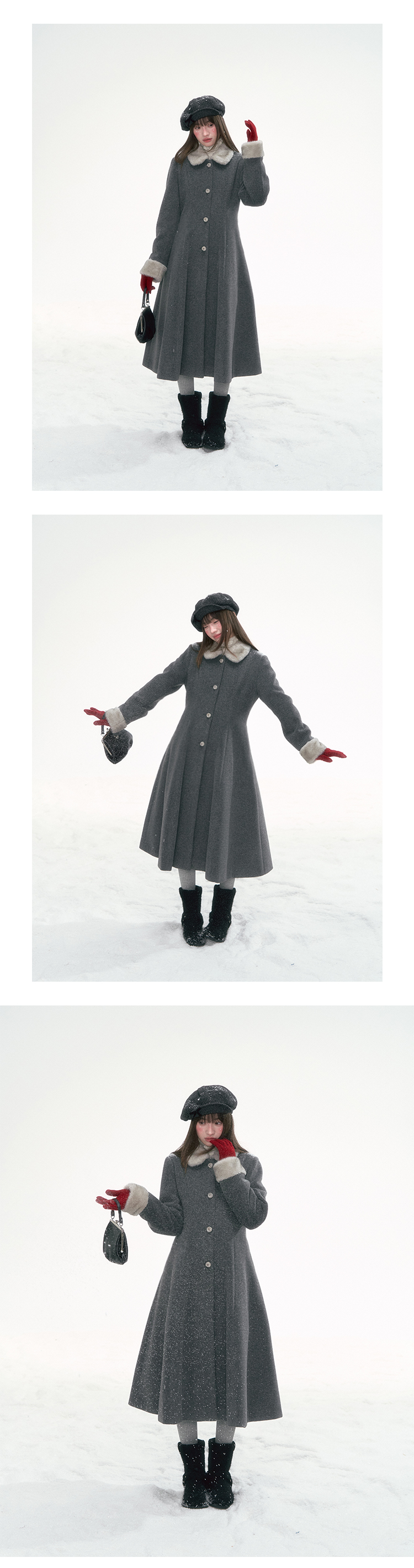 Canned Goods Store'Moscow Haze' Rose Button Waist-Tightening Elegant Wool Gray Tweed Coat