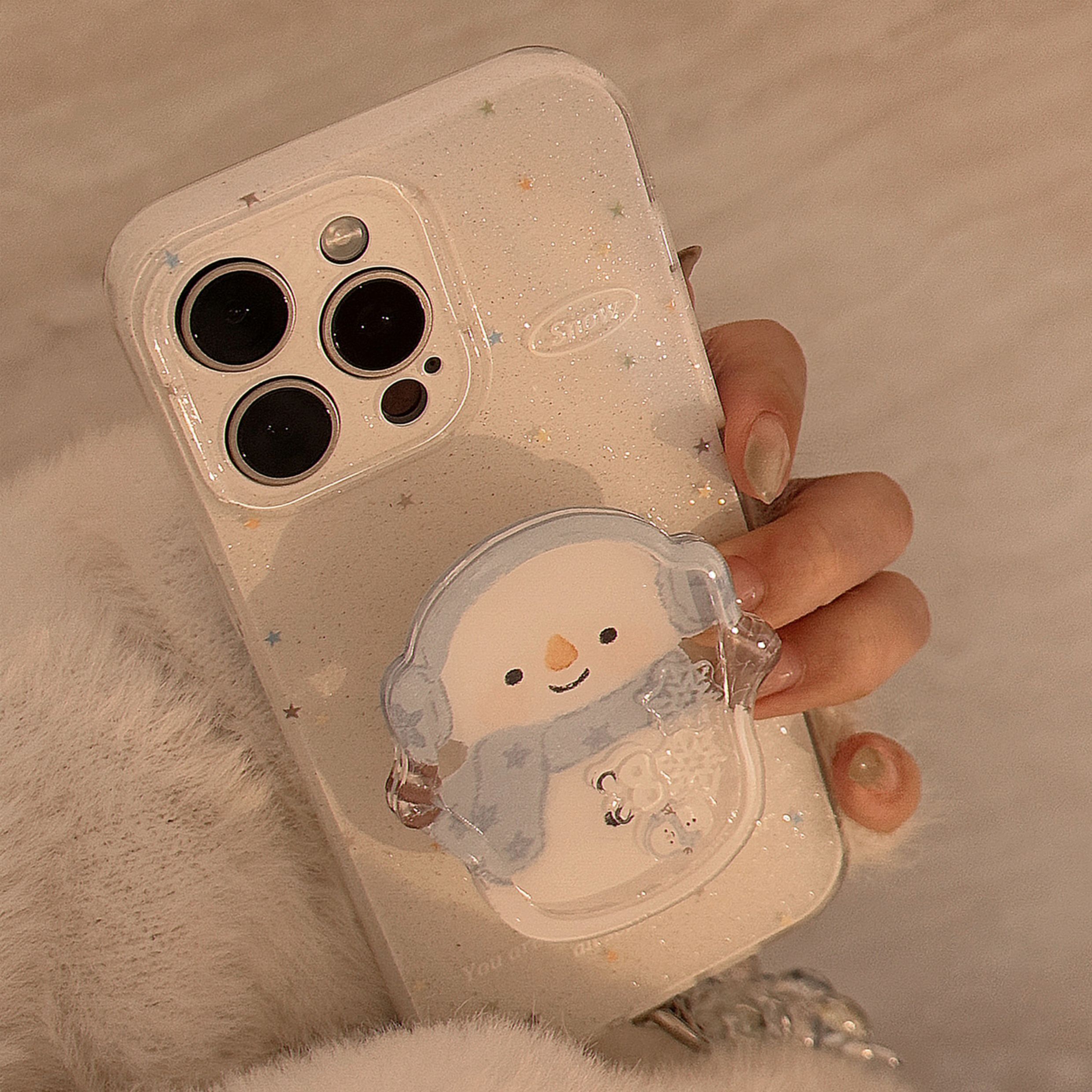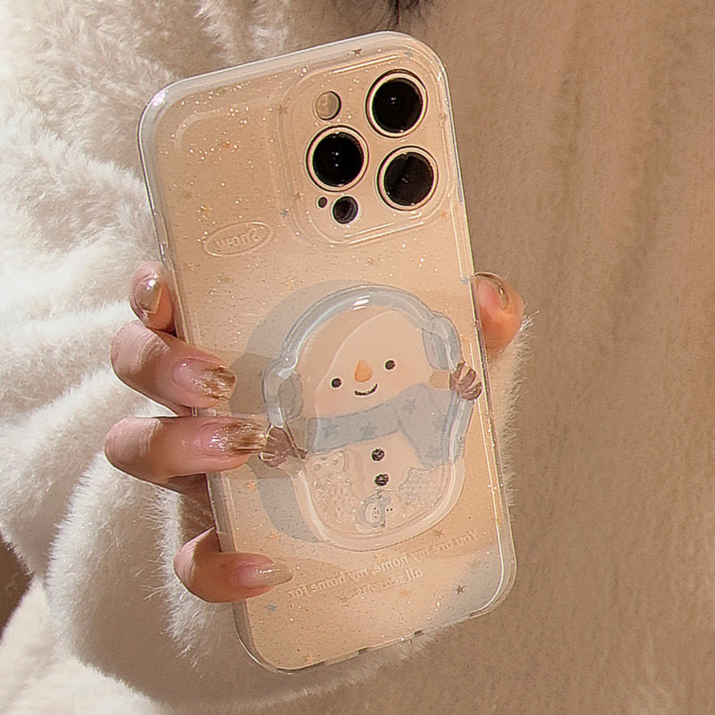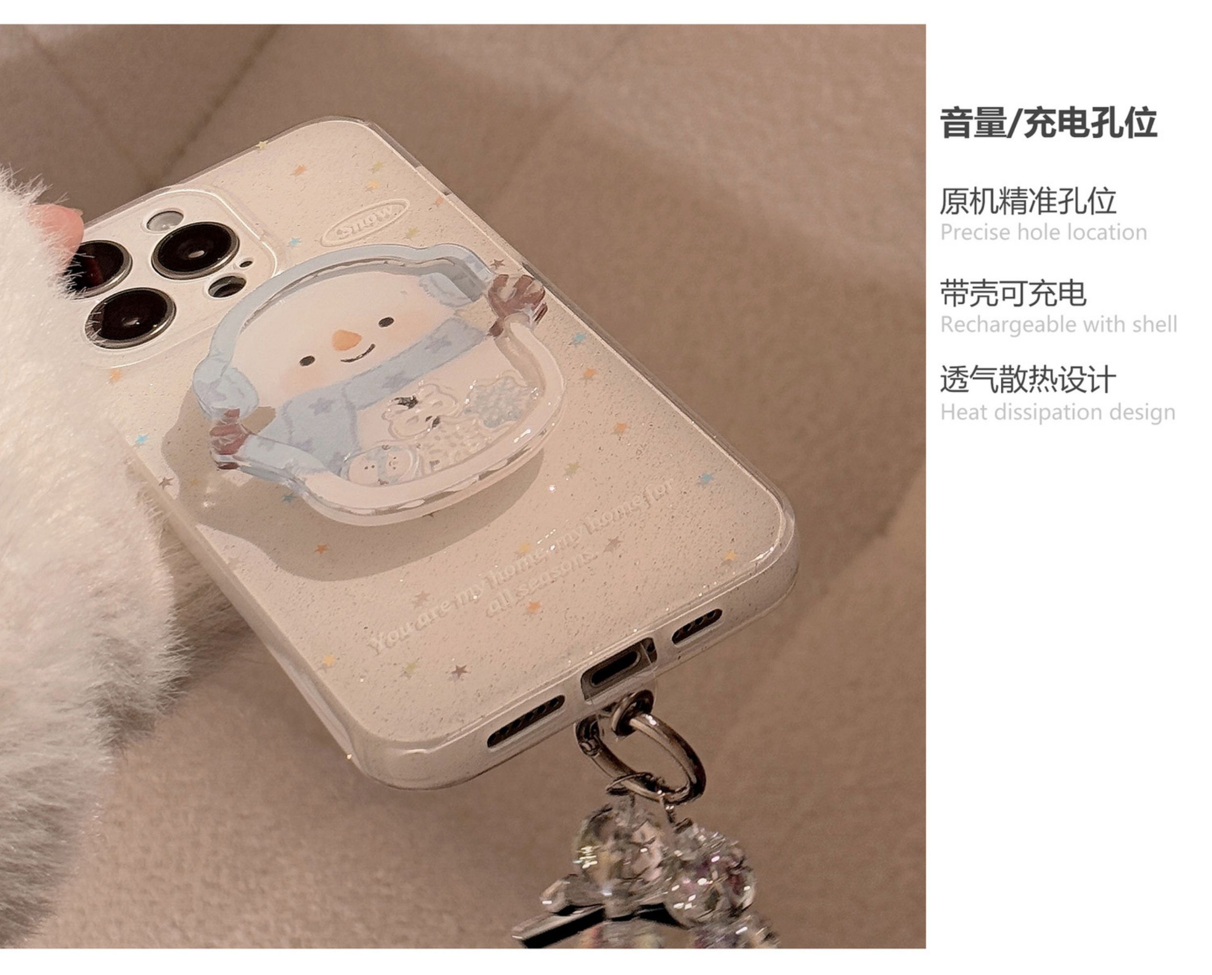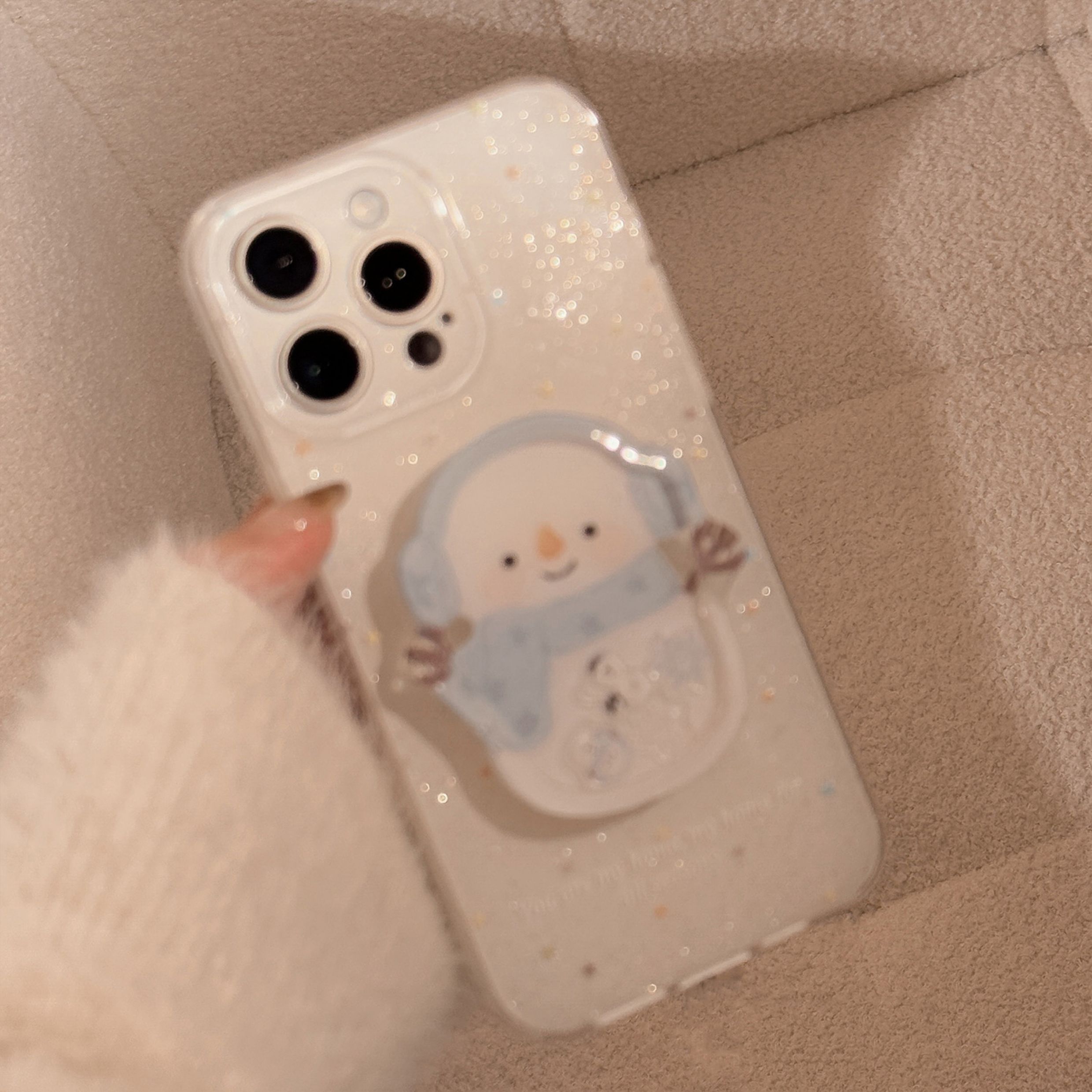 Cute Snowman Shaker Stand Suitable for iPhone 17 Pro Max, Apple 16 Phone Case, 15 Glitter Chain Soft Case