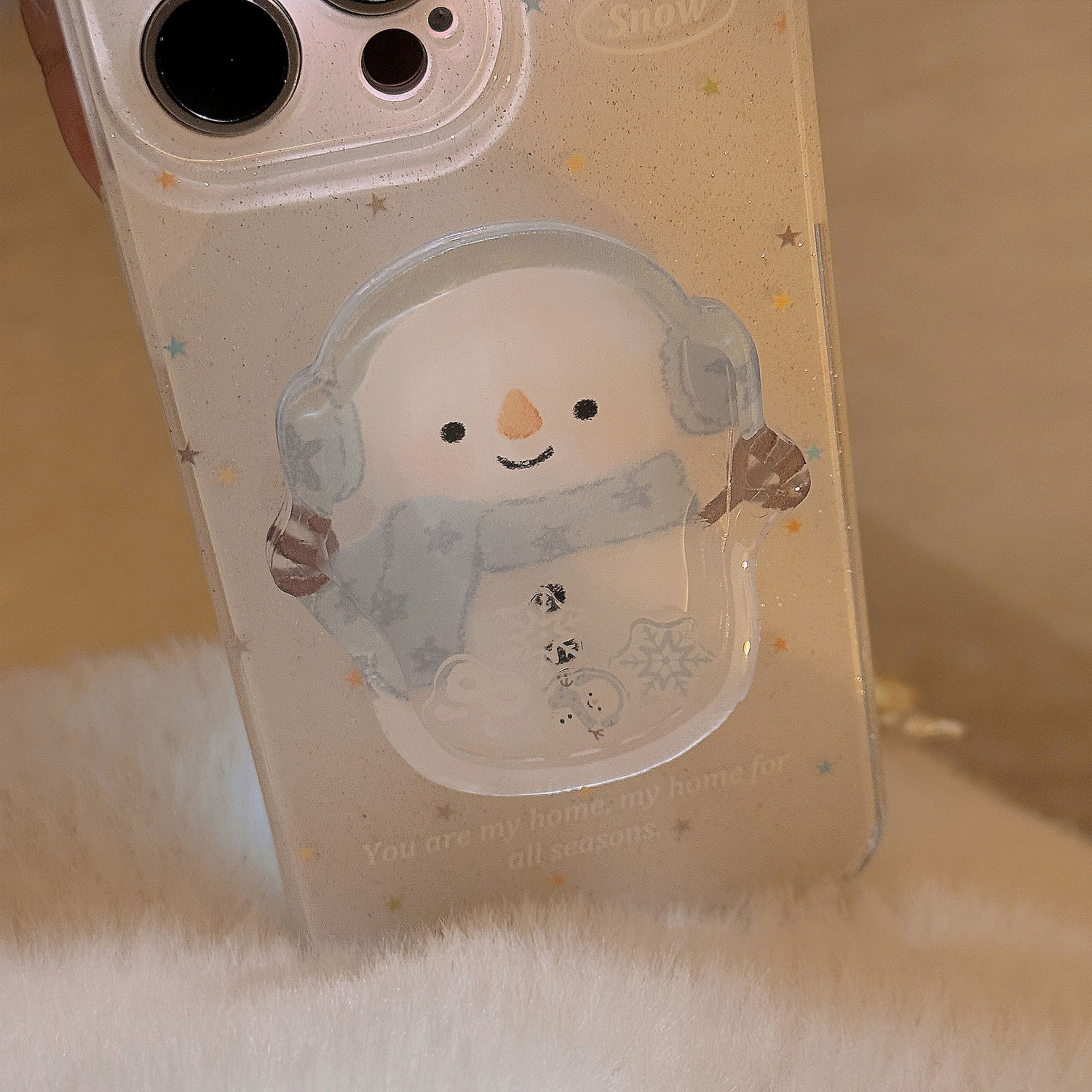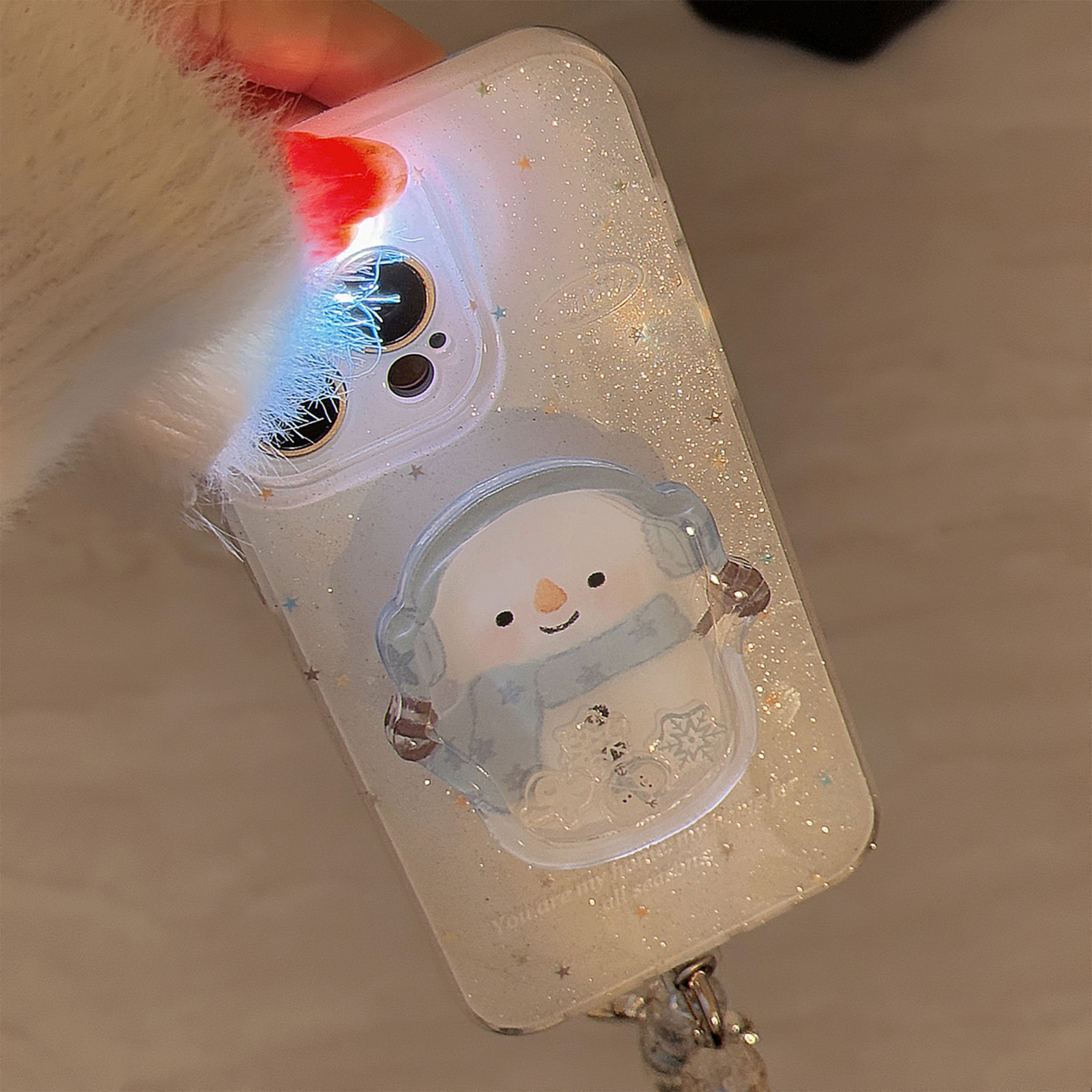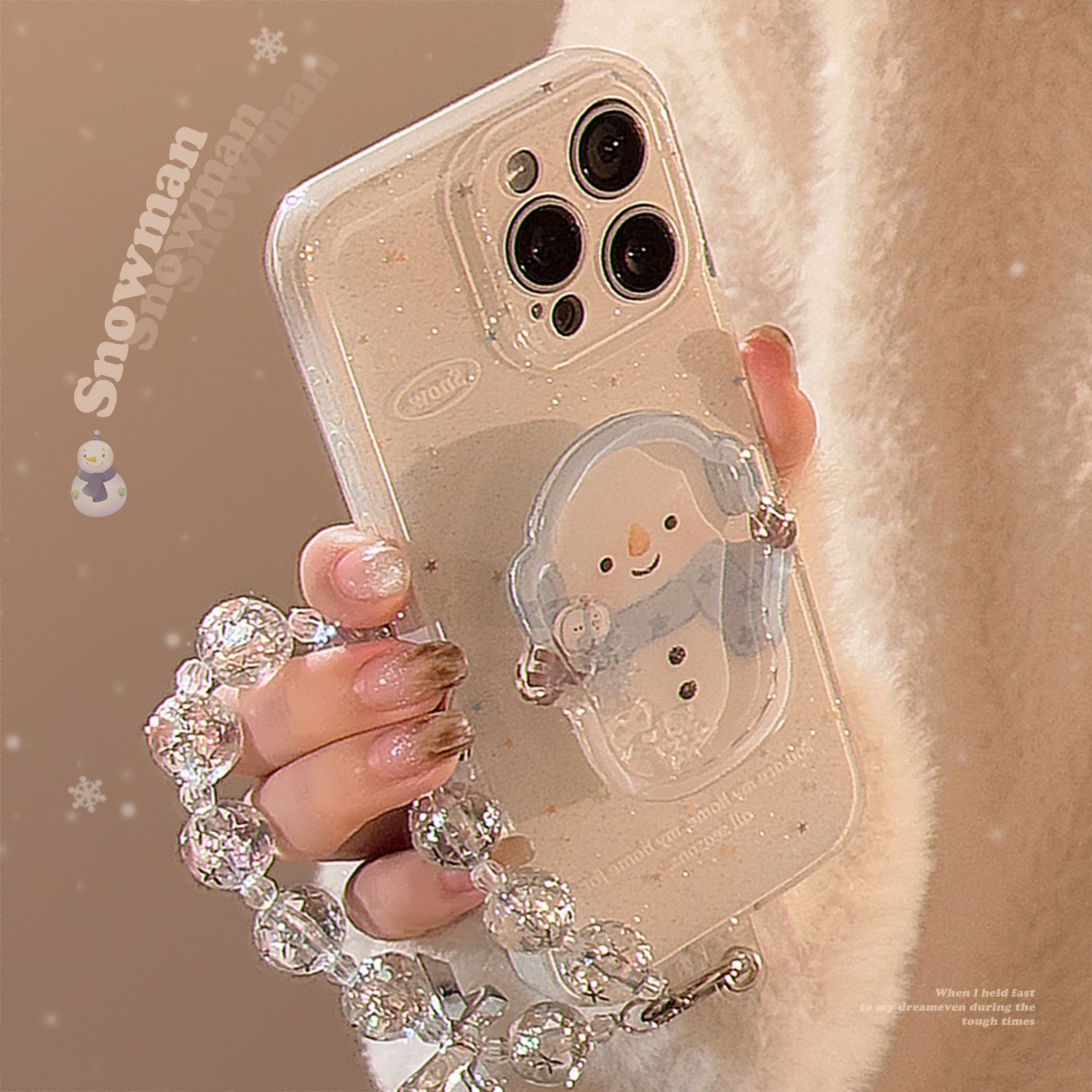 Cute Snowman Shaker Stand Suitable for iPhone 17 Pro Max, Apple 16 Phone Case, 15 Glitter Chain Soft Case