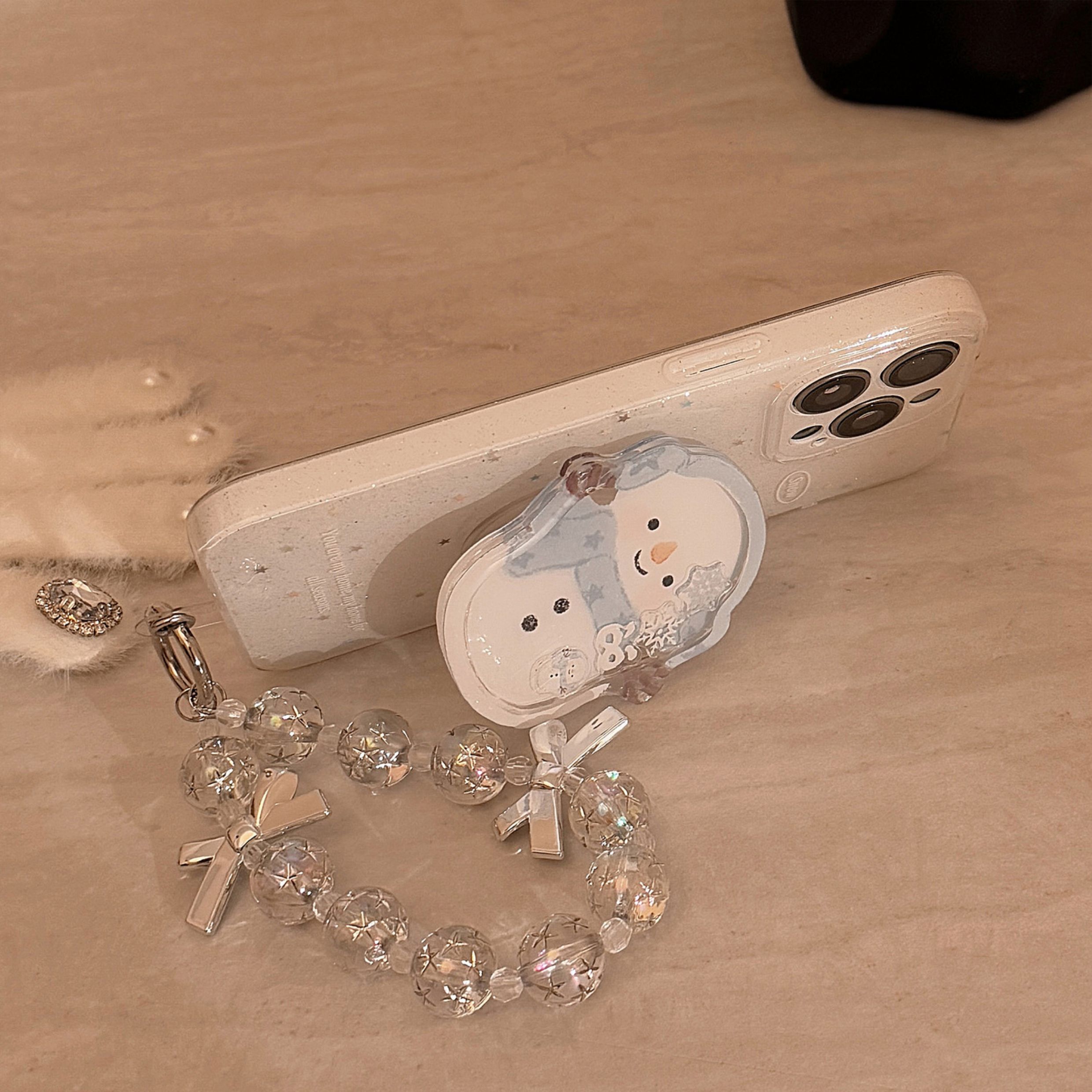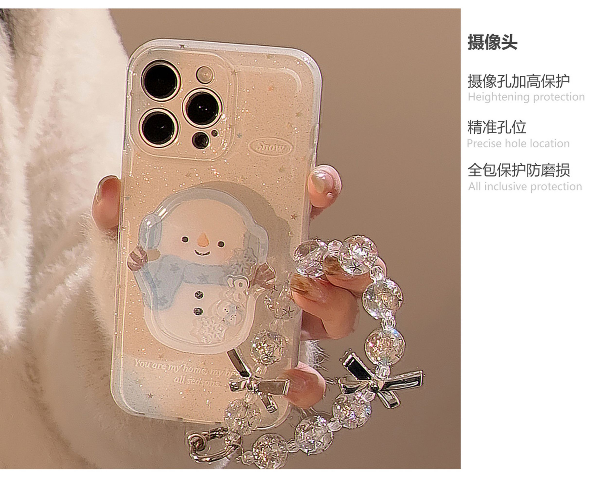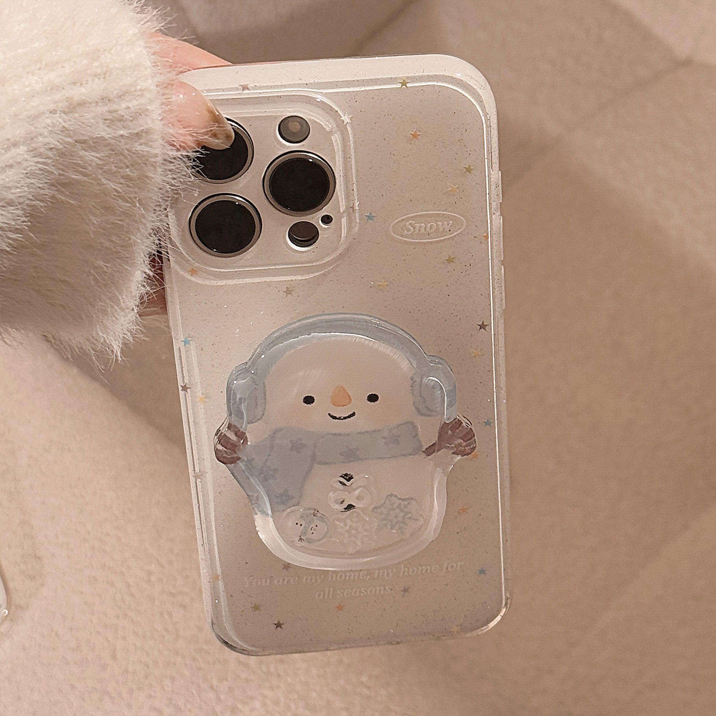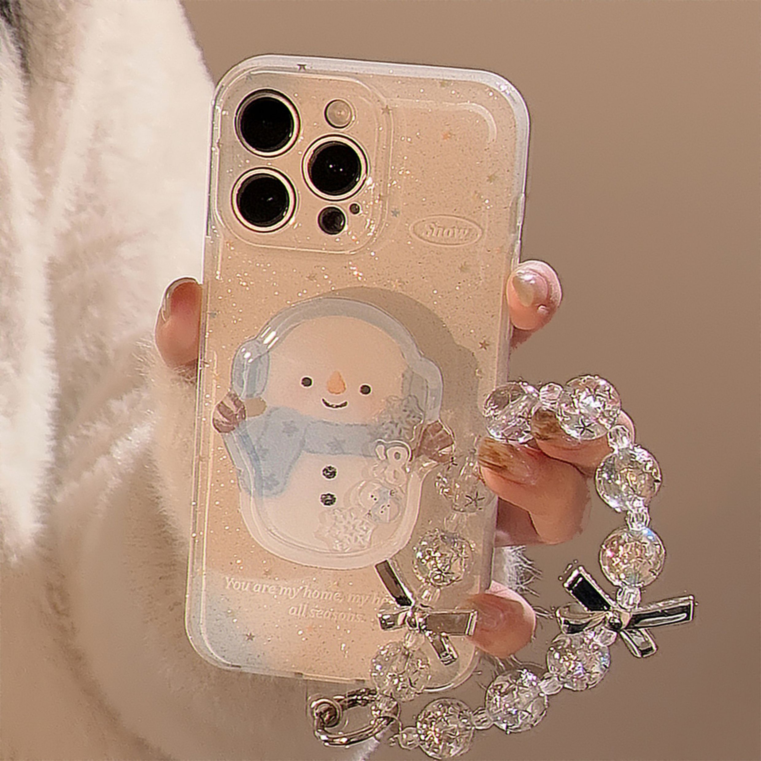 Cute Snowman Shaker Stand Suitable for iPhone 17 Pro Max, Apple 16 Phone Case, 15 Glitter Chain Soft Case