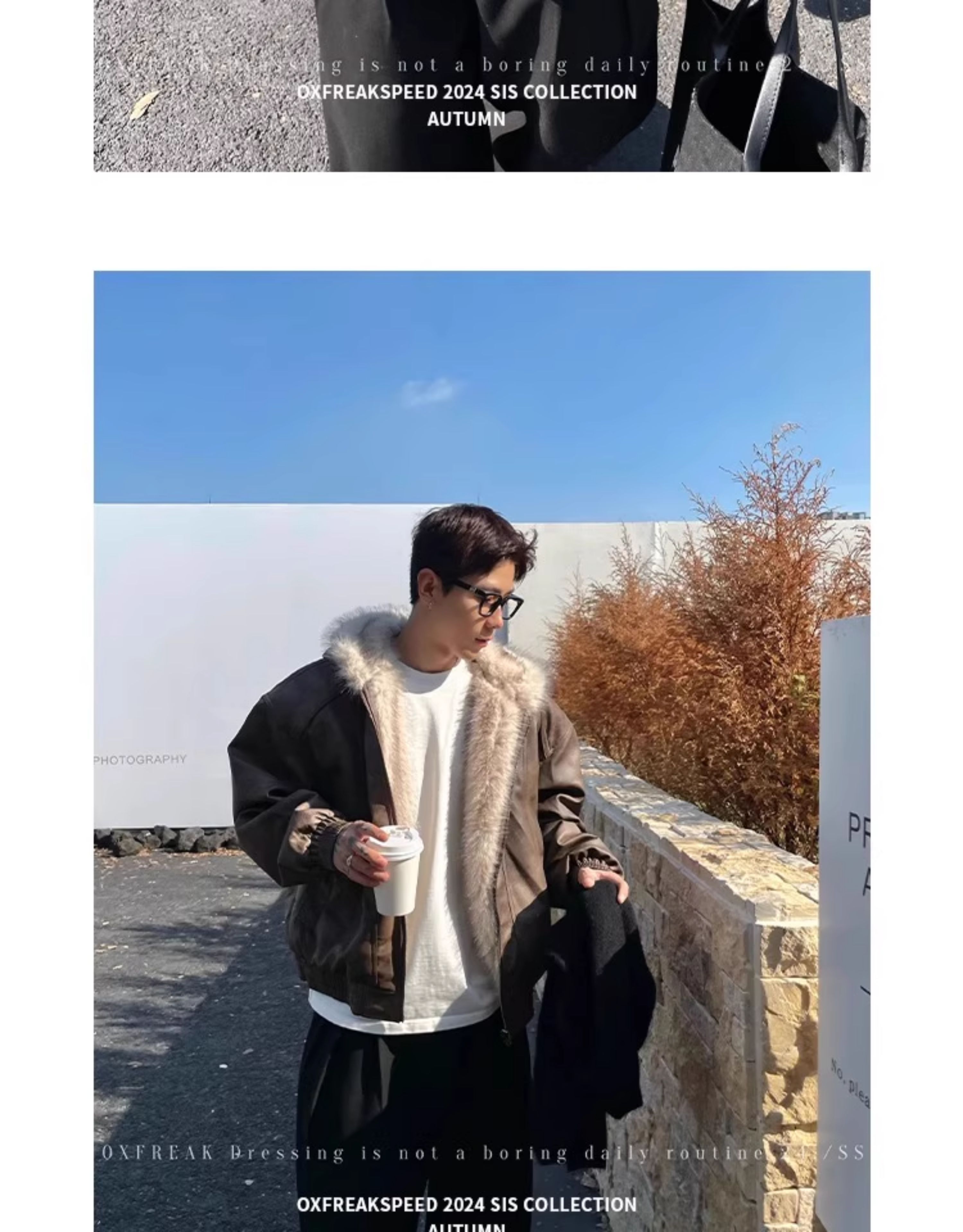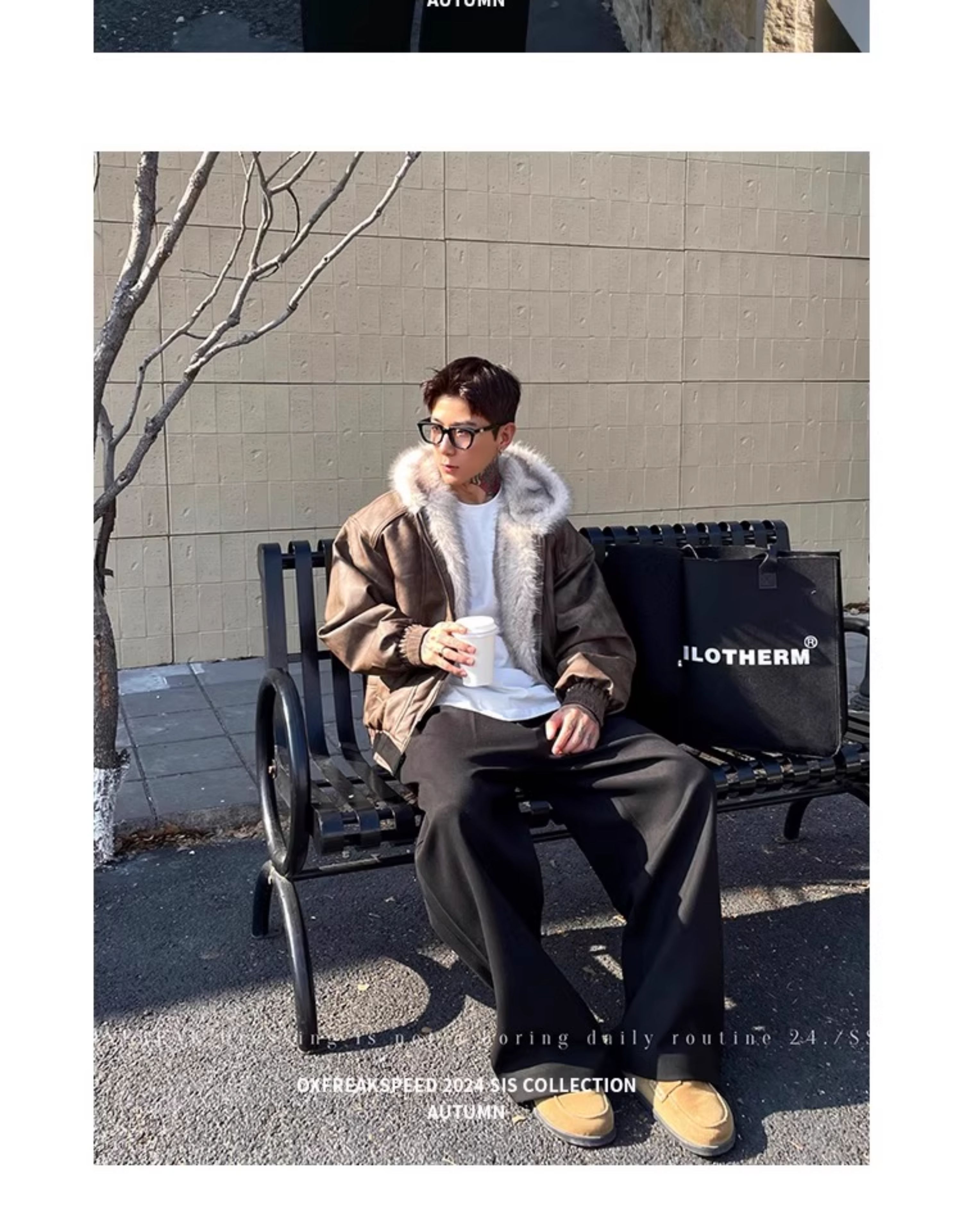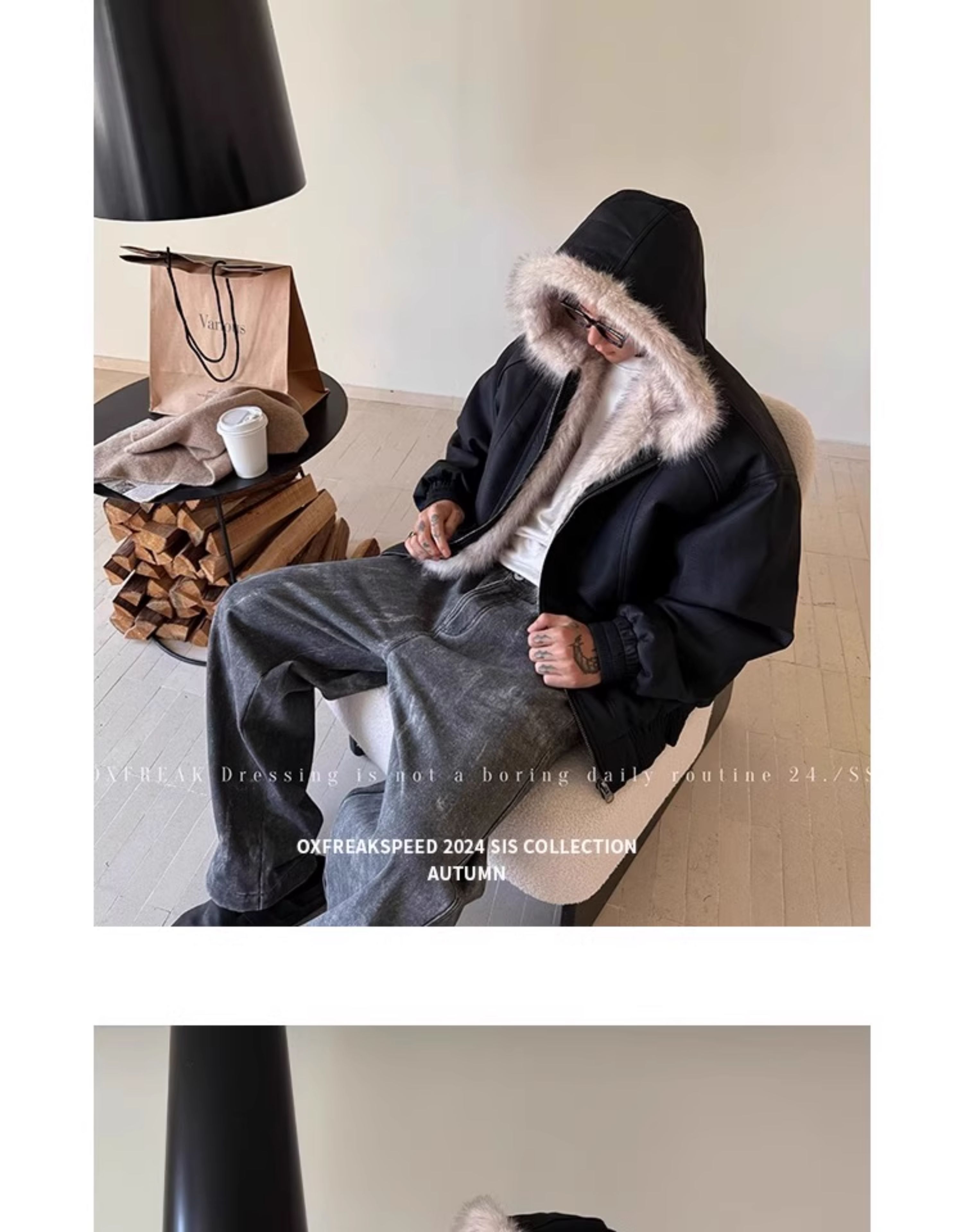 Oxfreak'Distressed Frost Deconstructed Design' Sheepskin Fur Collar Cotton Jacket Men's Winter Fur and Leather Integrated Coat