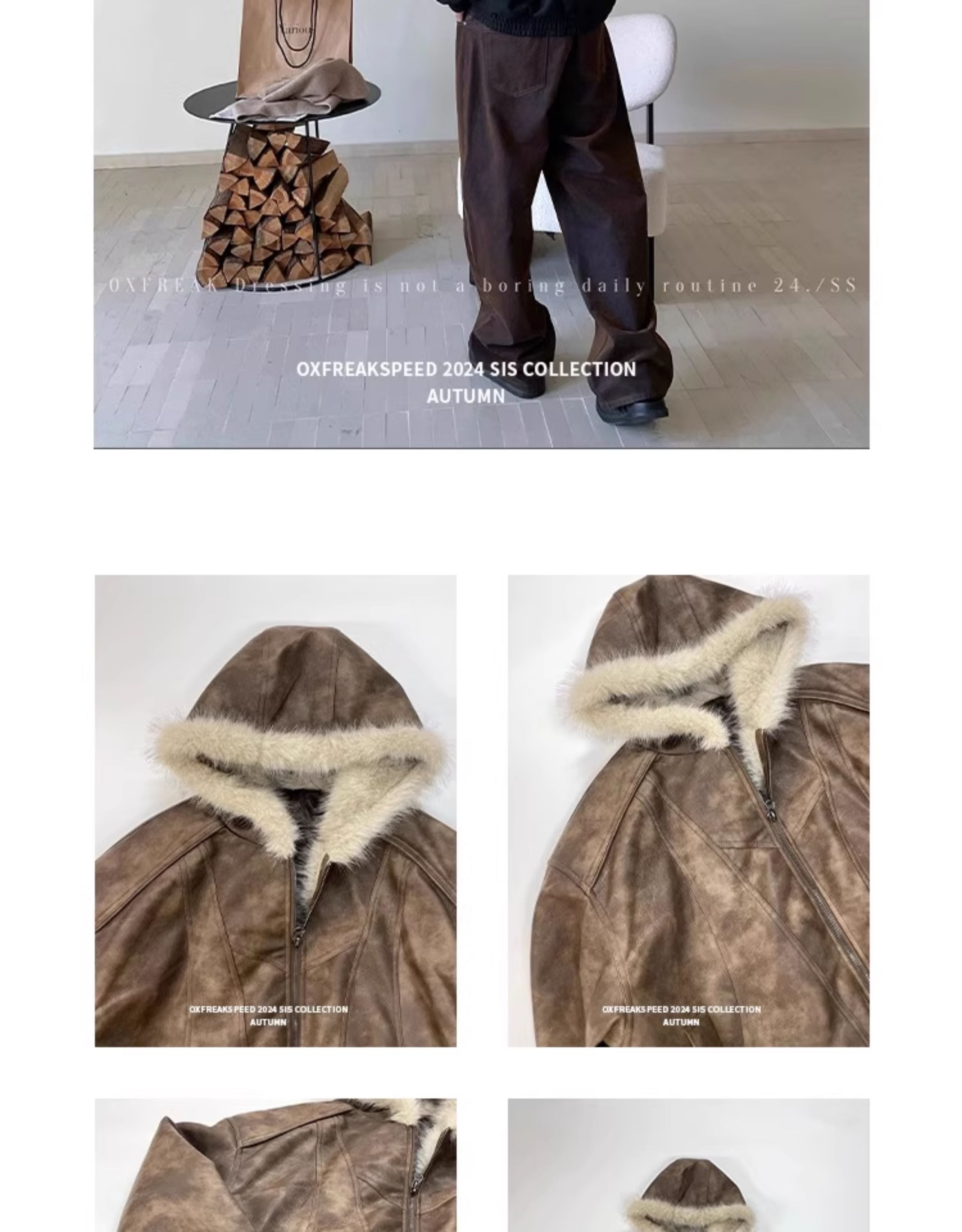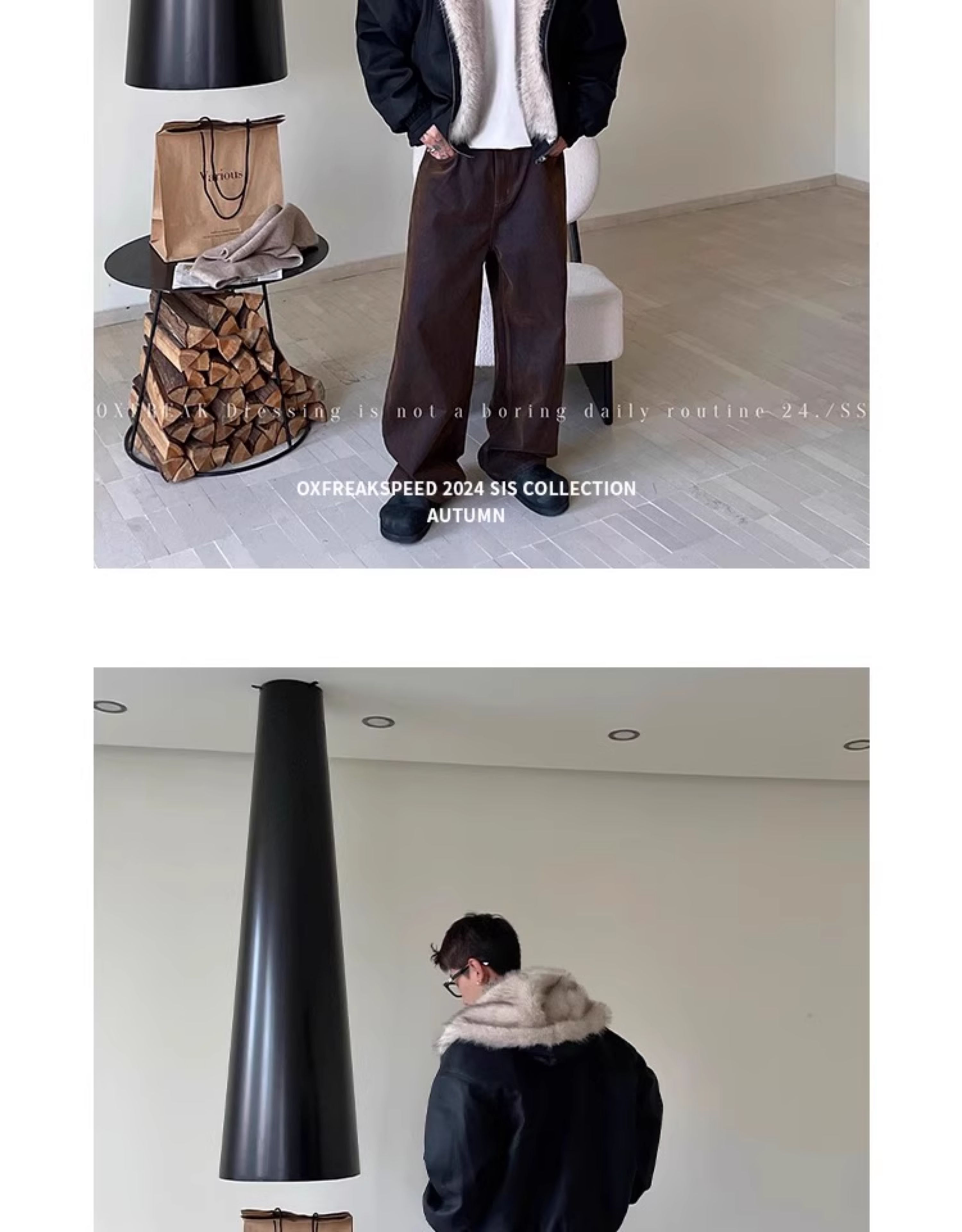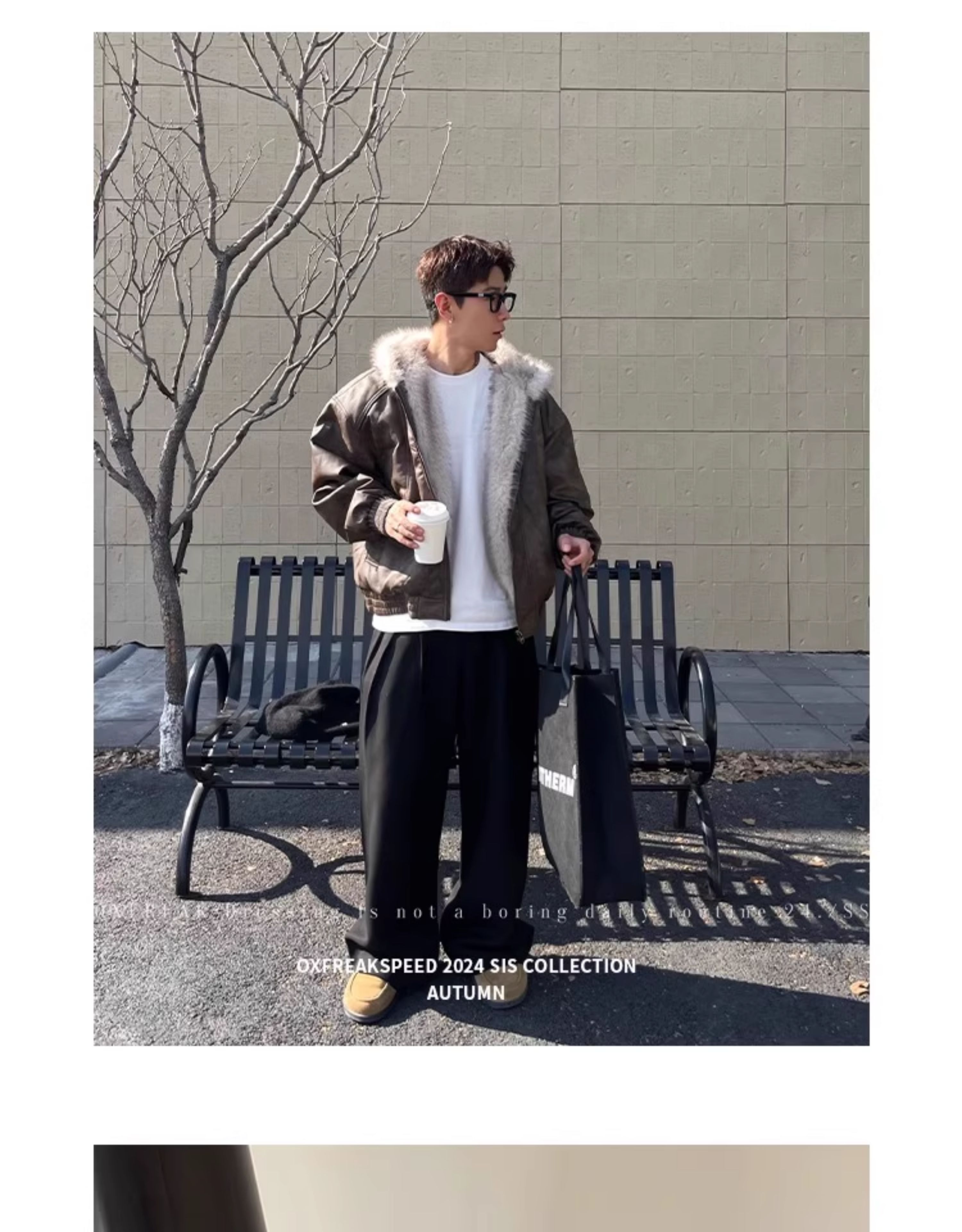 Oxfreak'Distressed Frost Deconstructed Design' Sheepskin Fur Collar Cotton Jacket Men's Winter Fur and Leather Integrated Coat