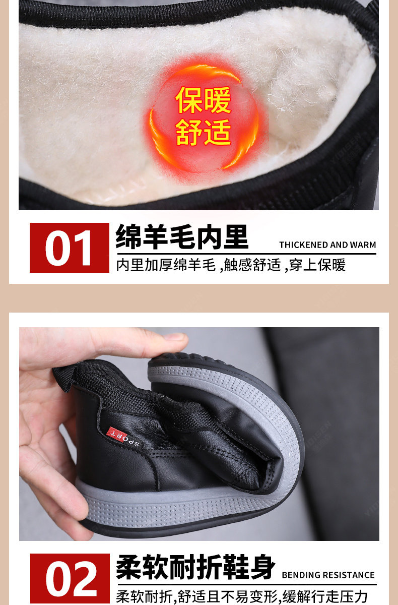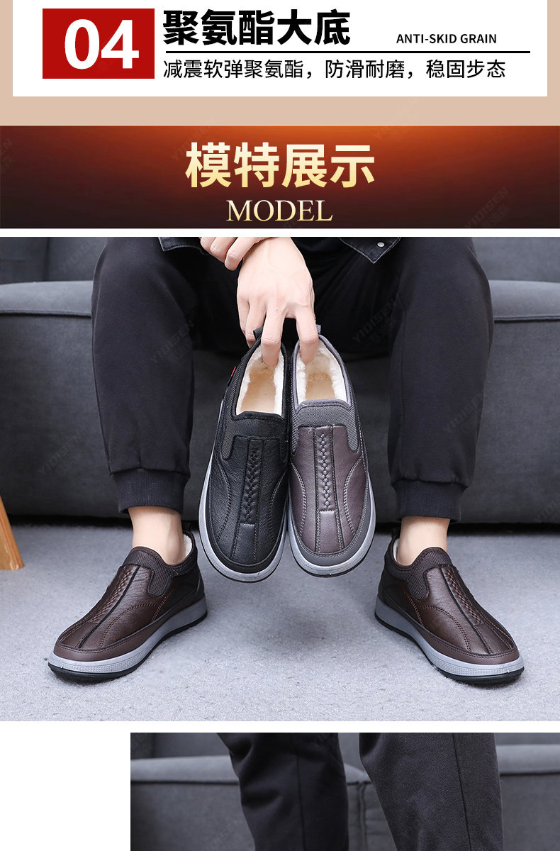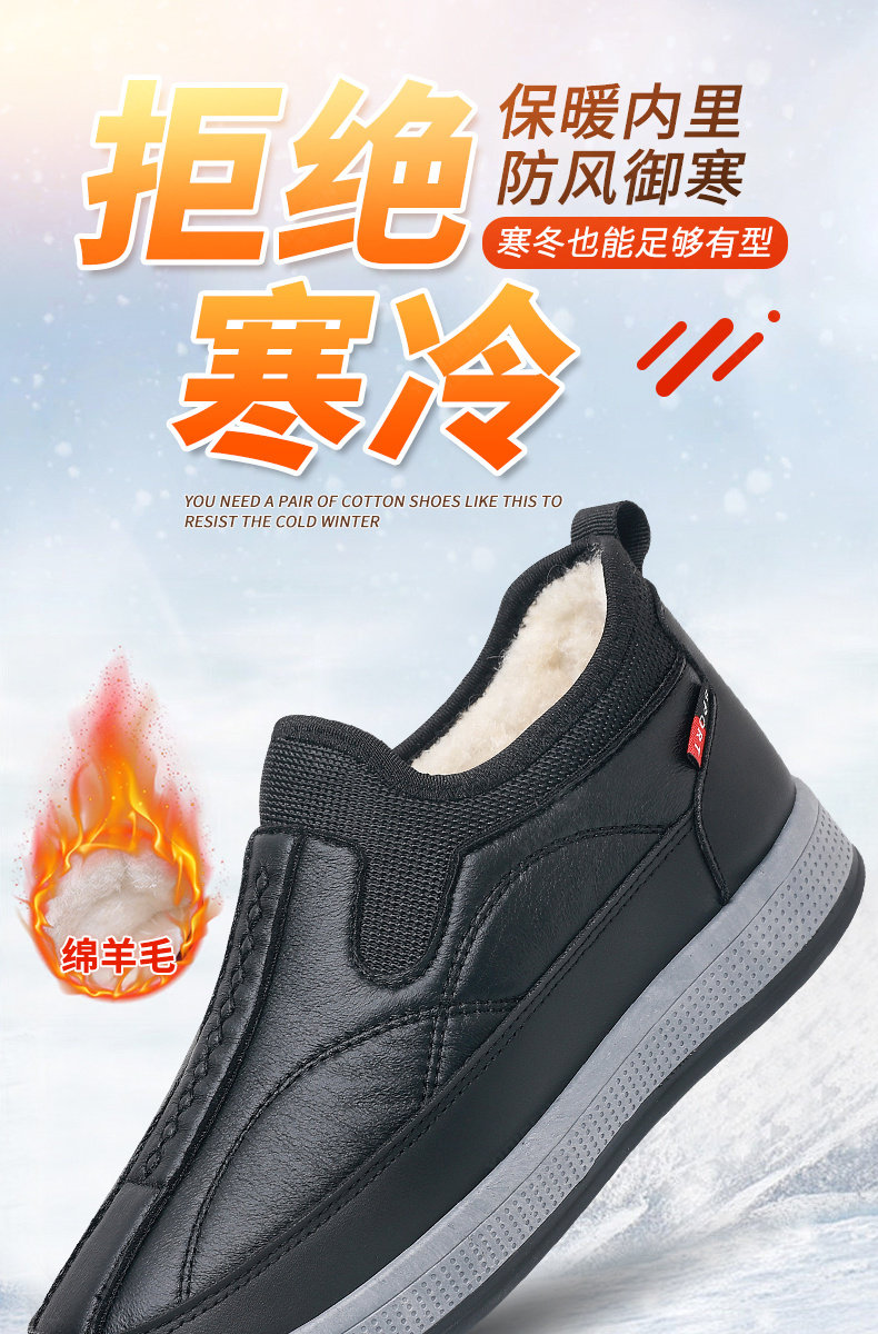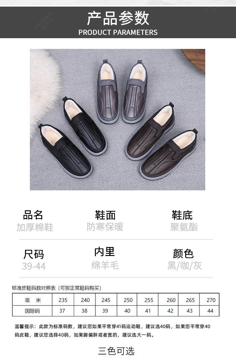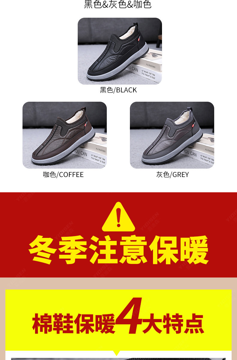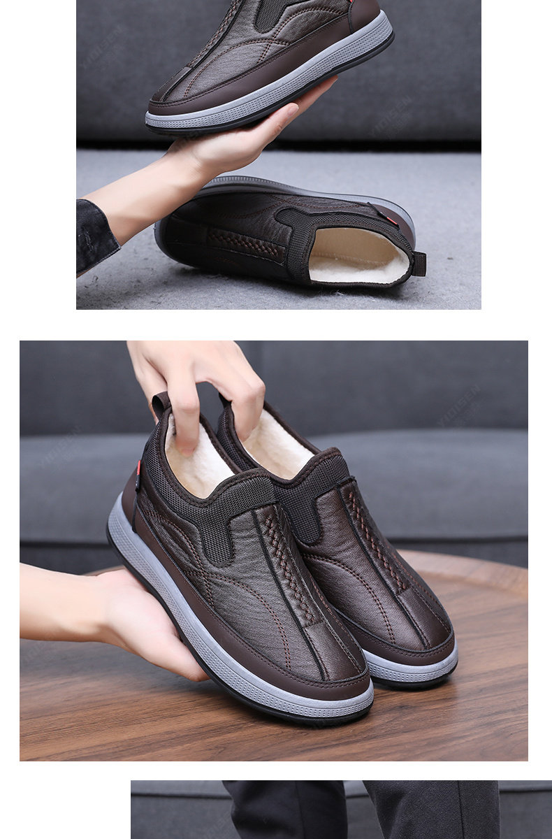 Yidison Old Beijing Cloth Shoes for Men, Cotton Shoes, Waterproof, Non-Slip, Slip-On, Winter Fleece-Lined, Warm, Middle-Aged and Elderly Snow Boots