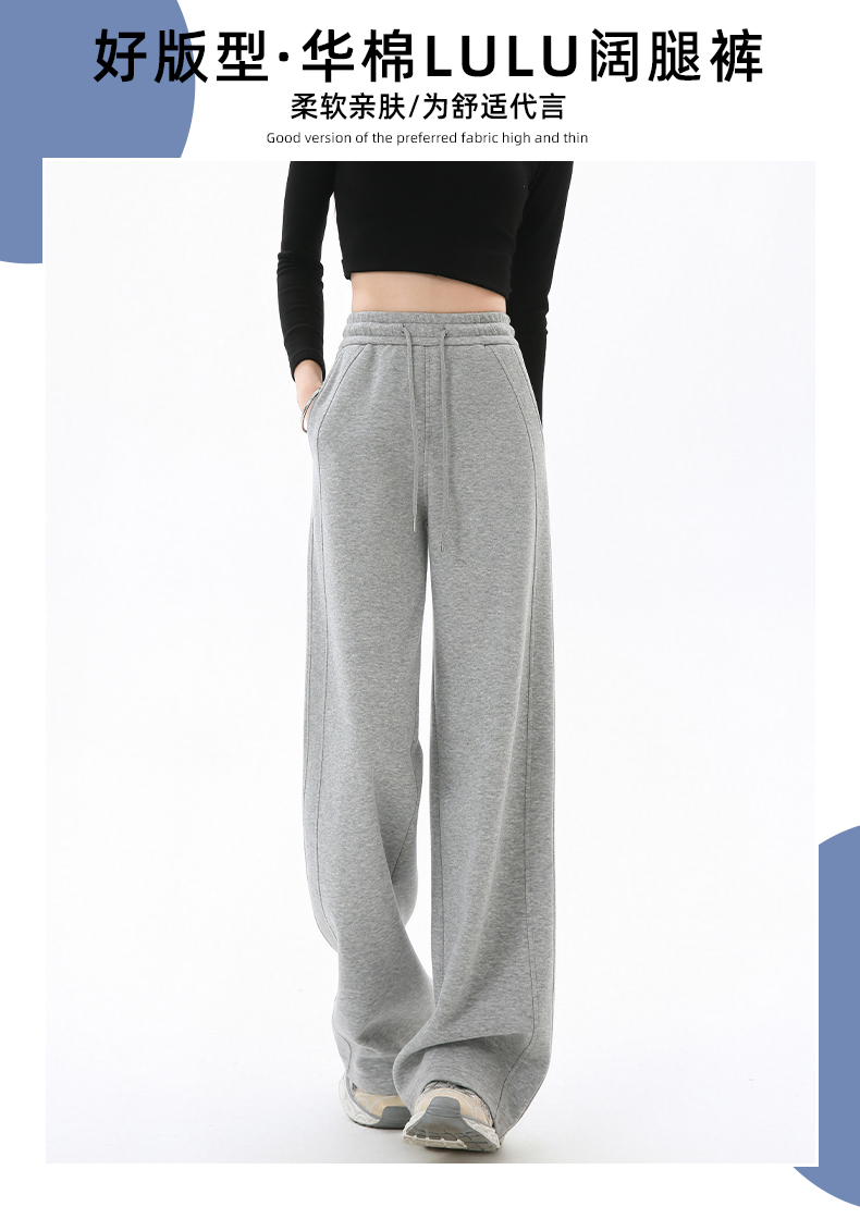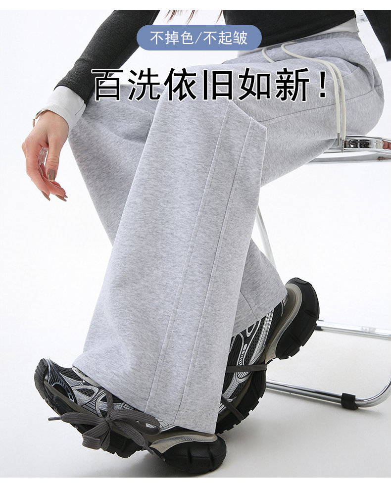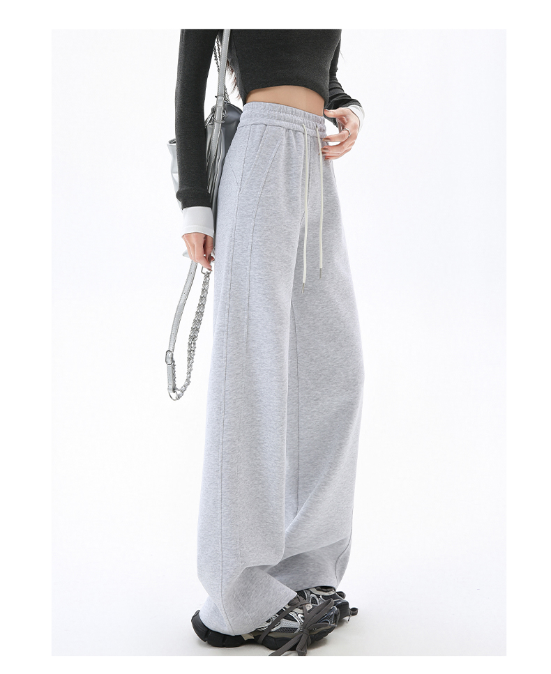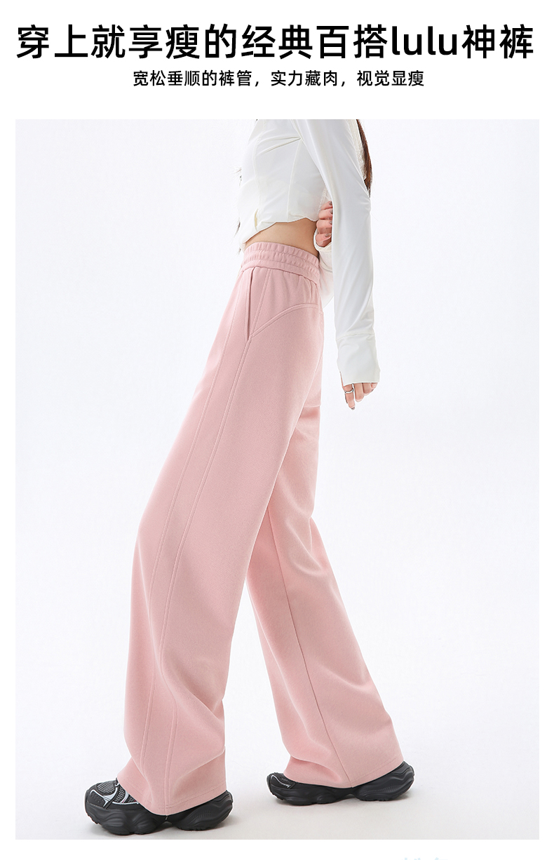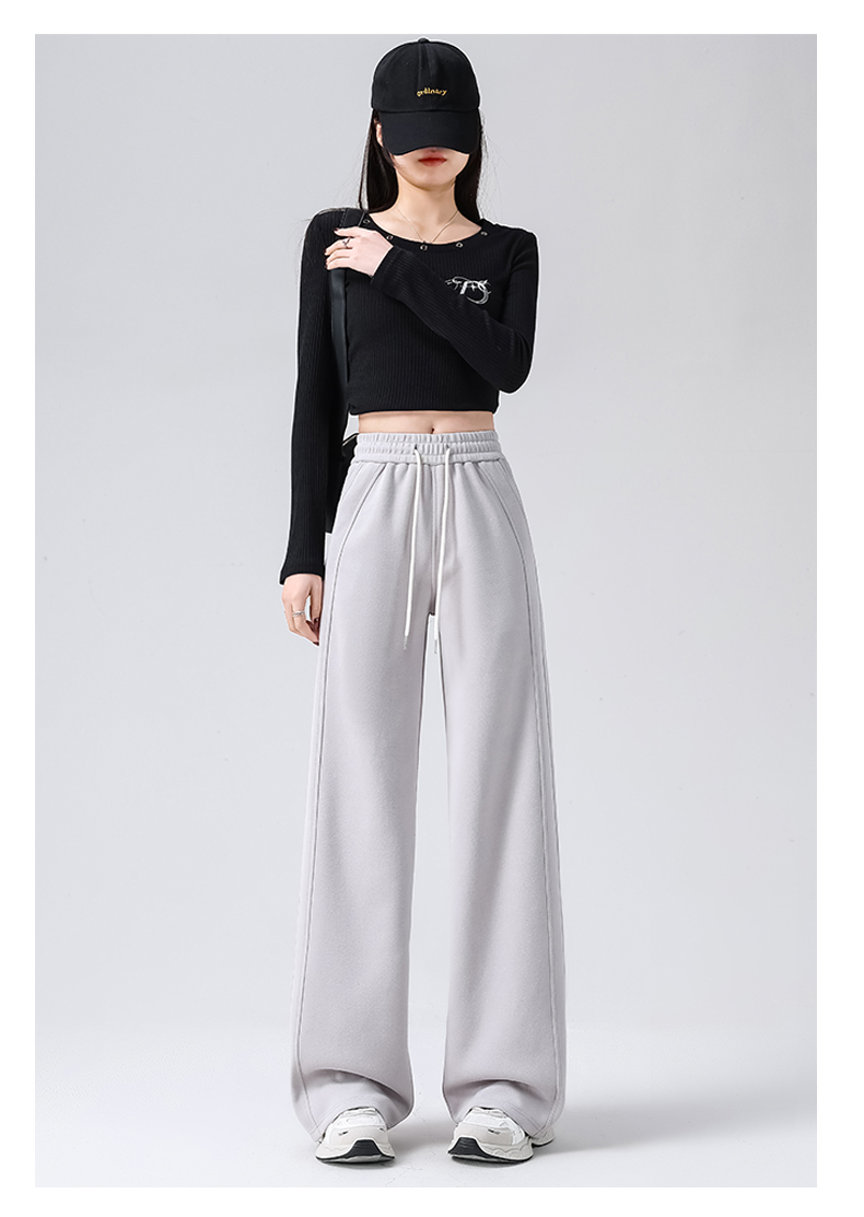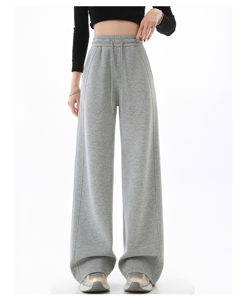Gray Lulu-Style Wide-Leg Pants for Women, 2025 New Spring, Autumn, and Winter Fleece-Lined Casual Sports Sweatpants, Loose and Relaxed