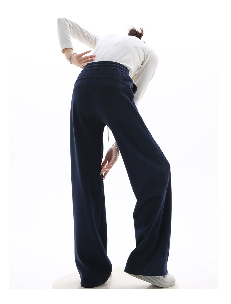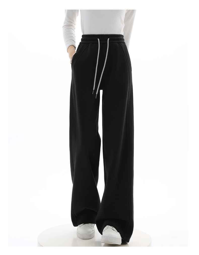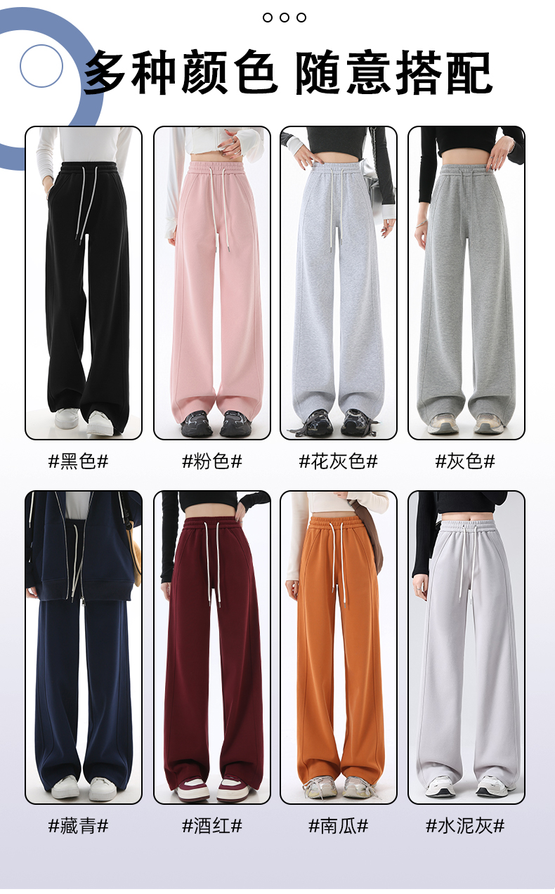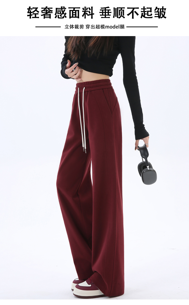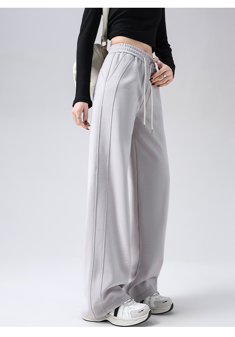 Gray Lulu-Style Wide-Leg Pants for Women, 2025 New Spring, Autumn, and Winter Fleece-Lined Casual Sports Sweatpants, Loose and Relaxed