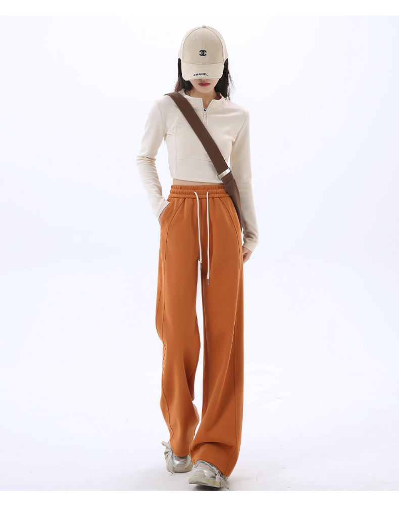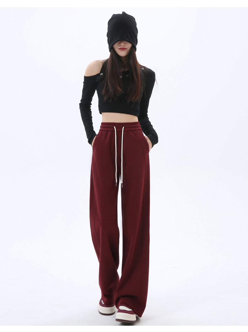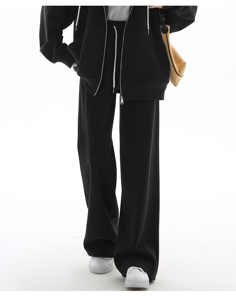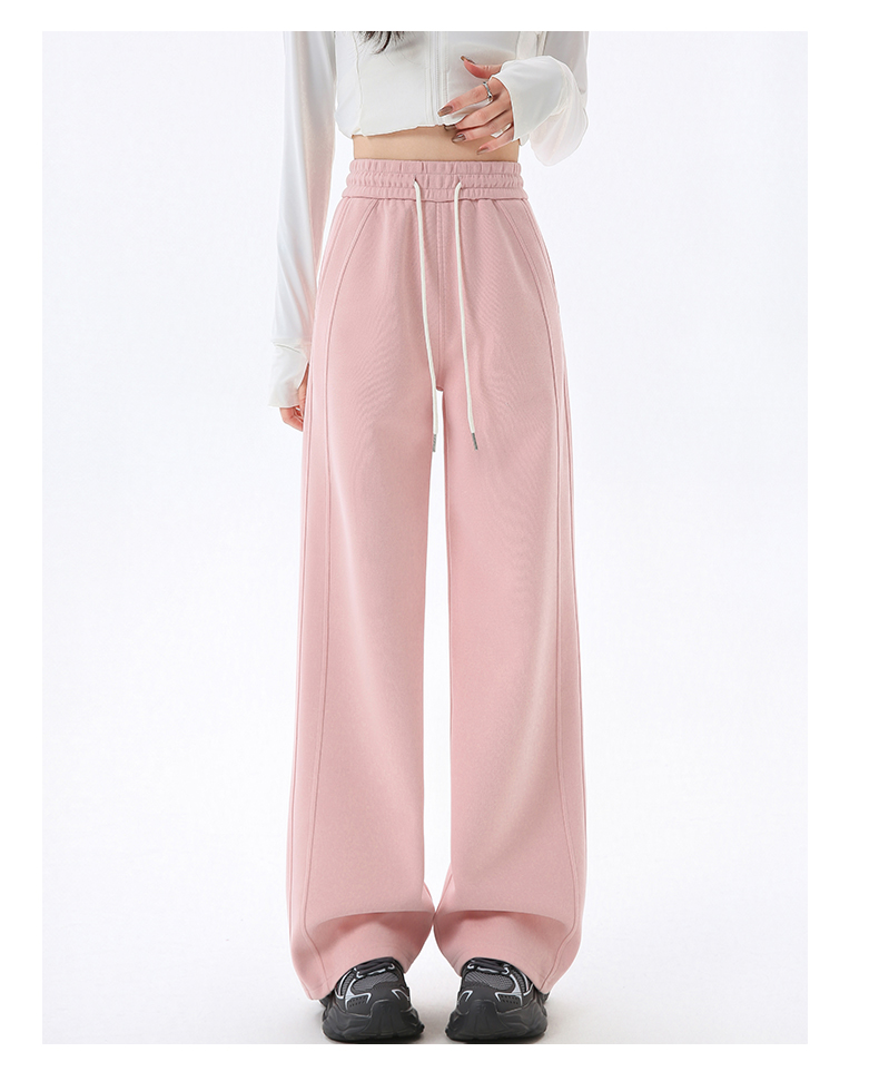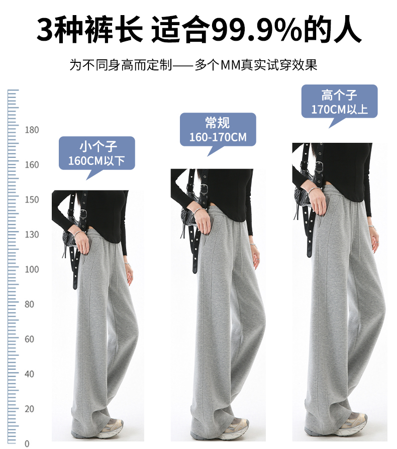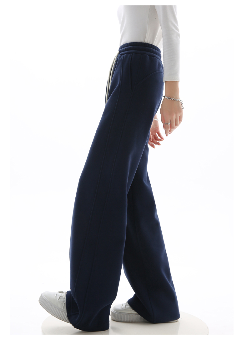 Gray Lulu-Style Wide-Leg Pants for Women, 2025 New Spring, Autumn, and Winter Fleece-Lined Casual Sports Sweatpants, Loose and Relaxed