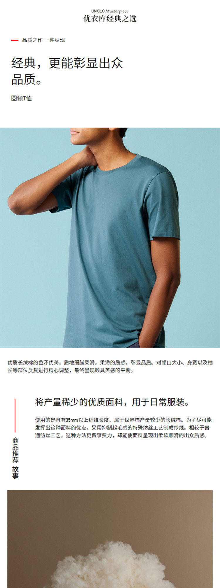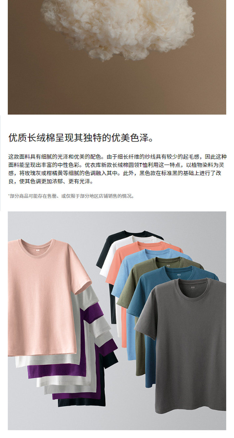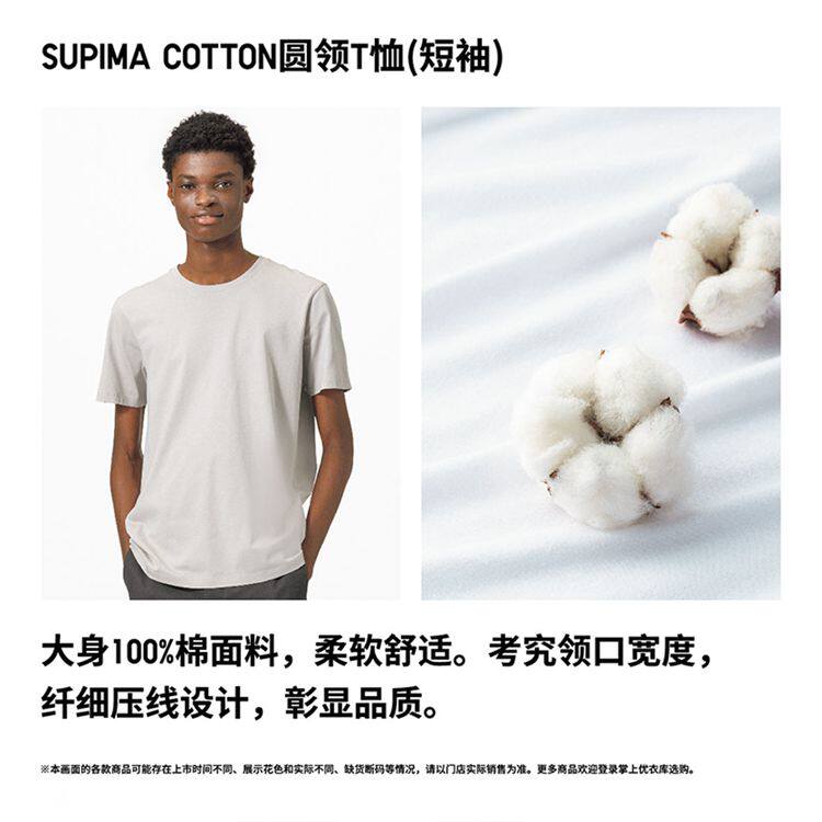 Uniqlo Men's and Women's Round-Neck T-Shirts Supima Cotton Short-Sleeved Pure Cotton Texture 475357 465494