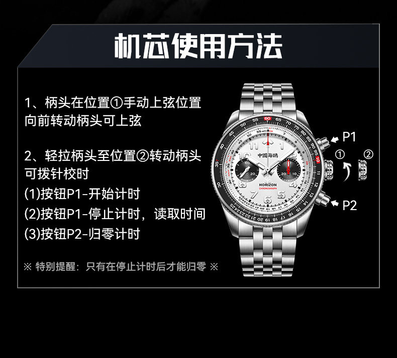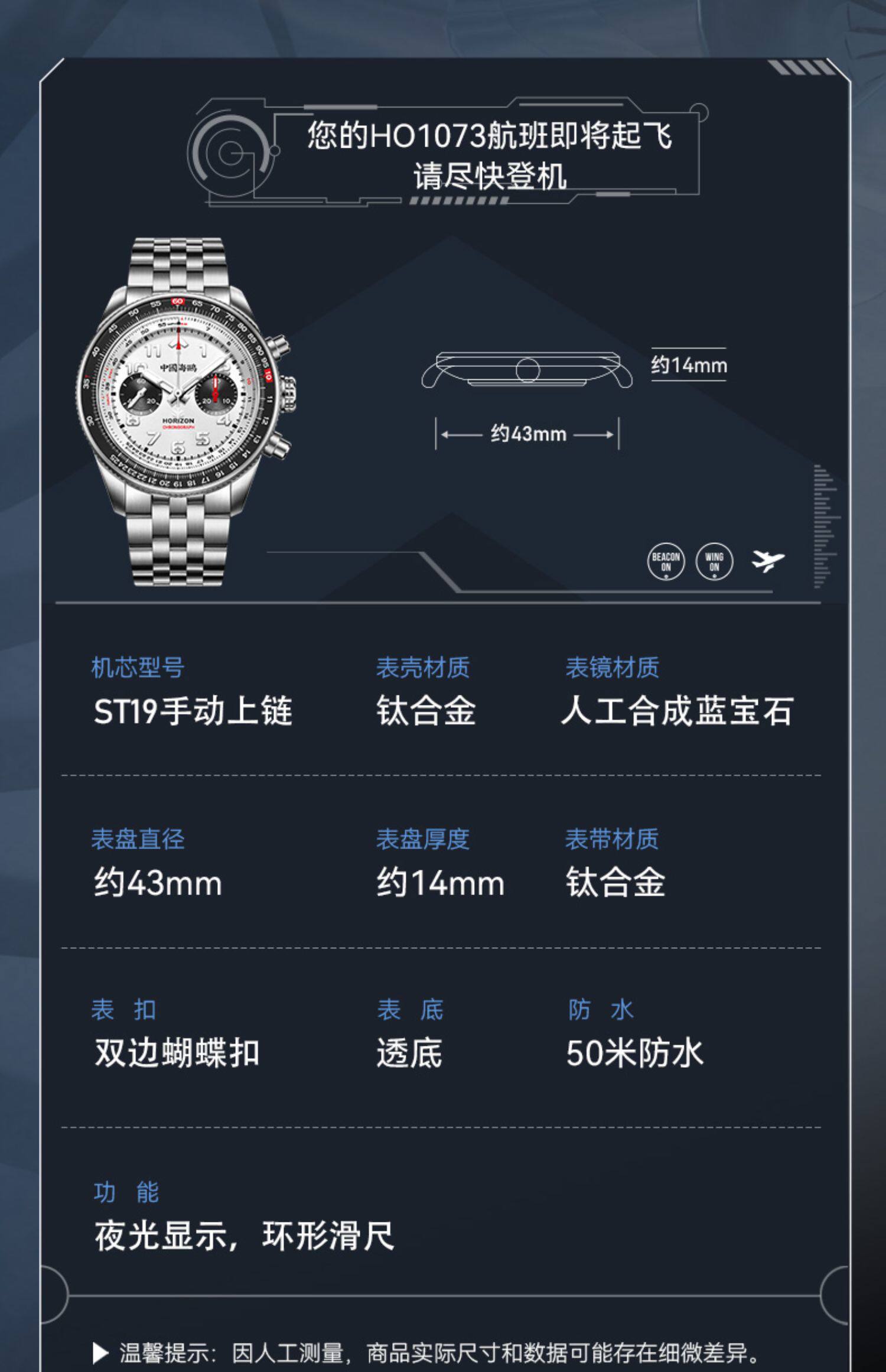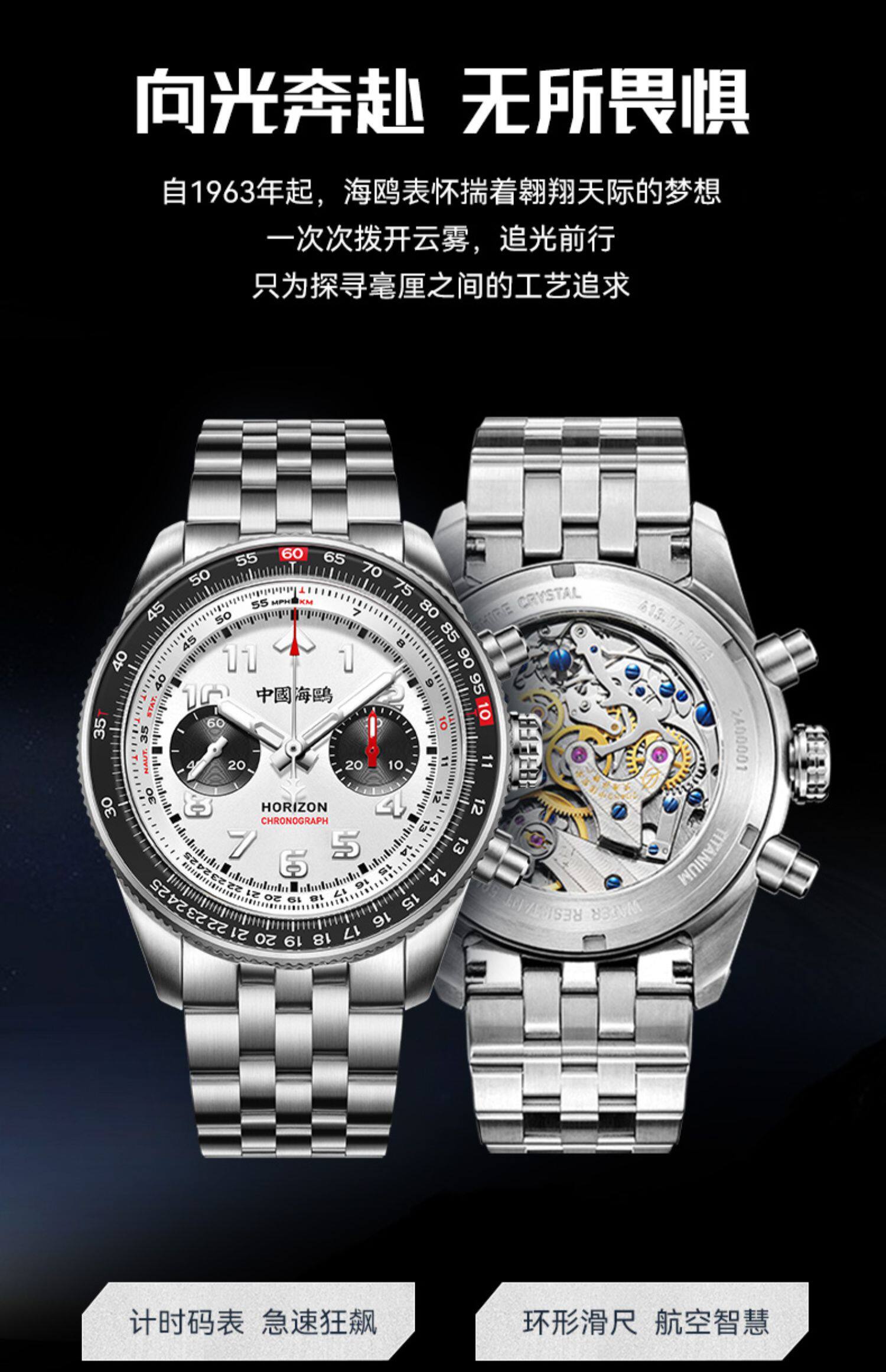 Seagull Watch Men's Titanium Alloy Watch Luminous Sky Scale Pilot Manual Mechanical Watch Chronograph 1073