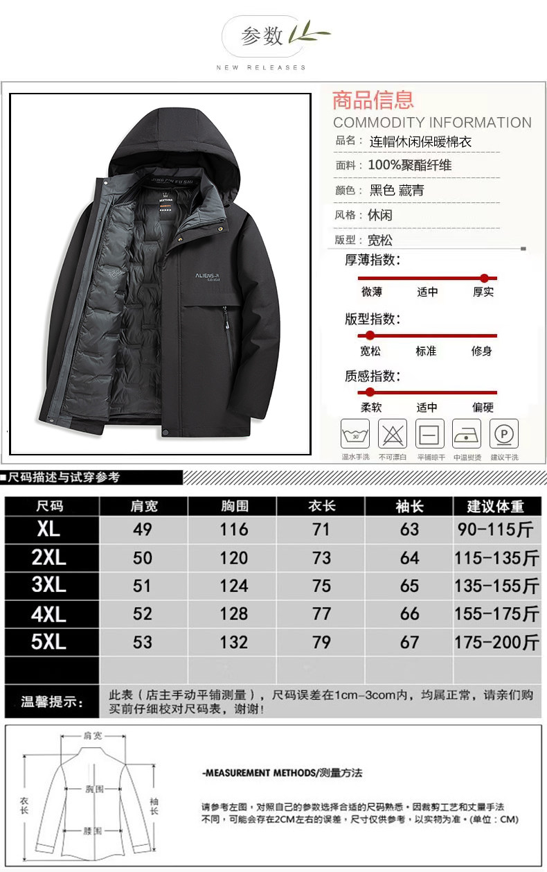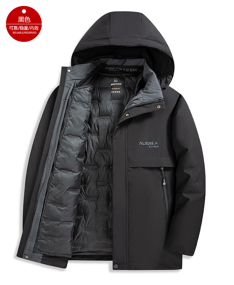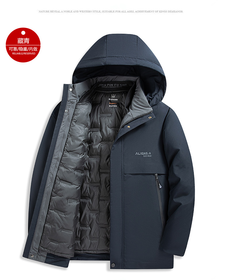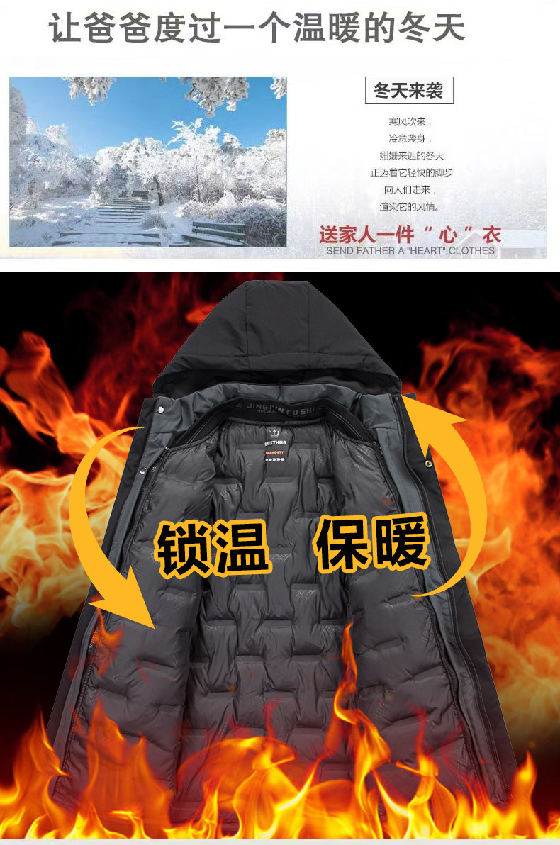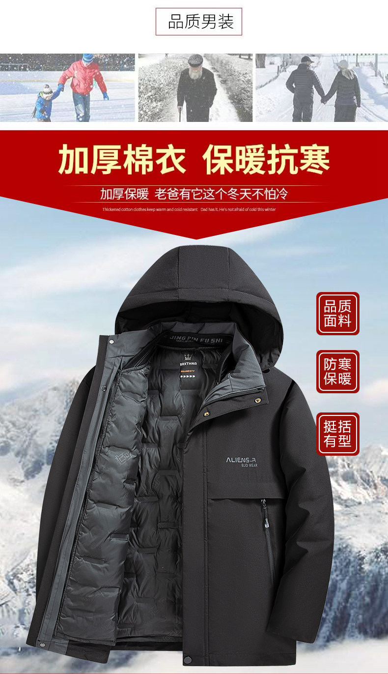 Romon Dad's Winter Cotton Coat for Middle-Aged Men, Thickened and Warm, with Detachable Hat Lining, Suitable for Middle-Aged and Elderly