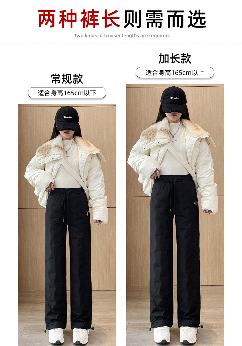 Extra-Long Straight down Pants for Women, Suitable for Outdoor Wear in Winter 2025, New Style, Loose-Fitting, Thickened, Cold-Proof and Warm Cotton Pants for Northeastern Regions