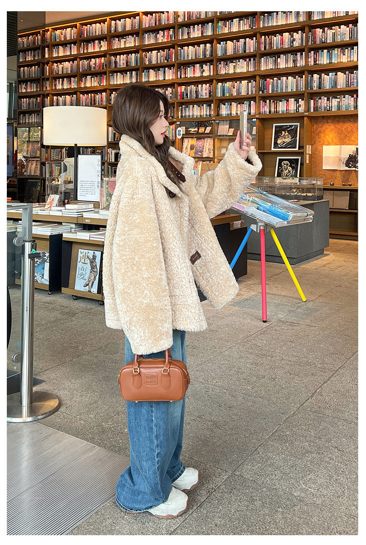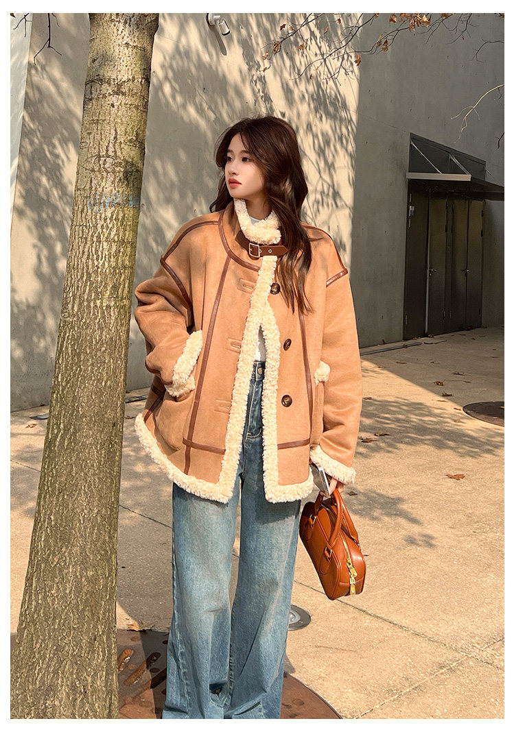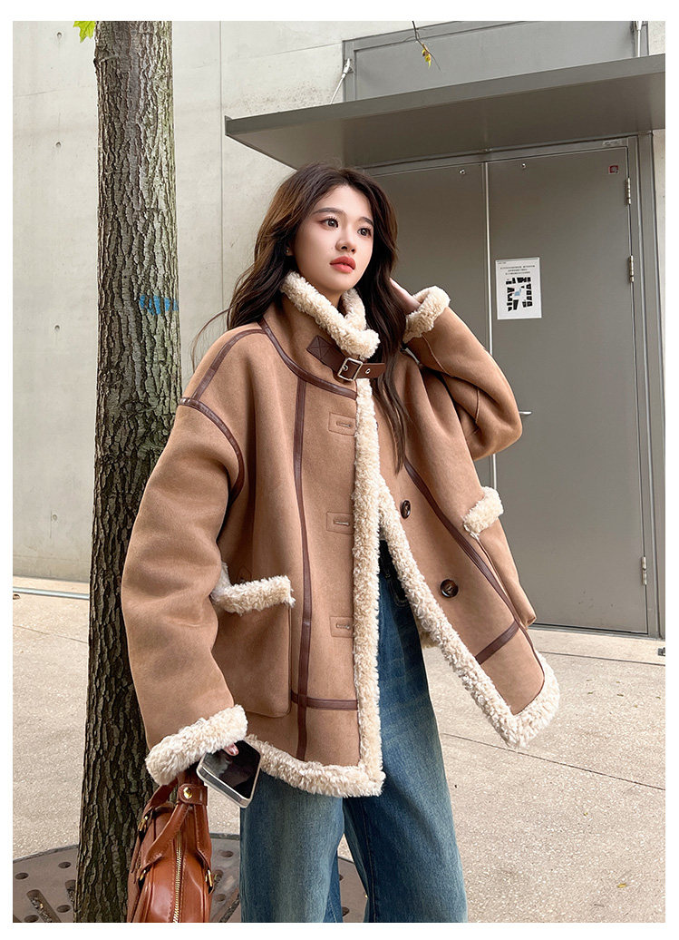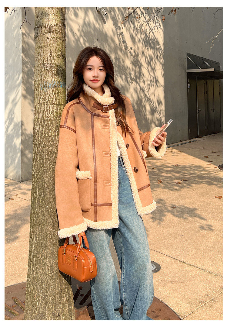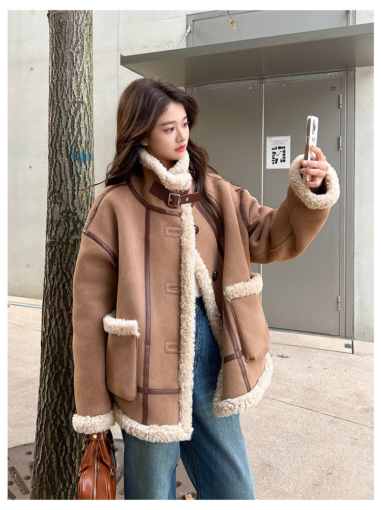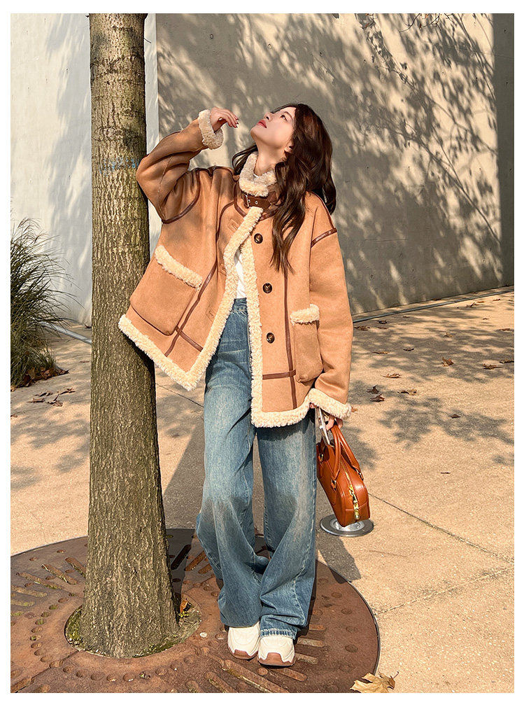 Reversible Shearling Coat for Women, Winter 2025 New Style, Thickened and Warm, Suede Plush Cotton Jacket