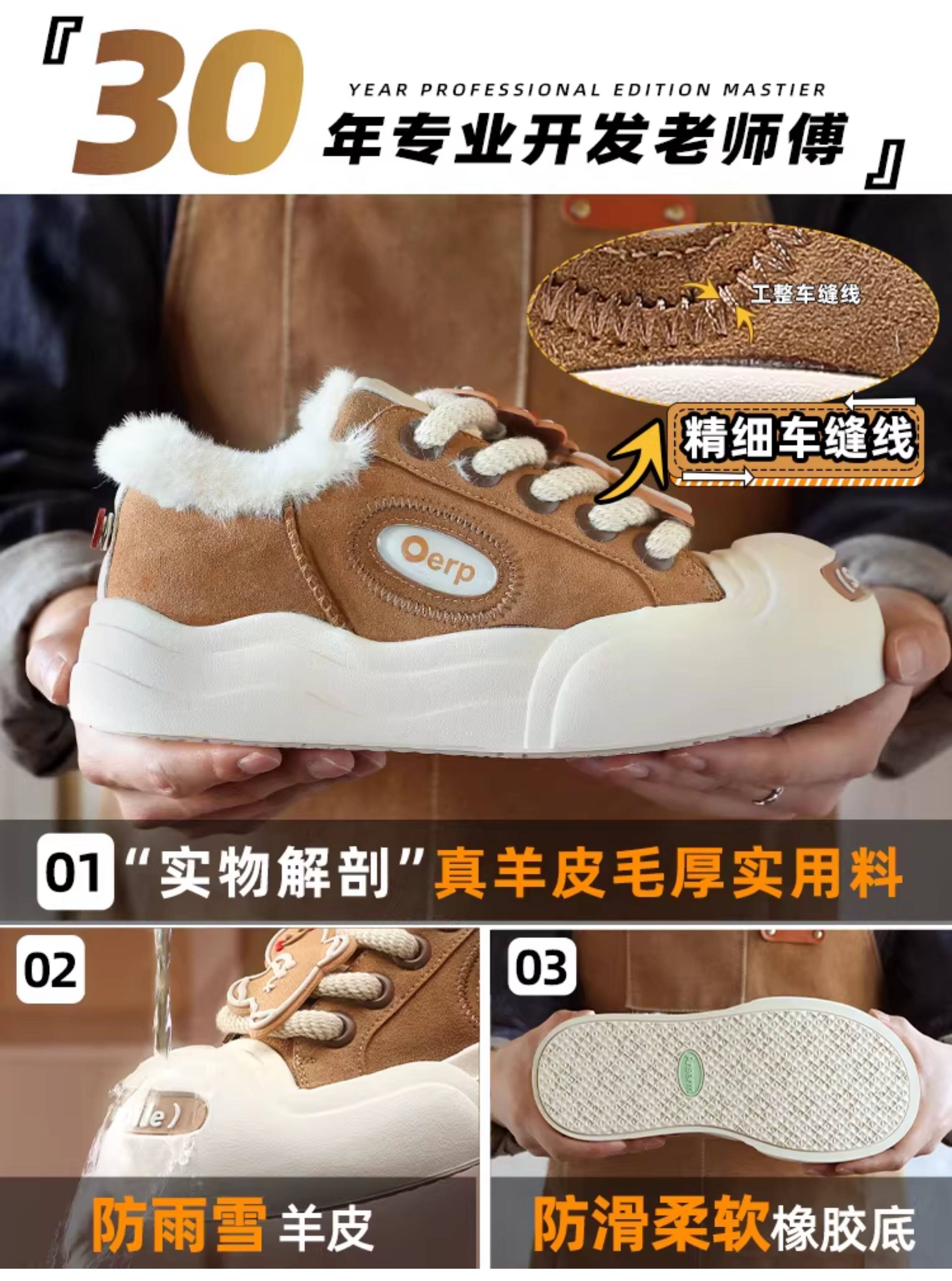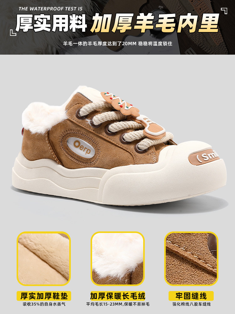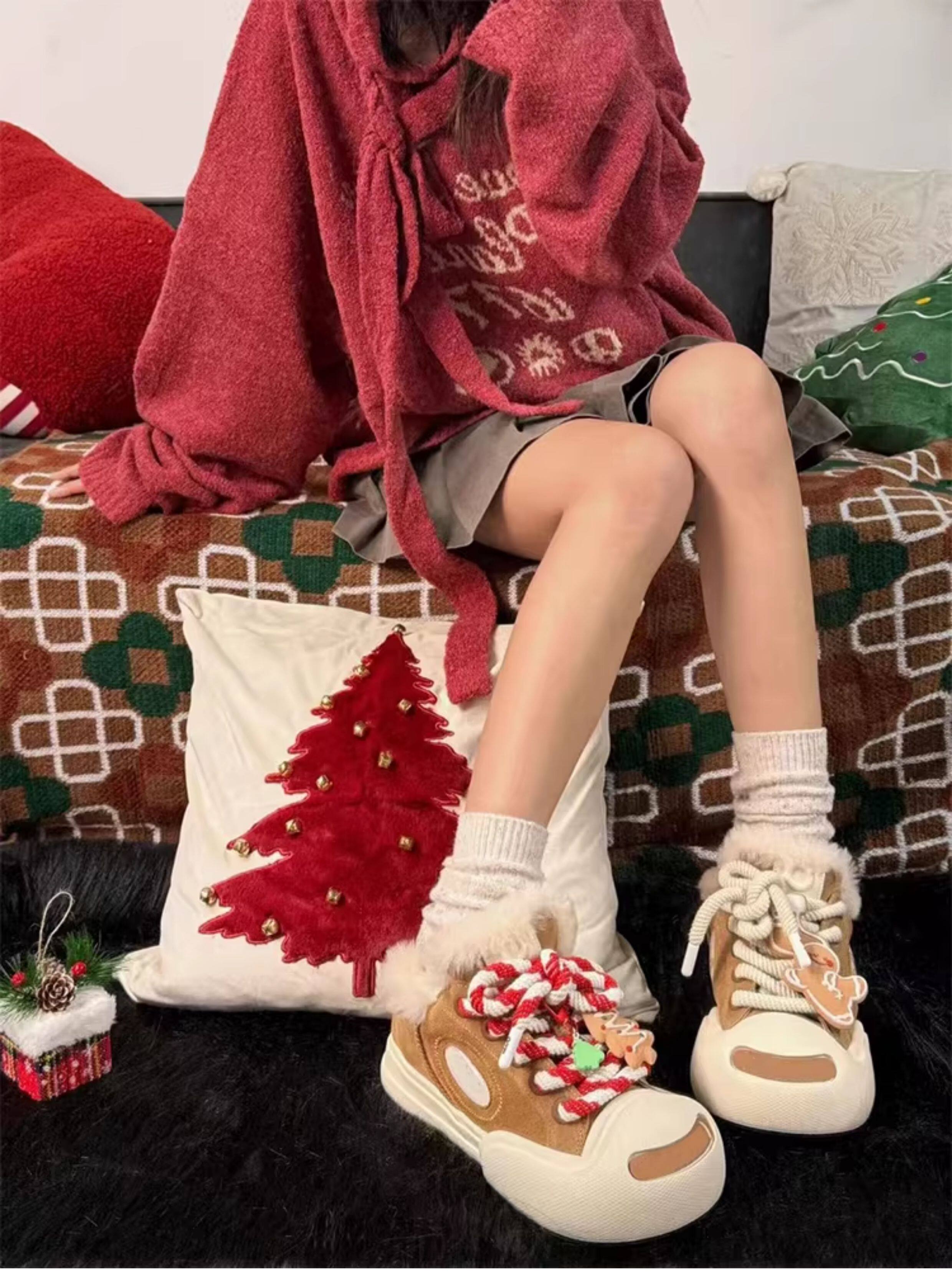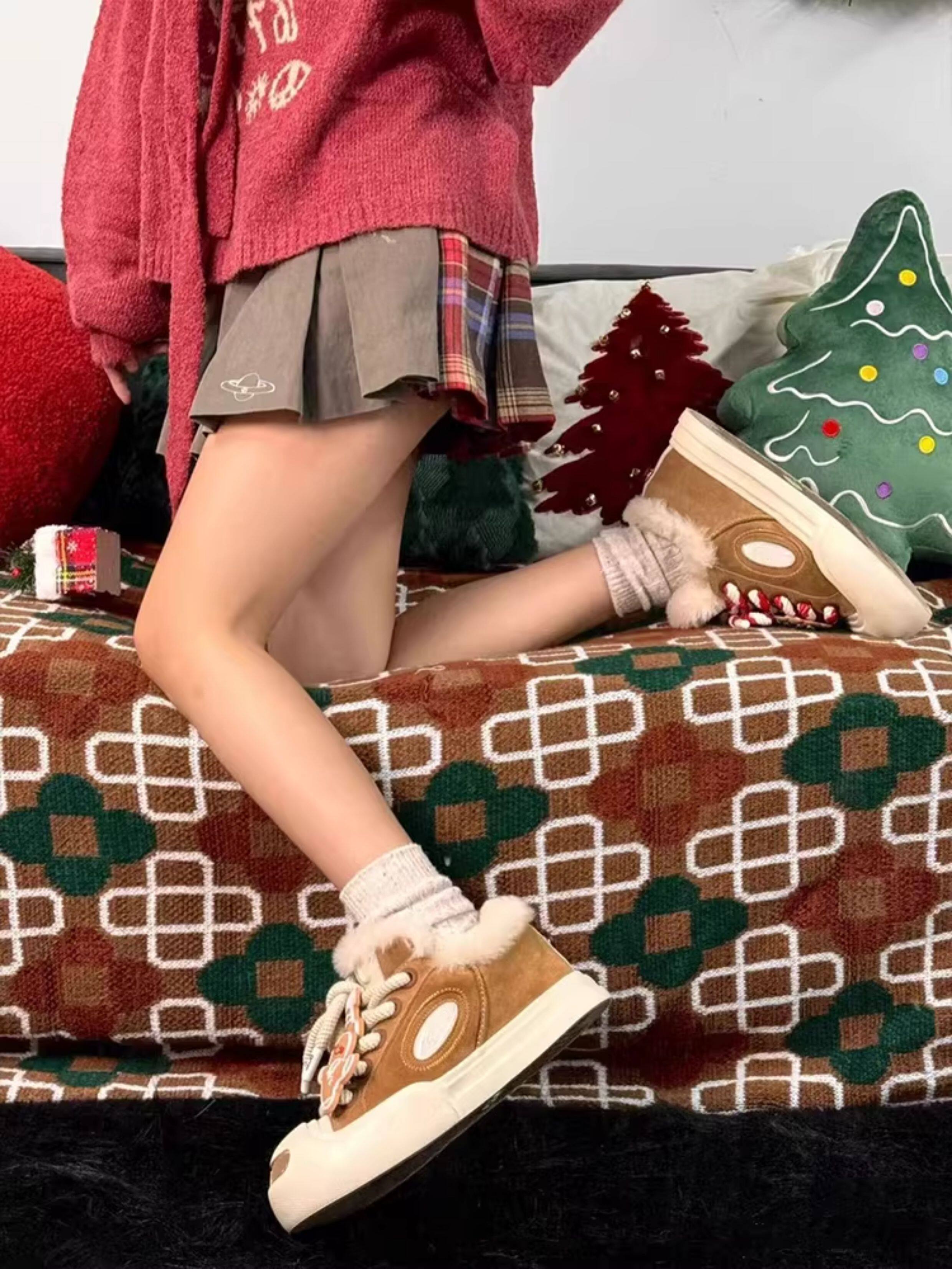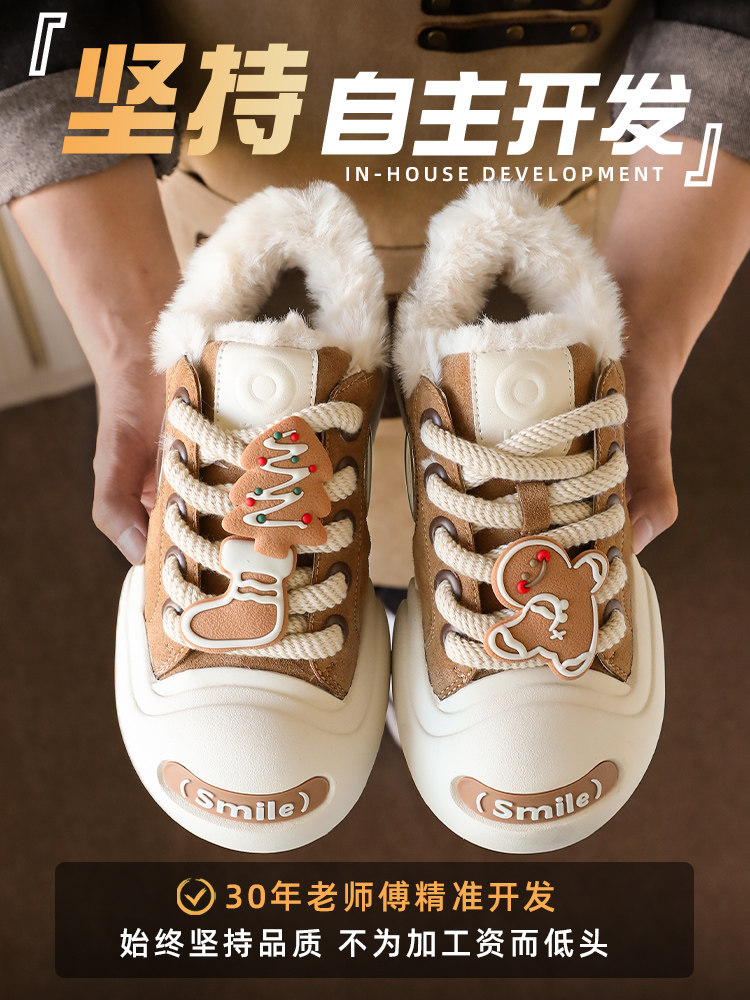White Deer Style Ugly-Cute Big-Toe Shoes with Open Smile Canvas Shoes for Men and Women, Gingerbread Man Winter Fleece-Lined Thick-Soled Shoes