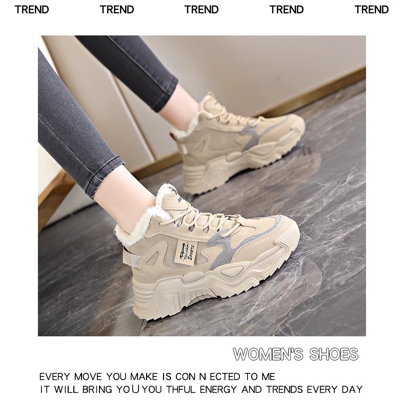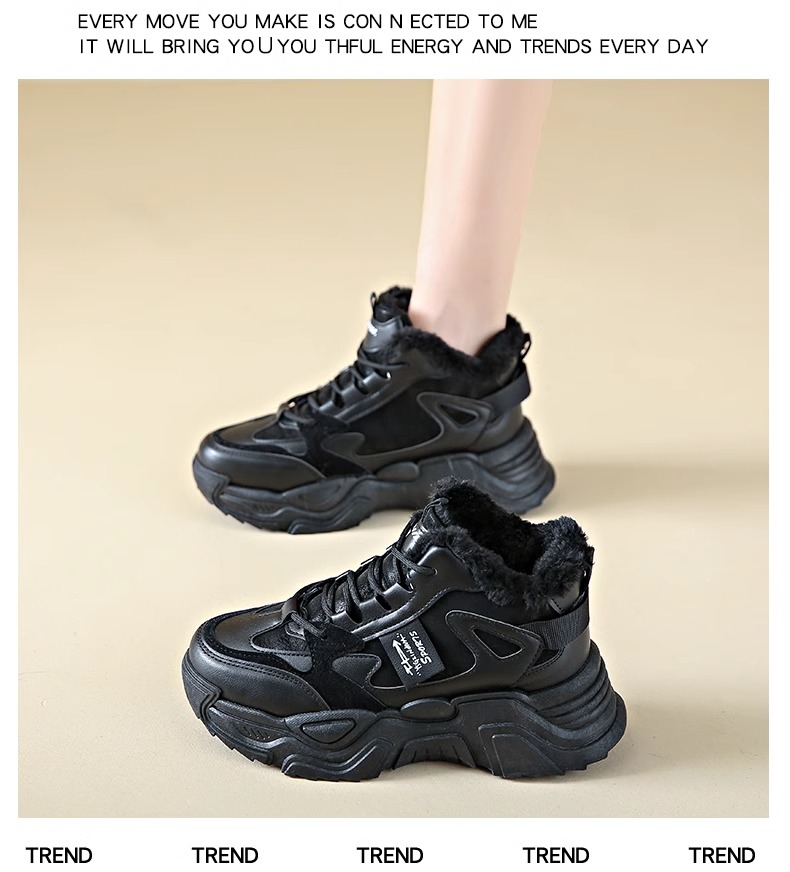 Brand soft sole Fleece-Lined High-Top Dad Shoes for Women, 2025 Hot-Selling Winter Fashion Sneakers, Thickened Cotton Shoes
