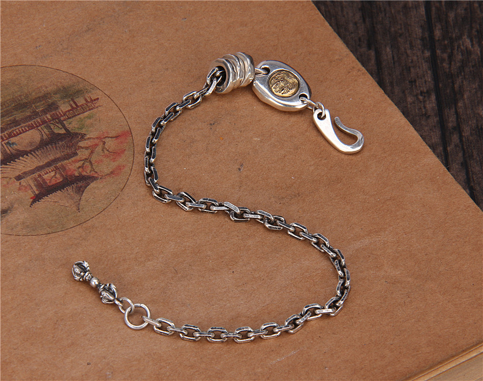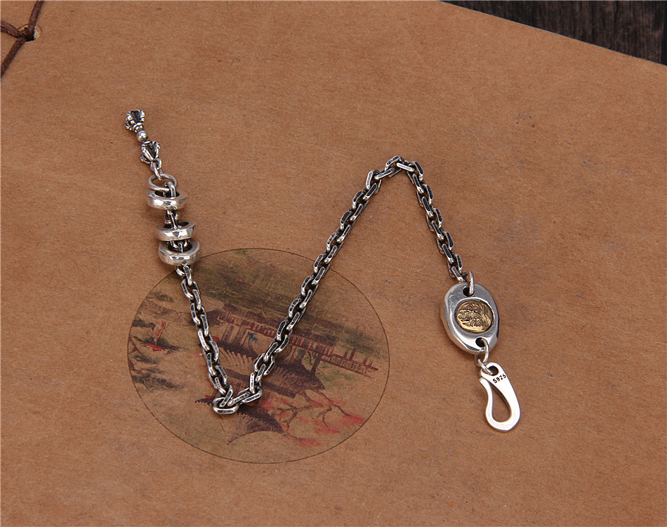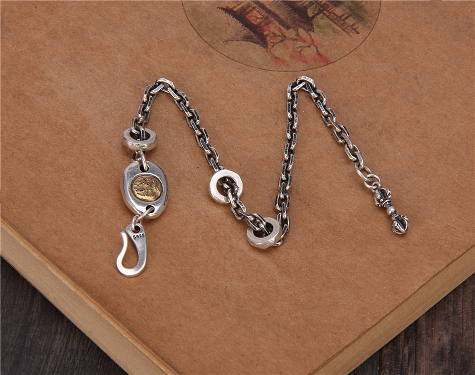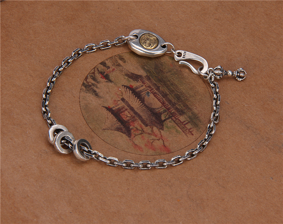 S925 Sterling Silver Tibetan Female God of Wealth Zaki Ram Bracelet, Vintage Ethnic Style, Niche Personality Design, Taijiao Chain