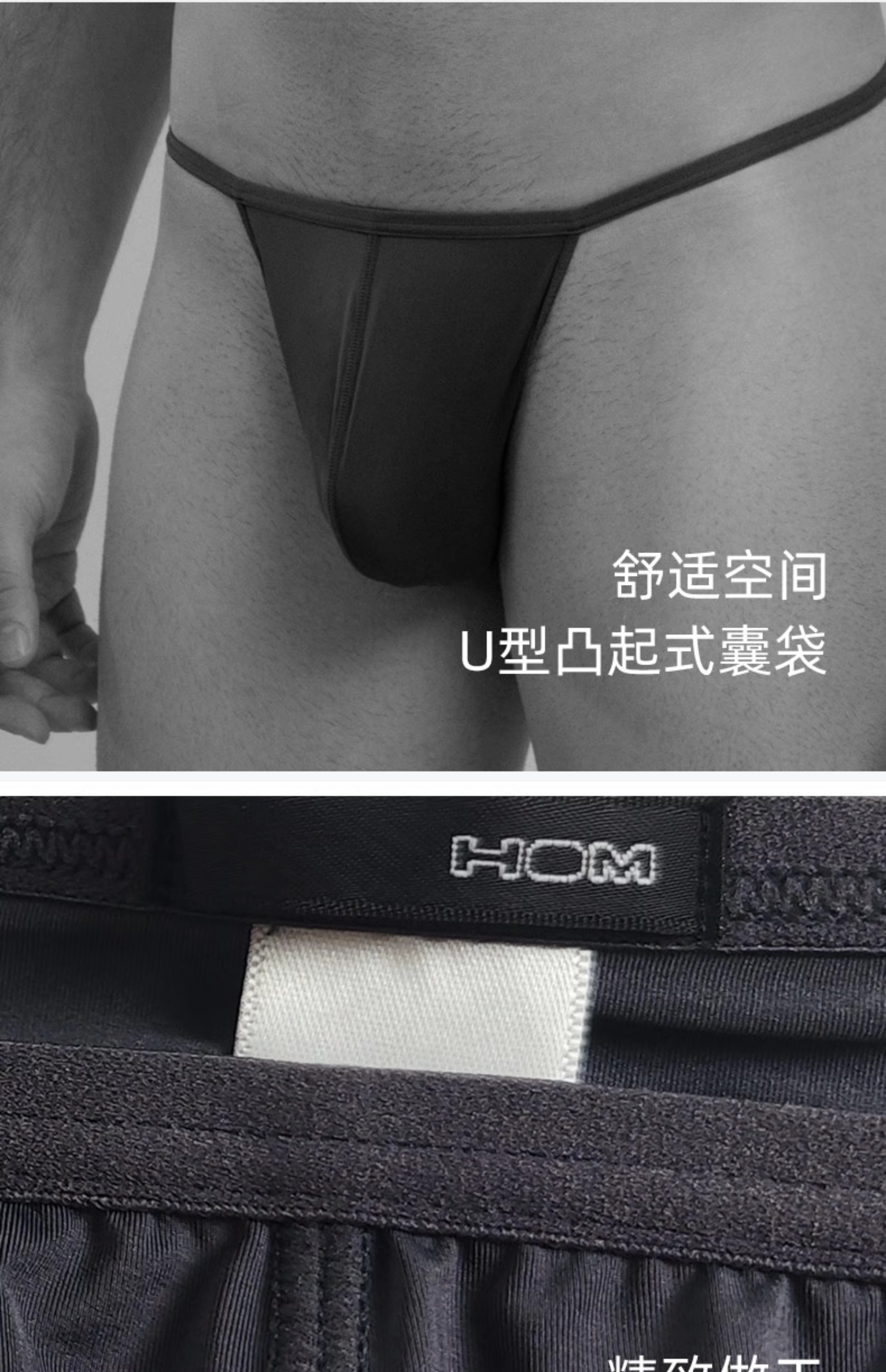 Hom Men's Ice Silk Elastic Sexy Non-Deformable Underwear T-Back Low-Waist Triangle Thong Authentic