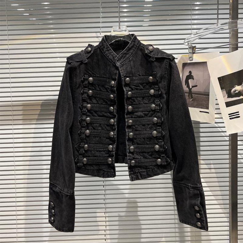 Big Sale Leakage Counter Withdraws Heavy Industry Punk Motorcycle Denim Jacket for Women Slimming Look Stand-Up Collar Long-Sleeved Jacket Top for Women